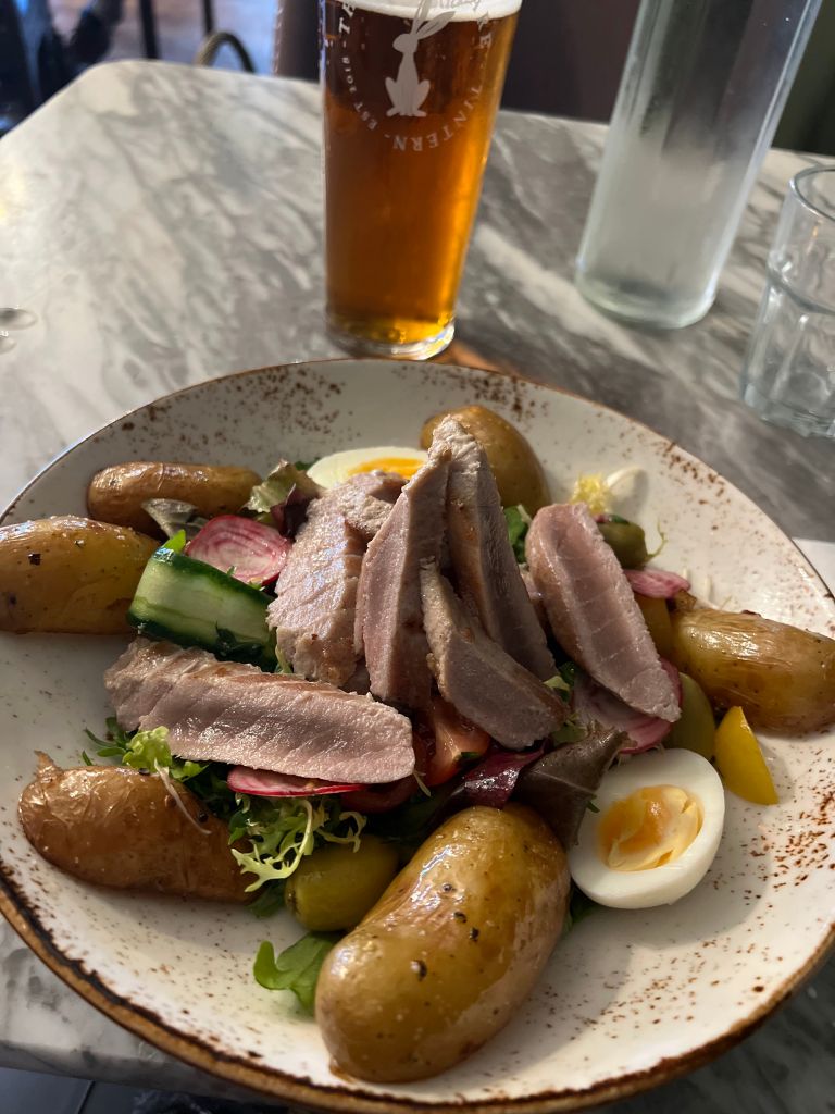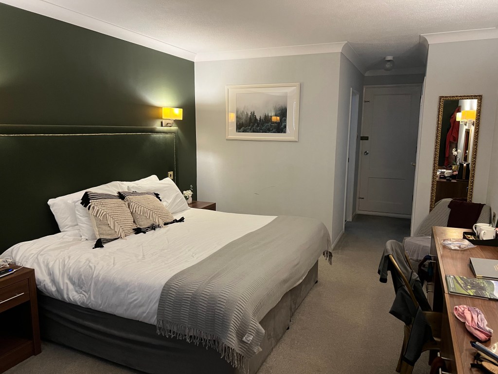 I headed to my bed and breakfast, The Wild Hare, to check in and freshen up a tad before exploring the Abbey ruins and having a relaxing early dinner in the inn’s restaurant. I was thrilled that my large backpack had been successfully delivered by the transfer service, Walk Lite Glochester! And even more thrilled with the poshness of my room for the night. SO welcome after the bit of brutal hiking at the end of Day 1. It was hard to not just collapse on that inviting bed.