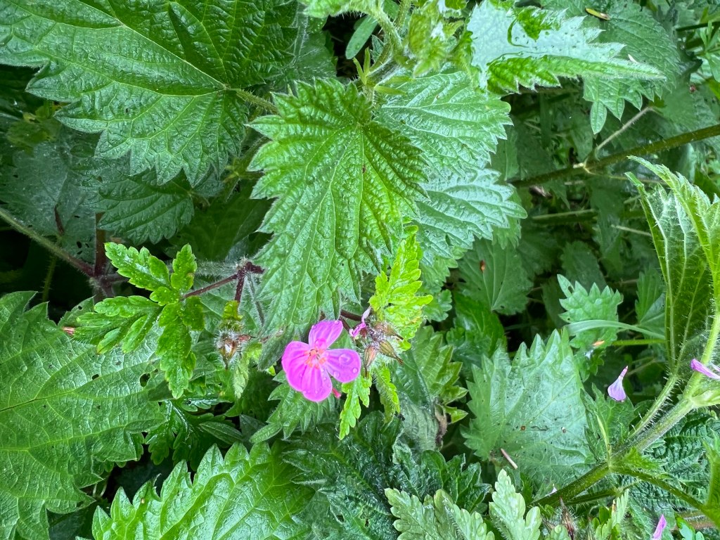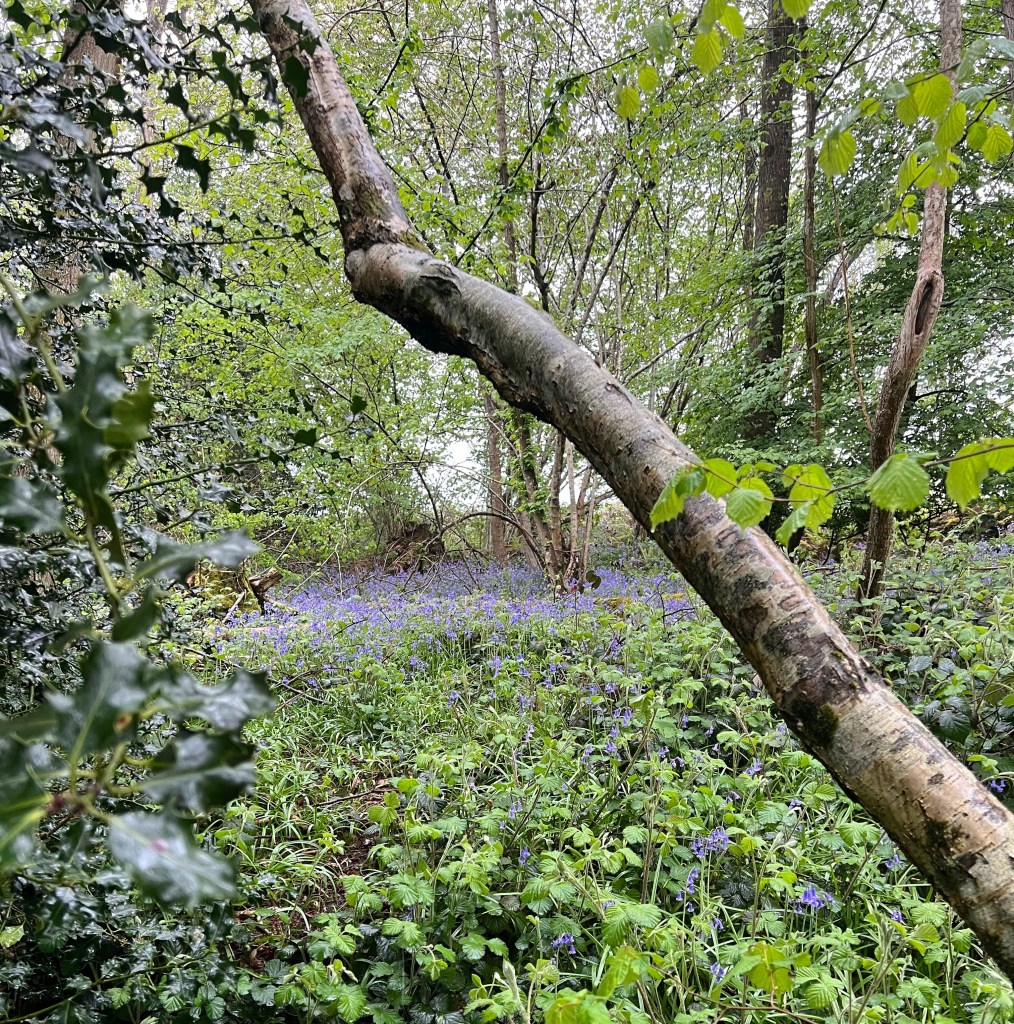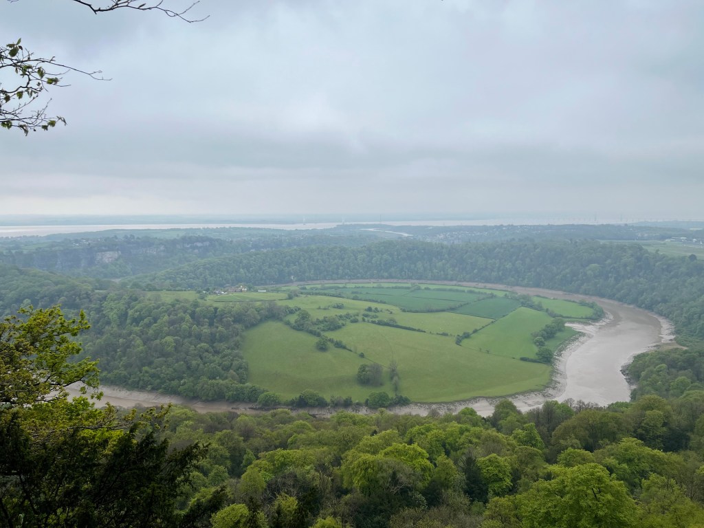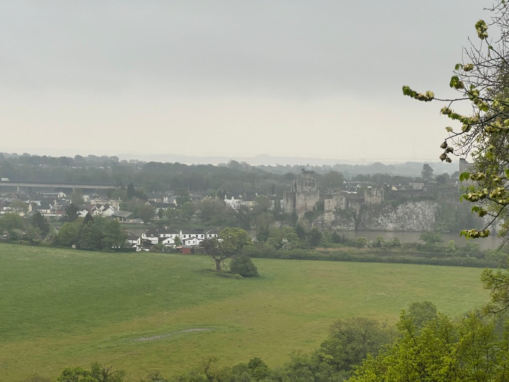 My notes describe the day as “transcendent and brutal.” The path had a huge amount of up, and much harder, down. The walk out of Chepstow was pleasant: it was raining, not hard but persistent. I was very grateful for my waterproof trousers and my Sherpa shell, and also for the waterproof cover for my day pack. The rain stopped after a couple of hours. Maybe the bluebells “popped” a little more for having been rained upon!