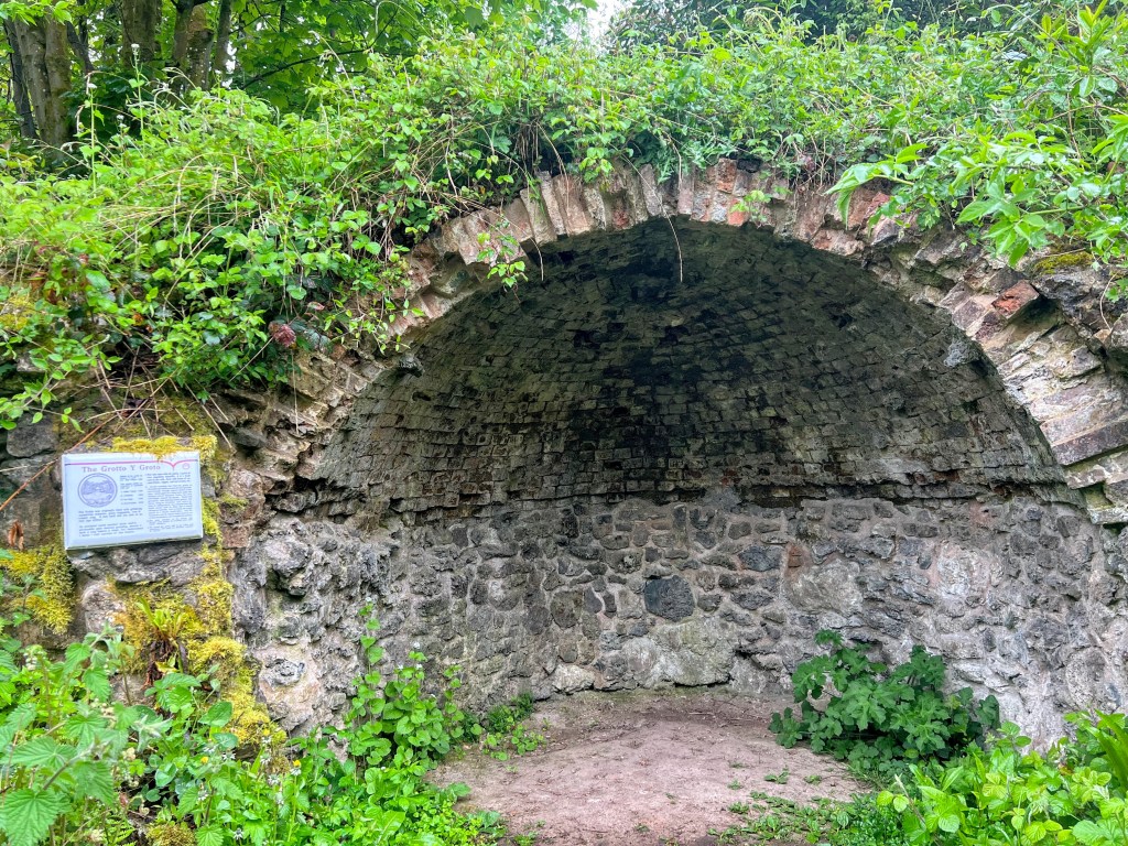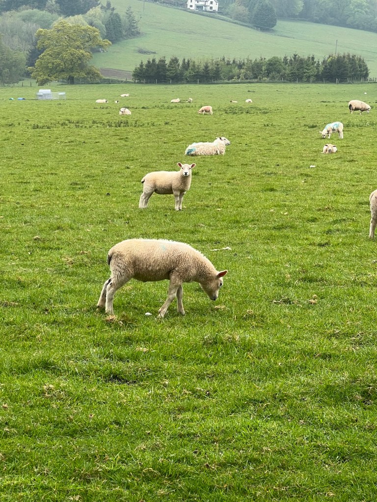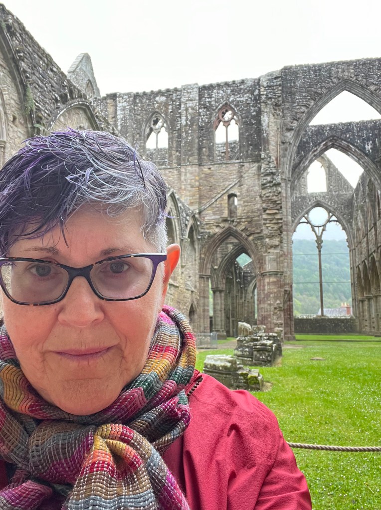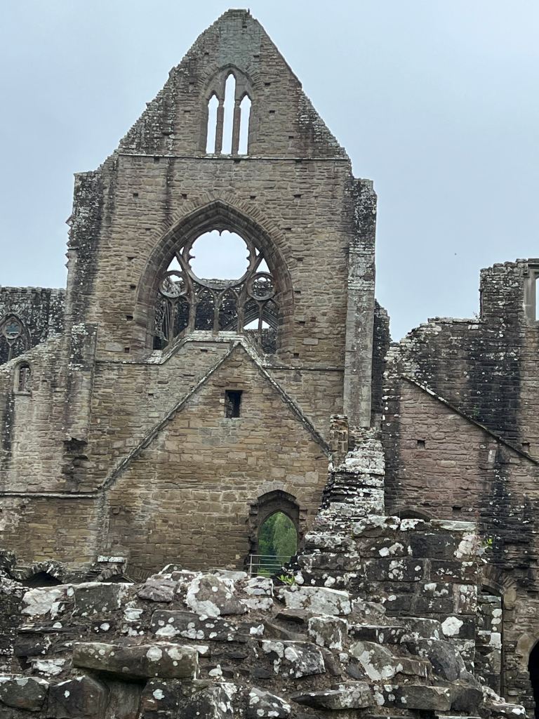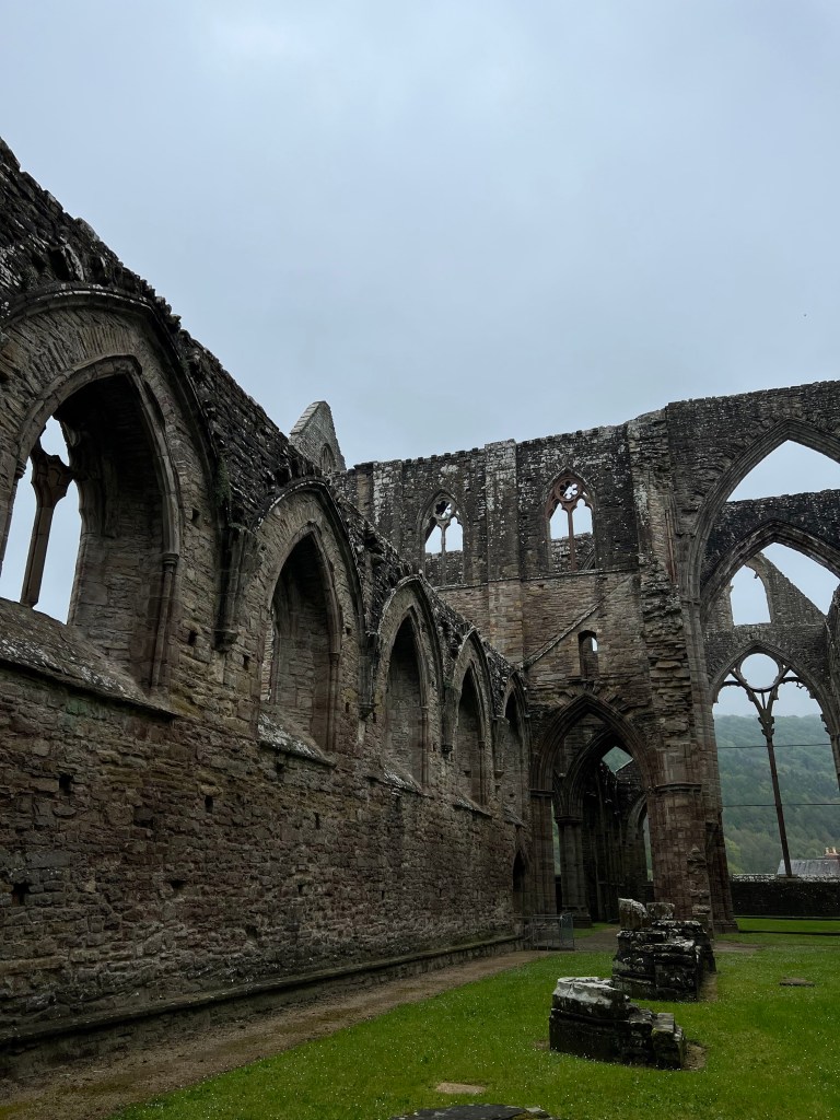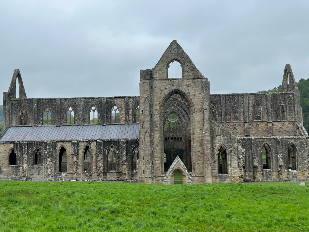 Much of the walk on Day 1 was through wooded hills, with lots of elevation at the front and middle of the day. I ran into the occasional walker, all local folks, many with their doggos, but no one on a long-distance journey. I had read in my guidebook that the path down into Tintern was steep and rocky, but I wasn’t quite prepared for how very true that was. The path narrowed considerably, and was rocks and scree for some ways; the rain had made those rocks unstable as well. Thankful for my Hiker Hunger hiking poles, I literally inched my way down to the wide fields that brought me into the village of Tintern. The Abbey loomed before me, and I gave thanks to the Powers That Be!