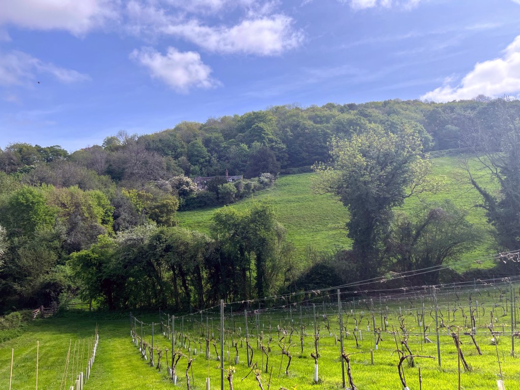 A vineyard, rather unusual in this area. Pretty sure it’s Wythall Estate Vineyards.