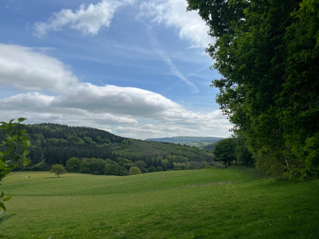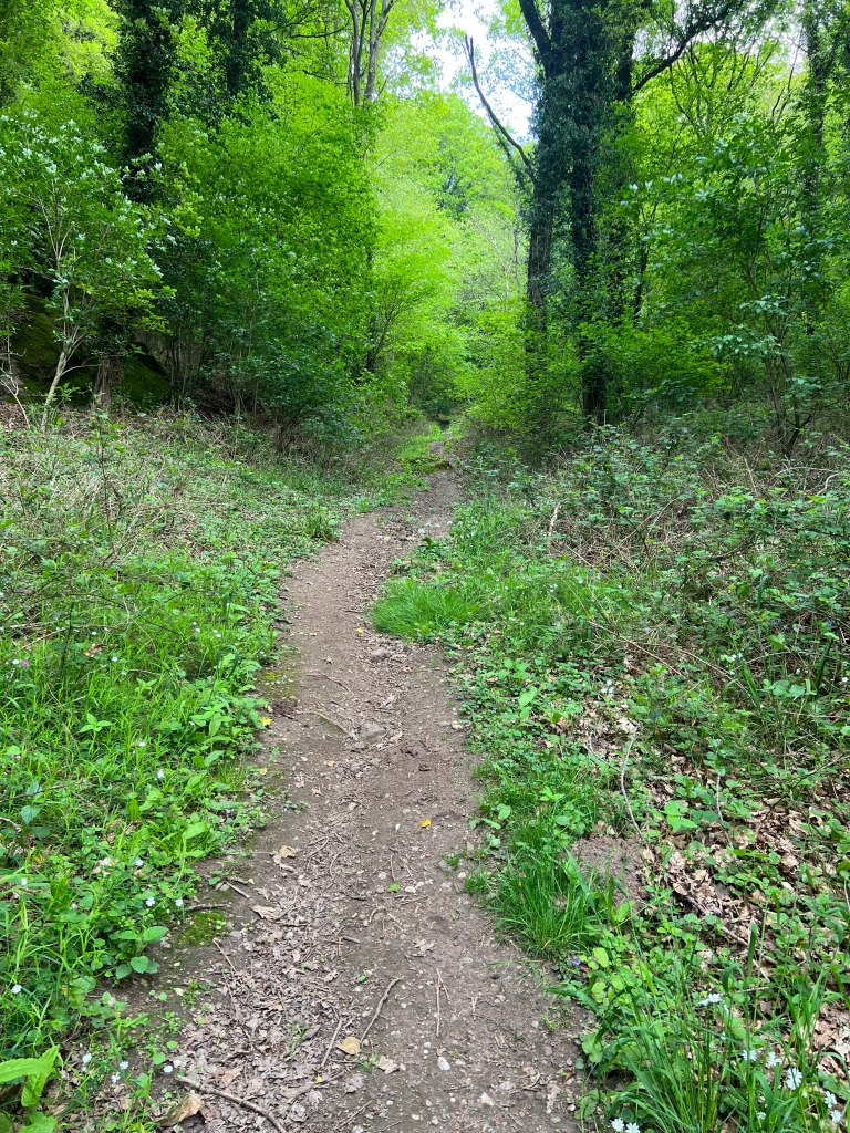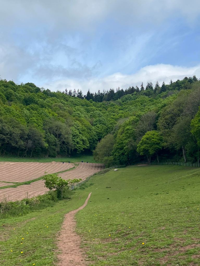 This was one of my favorite days of walking, beautiful, just challenging enough, and perfect weather. The walk out of Kerne Bridge started level but quickly presented me with the first, biggest climb of the day. Total elevation change this section 1200 feet, and a compact 5.5-mile walk to Ross-on-Wye. And arrival in Ross signaled the half-way point of my walk! Woot!