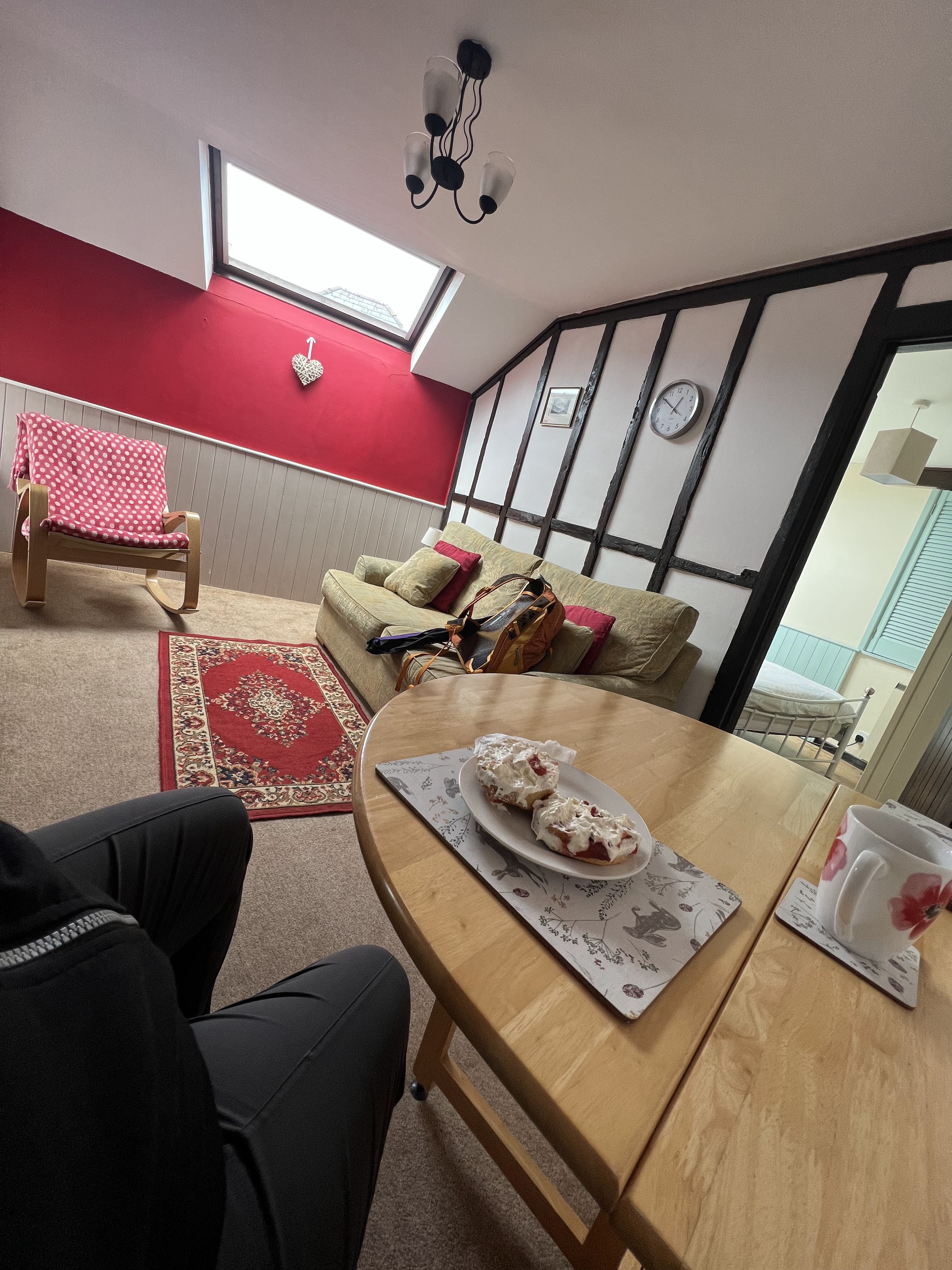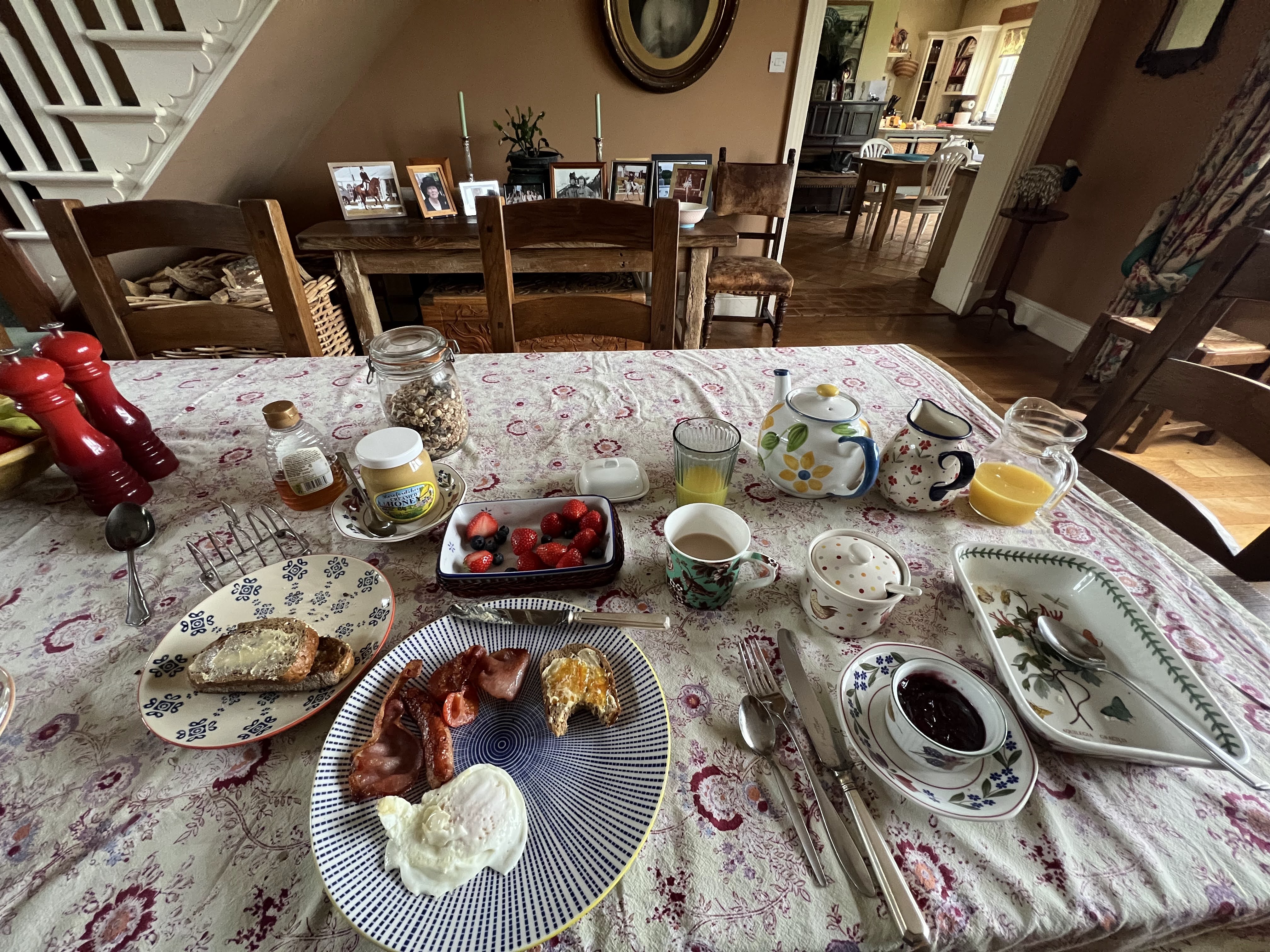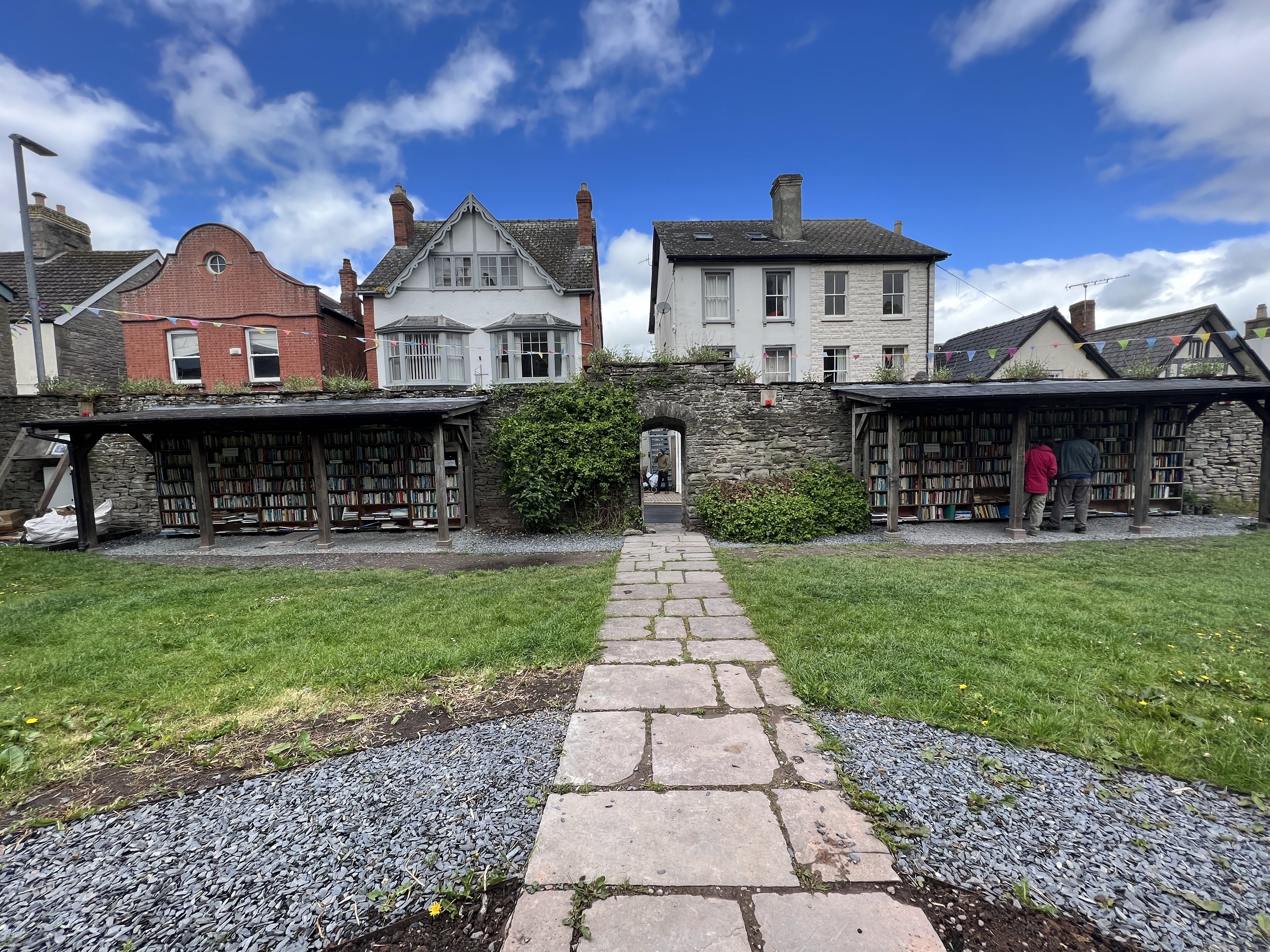 Love the books, question the worldview of the author.Yes, that is rain.Breakfast, part one. Breakfast part 2I waited in the sitting room. Man, was I ever glad I wasn’t walking in that.The rain stopped as we drove into Hay! This is the alley to my flat. And yes, that’s a little cafe downstairs from it. and that’s a really wonderful scone with clotted cream and jam, in my cute little flat.My flat is in the castle walls. This is a view of the castle from the street outside. Unfortunately, it was closed for renovations.View from the castle steps. This is the first of about 10 bookstores I visited! On the honor system. It turned into a stunning day!It just so happened, I had finished my previous book the day before. Therefore, justified shopping!