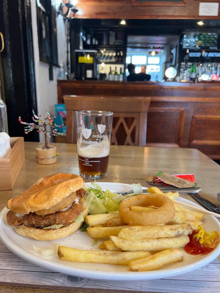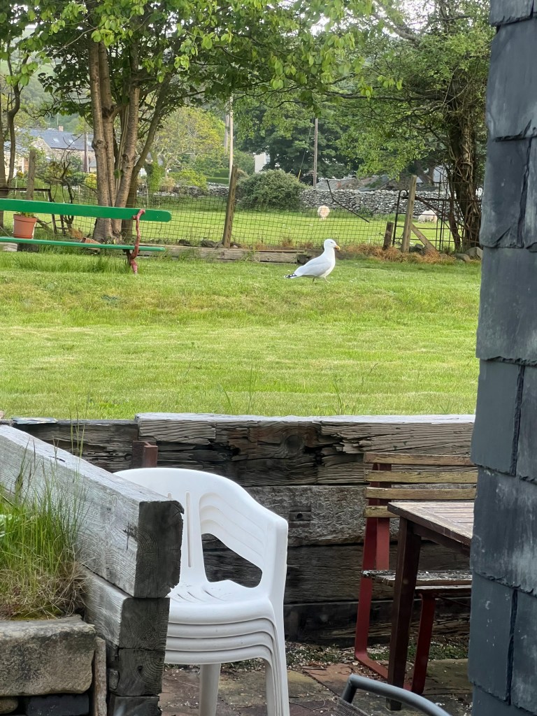 I’d had a good breakfast in my flat at Hay, but didn’t really plan well for the rest of the journey. I had a train change at Shrewsbury, but not enough time to get food, so I was pretty hungry upon arrival in Llwyngwril. After a lovely greeting from Larry and Margaret and dropping off my bag, I rushed over to the pub. As it turned out, I barely got there before they stopped serving food for a catered event that evening. Good thing, I was *quite* famished!