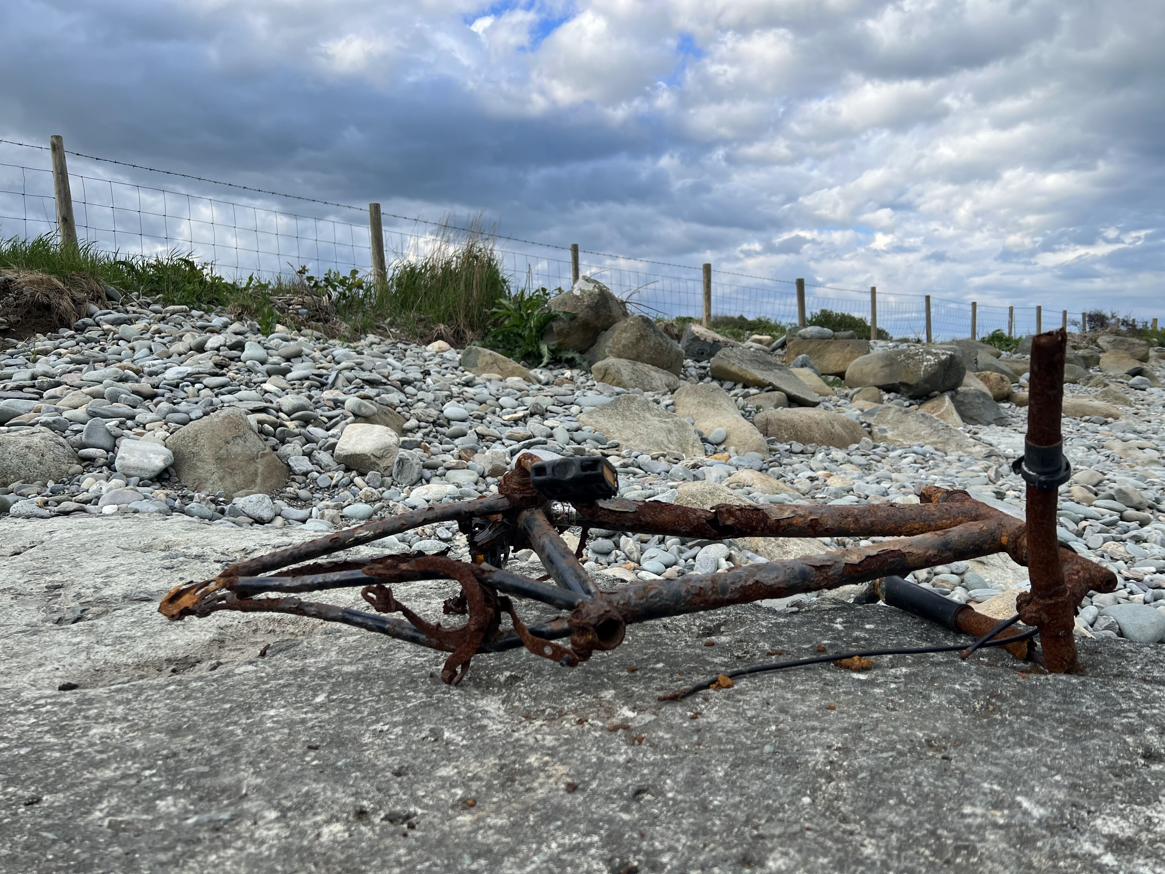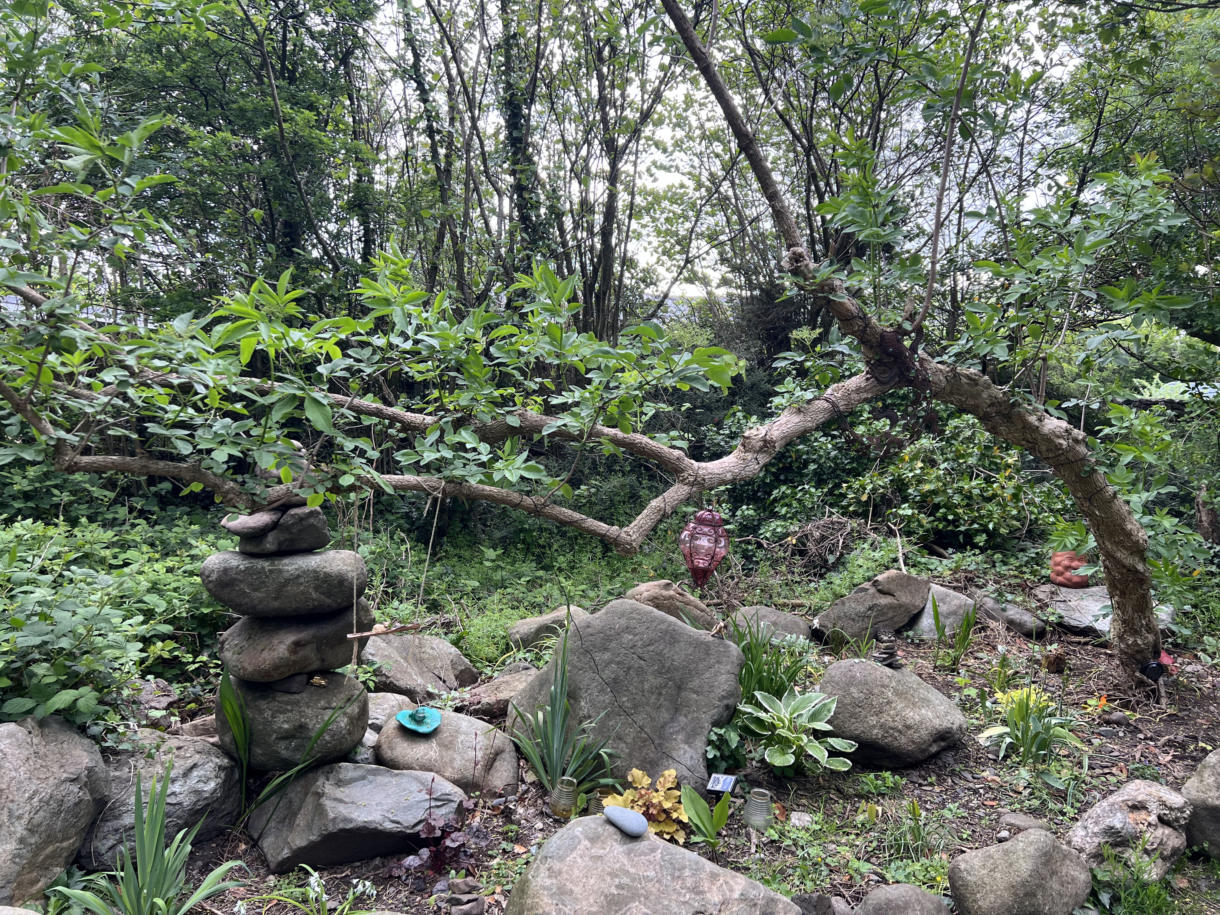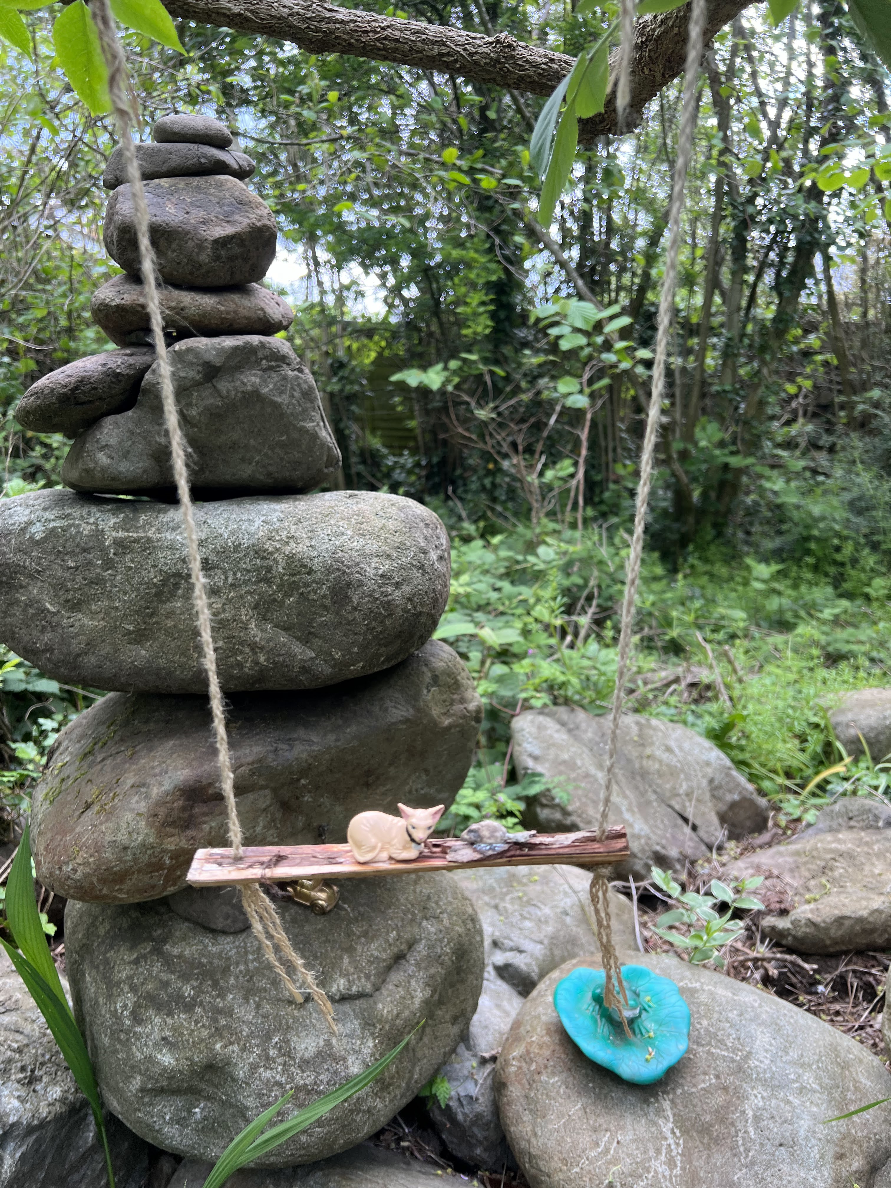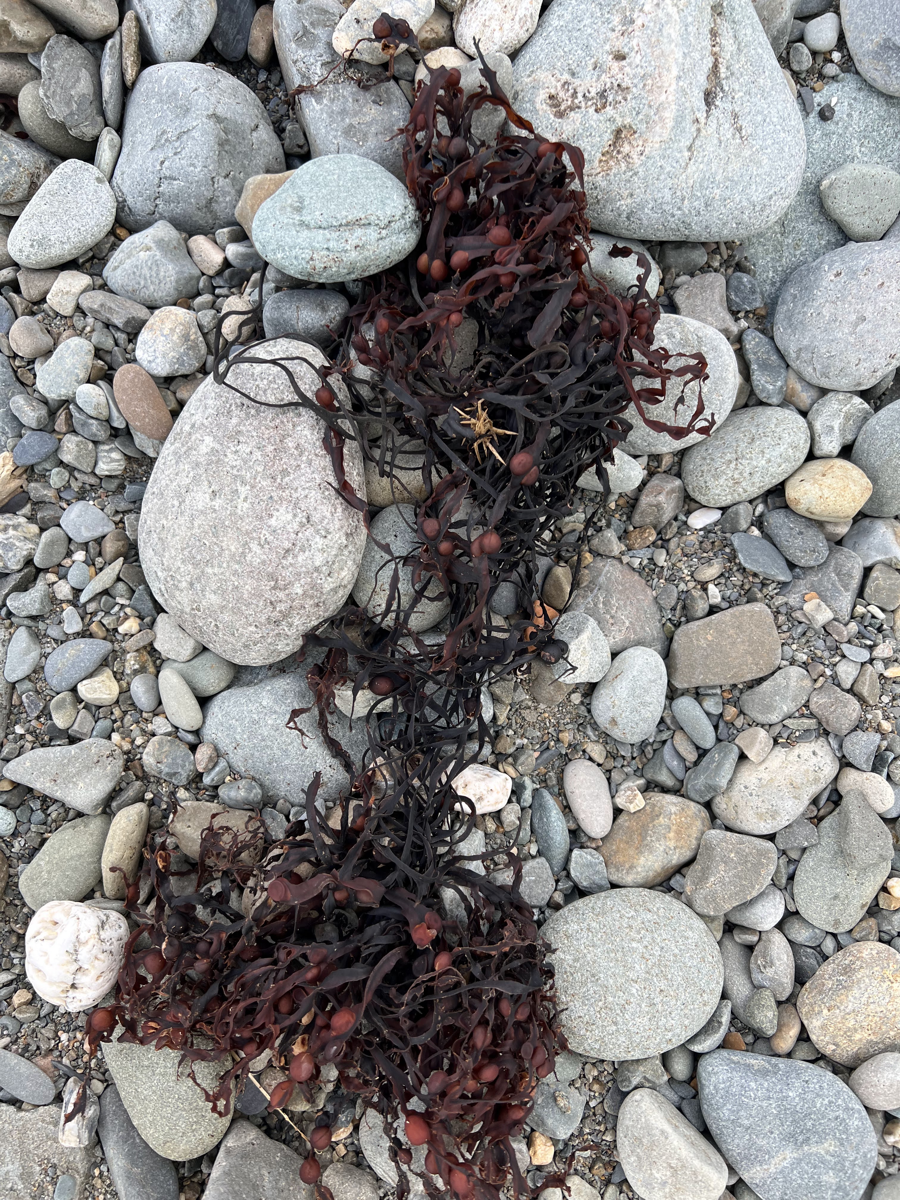 The hills behind my cottage. Green and velvety.The path to the sea runs along a creek.Mountains, sea, stony beach.Not sure if this was art or accident.Mt. Snowden back there somewhere.I love rock beaches. Love love love. The center rock (white with orange and red stripes) is the “spoke to me” rock that came home with me. The textures. Also, burbling water from a streamlet.End of the road.More Art by Nature.Such a pretty little village is Llwyngwril.Ye Shall Not Pass!!Whimsey, courtesy of village residents.Embiggen for clues!Clues.The Green Man Abides.Community Store Booty!This was the best. Just the best. I had brought some really lovely coffee with me from Hay-on-Wye.Perfect breakfast. Welsh bacon is SO GOOD! As are British eggs. And blackcurrant jam.My clothing was in sore, sore need of laundering at this point. First laundry in 2.5 weeks.I whiled away the afternoon, and it was lovely. Tea and McVities biscuits.A Hay find, Carol Shields’ “Larry’s Party” was excellent domestic drama, beautifully written.The evening sky.Still hours from sunset, dramatic celestial spotlights.