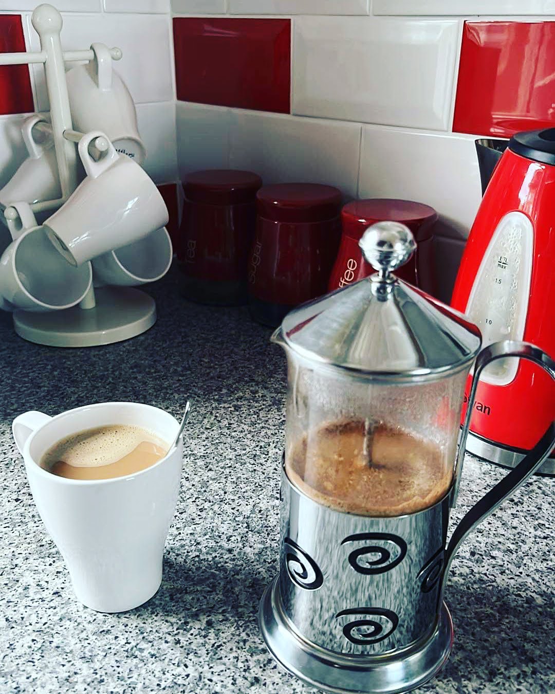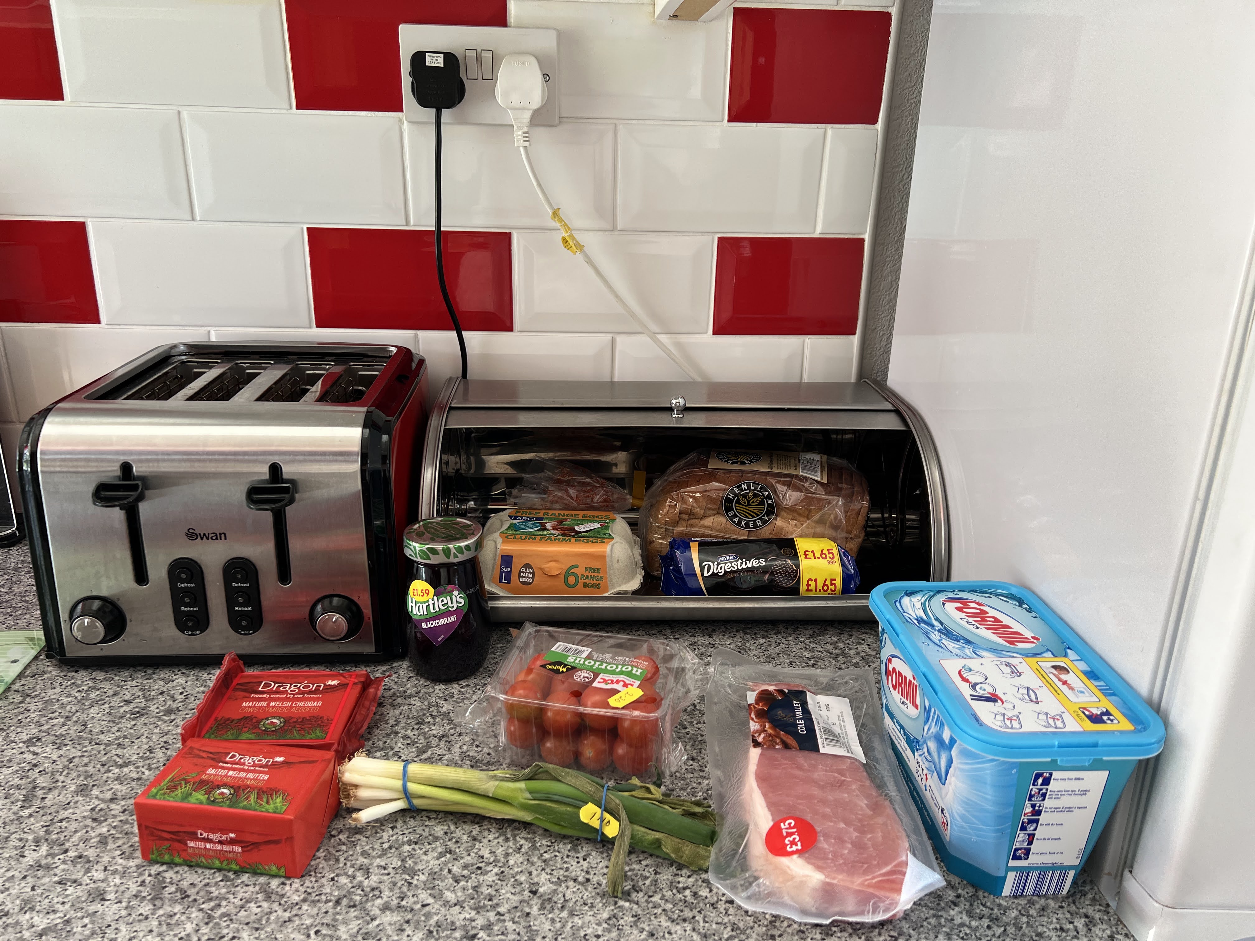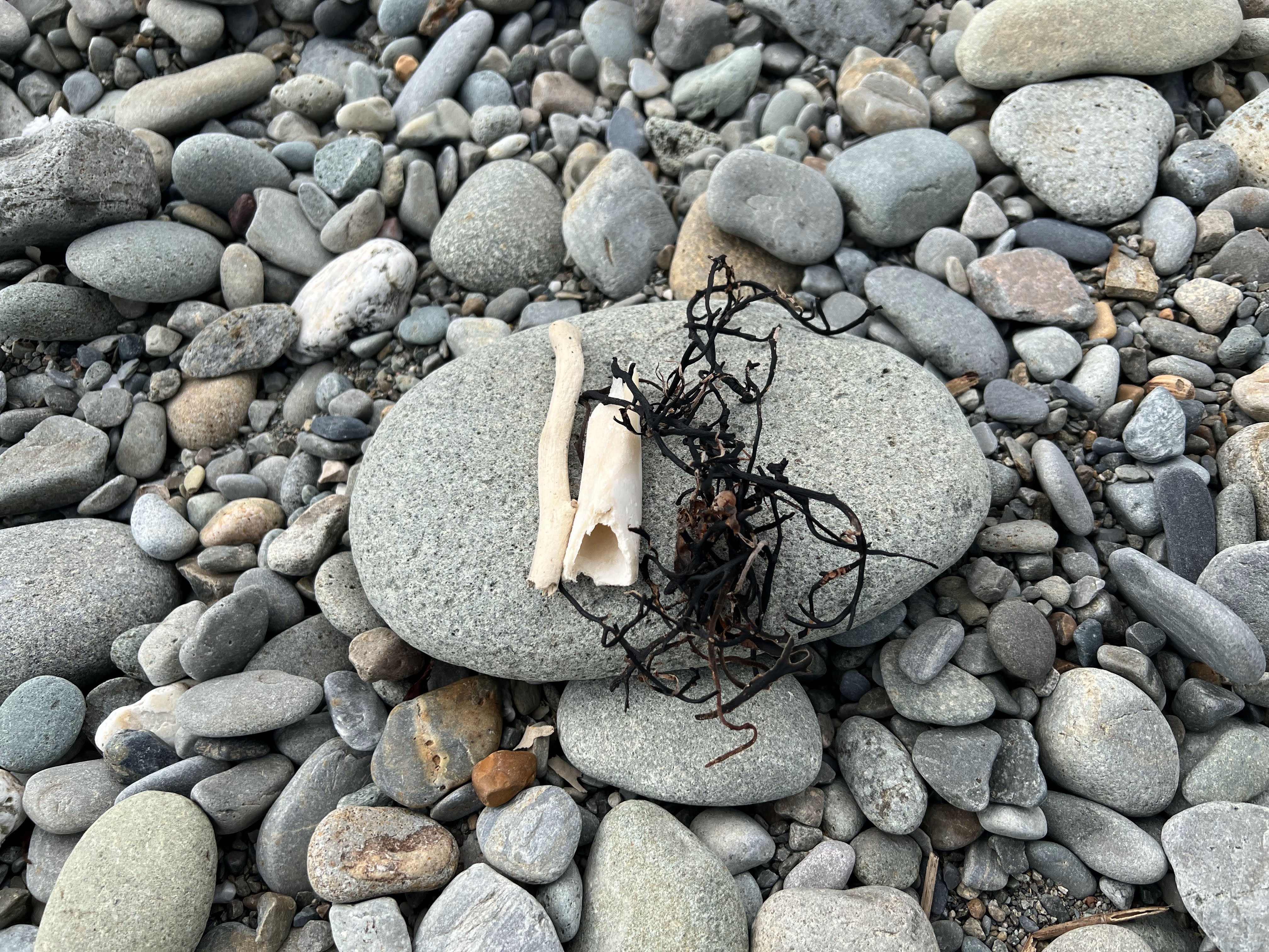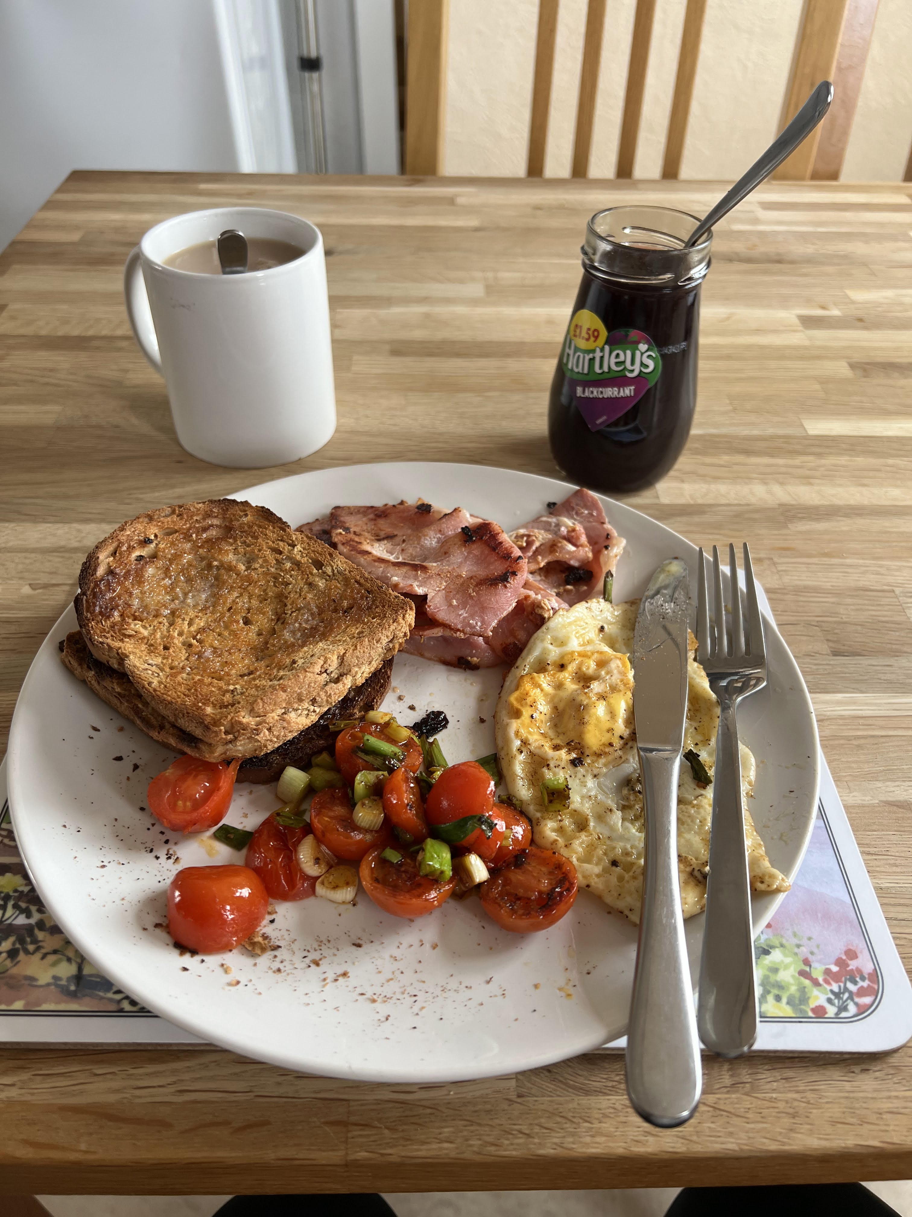 The hills behind my cottage. Green and velvety.The path to the sea runs along a creek.Mountains, sea, stony beach.Not sure if this was art or accident.Mt. Snowden back there somewhere.I love rock beaches. Love love love. The center rock (white with orange and red stripes) is the “spoke to me” rock that came home with me. The textures. Also, burbling water from a streamlet.End of the road.More Art by Nature.Such a pretty little village is Llwyngwril.Ye Shall Not Pass!!Whimsey, courtesy of village residents.Embiggen for clues!Clues.The Green Man Abides.Community Store Booty!This was the best. Just the best. I had brought some really lovely coffee with me from Hay-on-Wye.Perfect breakfast. Welsh bacon is SO GOOD! As are British eggs. And blackcurrant jam.My clothing was in sore, sore need of laundering at this point. First laundry in 2.5 weeks.I whiled away the afternoon, and it was lovely. Tea and McVities biscuits.A Hay find, Carol Shields’ “Larry’s Party” was excellent domestic drama, beautifully written.The evening sky.Still hours from sunset, dramatic celestial spotlights.