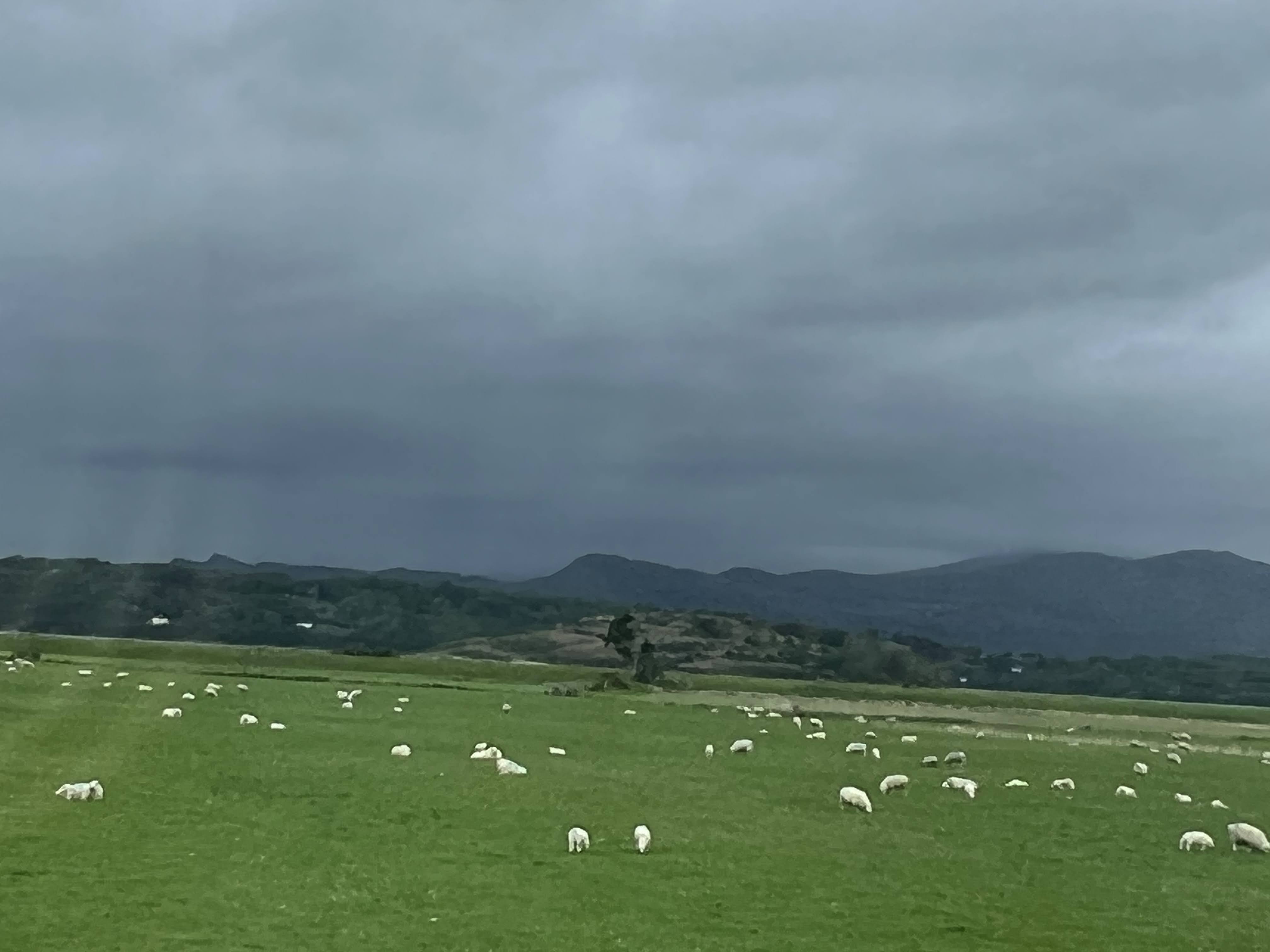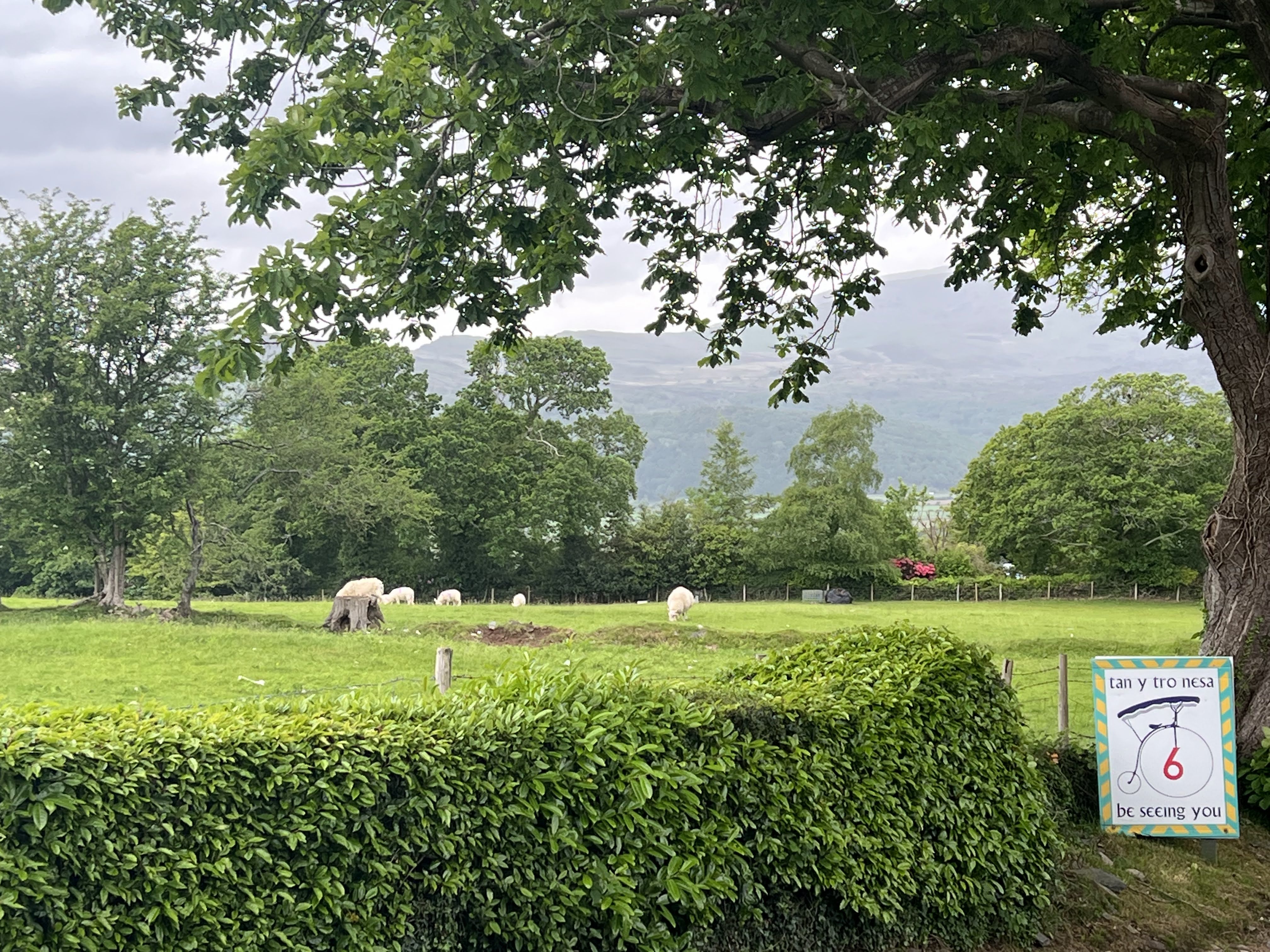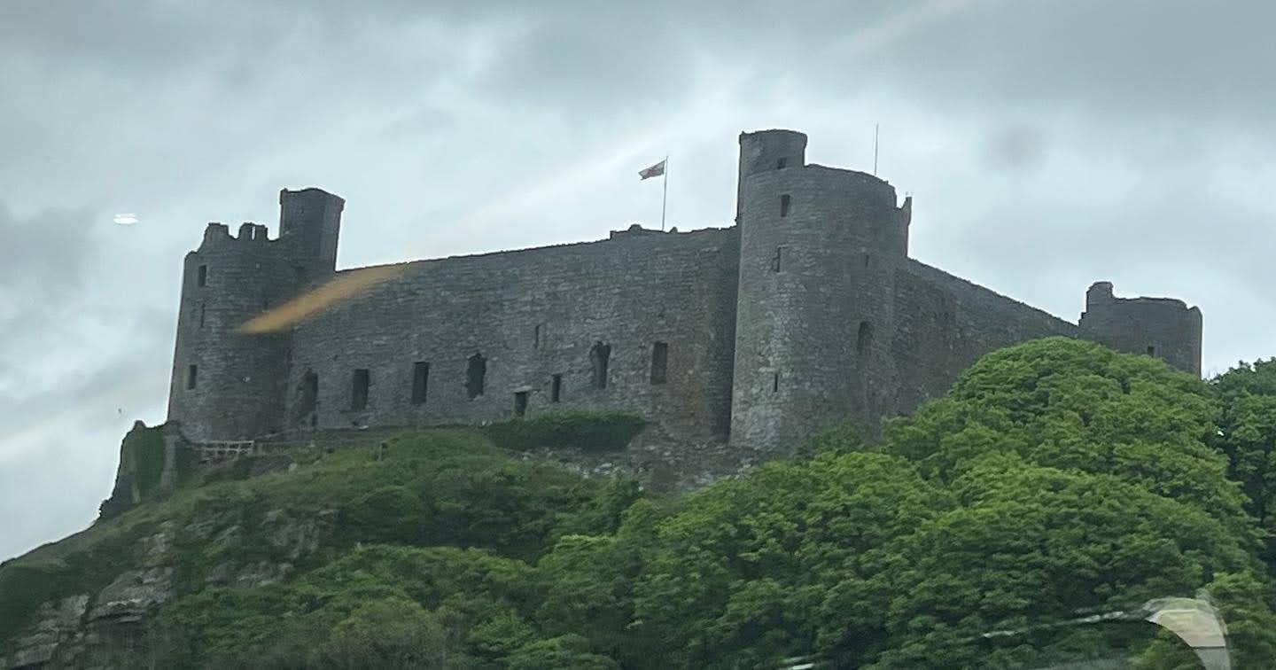 Harlech village is on the way to Minffordd, the train stop for Portmeirion Village. There is a major castle ruin there, and I spent a day in 2018 (but not this year). I did snap this photo of a brutalist building, Theatre Ardudwy, viewed from the train window. I wish I’d looked it up before THIS VERY MOMENT. I’m not sure it was open when I was there, but it would have been worth a look! It pairs nicely with that other major brutalist building, Harlech Castle!