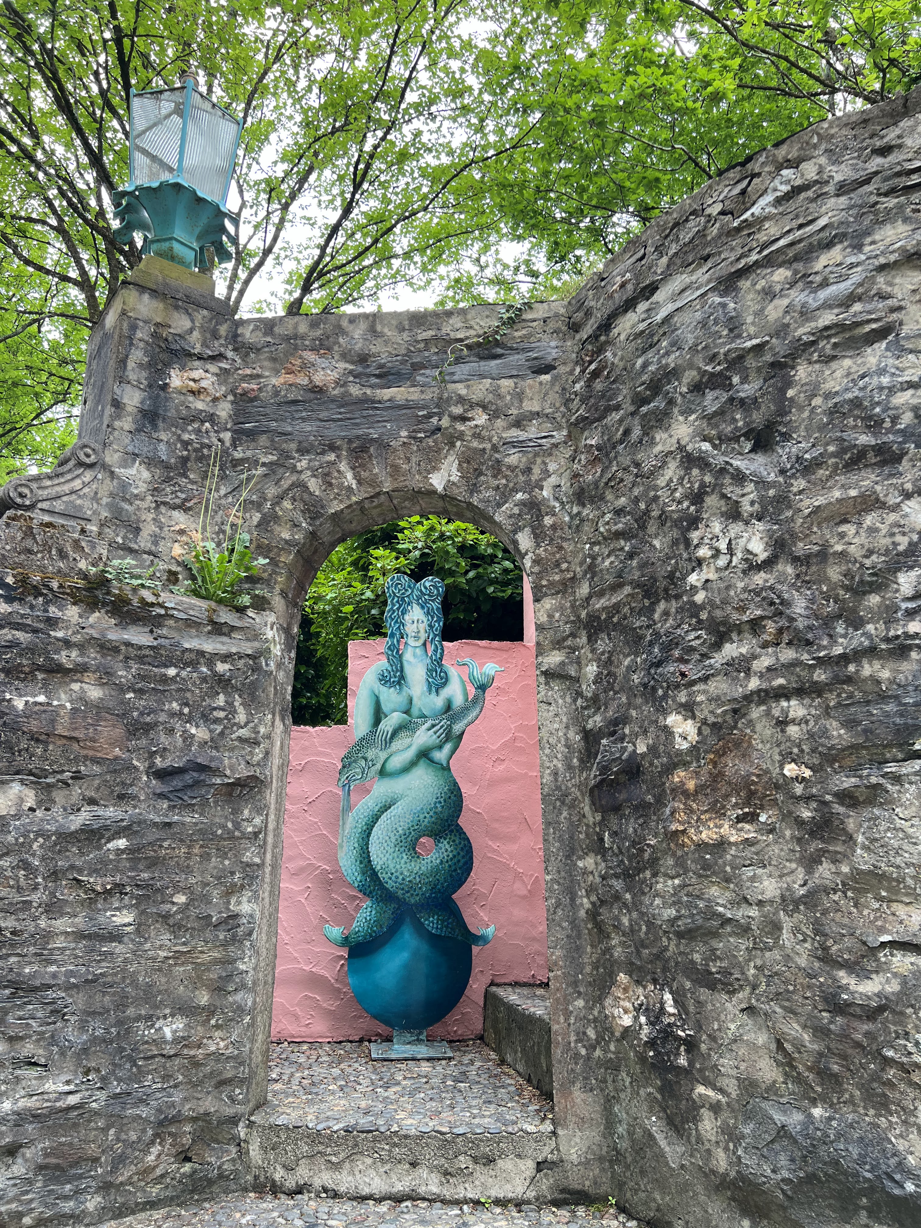 I encourage you to embiggen many of the photos below, just to see the detail throughout the architecture and design of the village. The attention to small things is just astounding. Sr. Clough Williams-Ellis worked on this much-loved project for 50 years! It was always intended as a resort for guests, but it’s so much more. The skilled labor he employed to build it, and the high quality of that skill and materials used, makes it the opposite of a folly (although it was a bit of a vanity project). While there was nothing “new” to see this visit, there were new things to notice. It’s an extraordinary place.