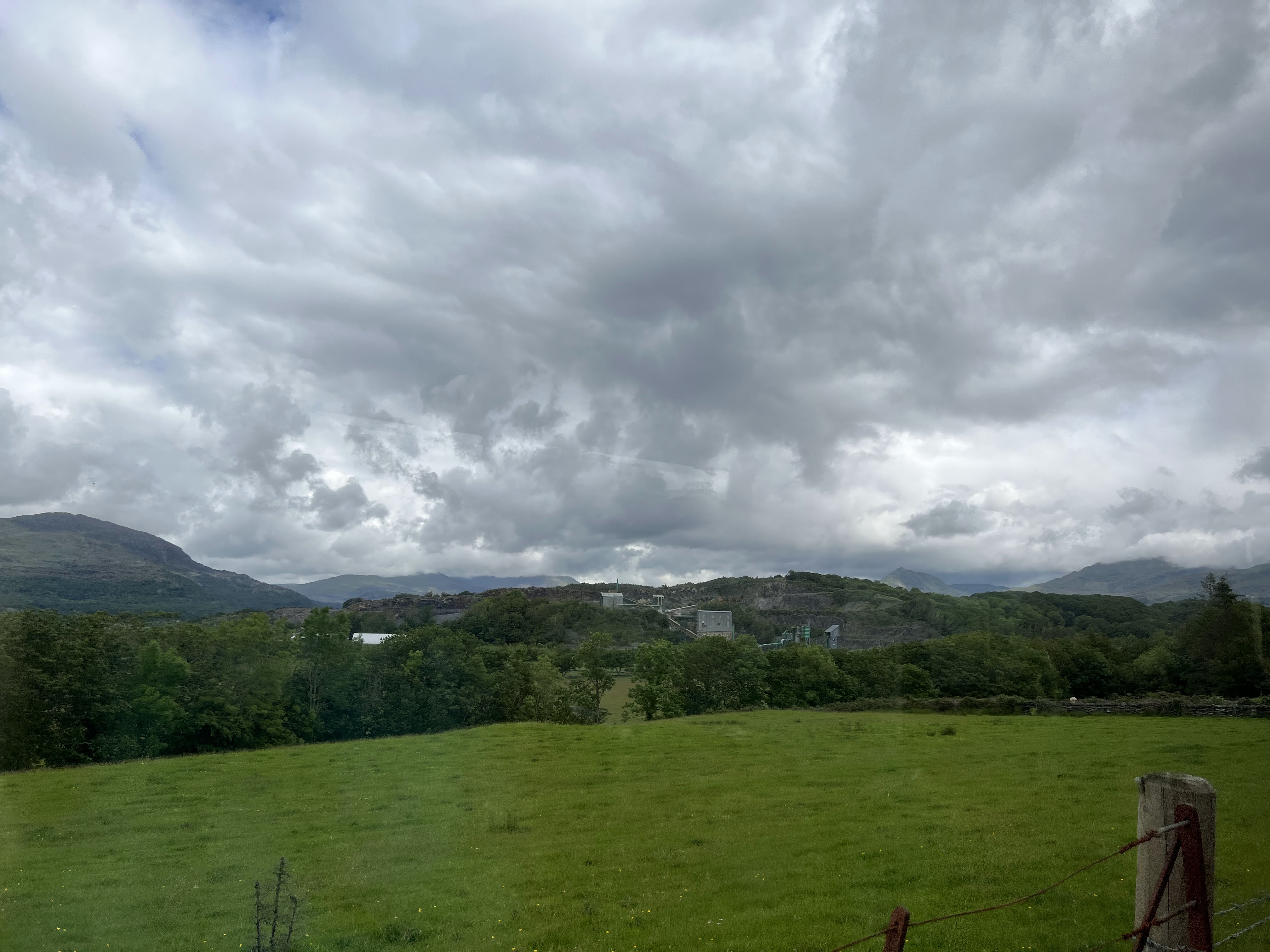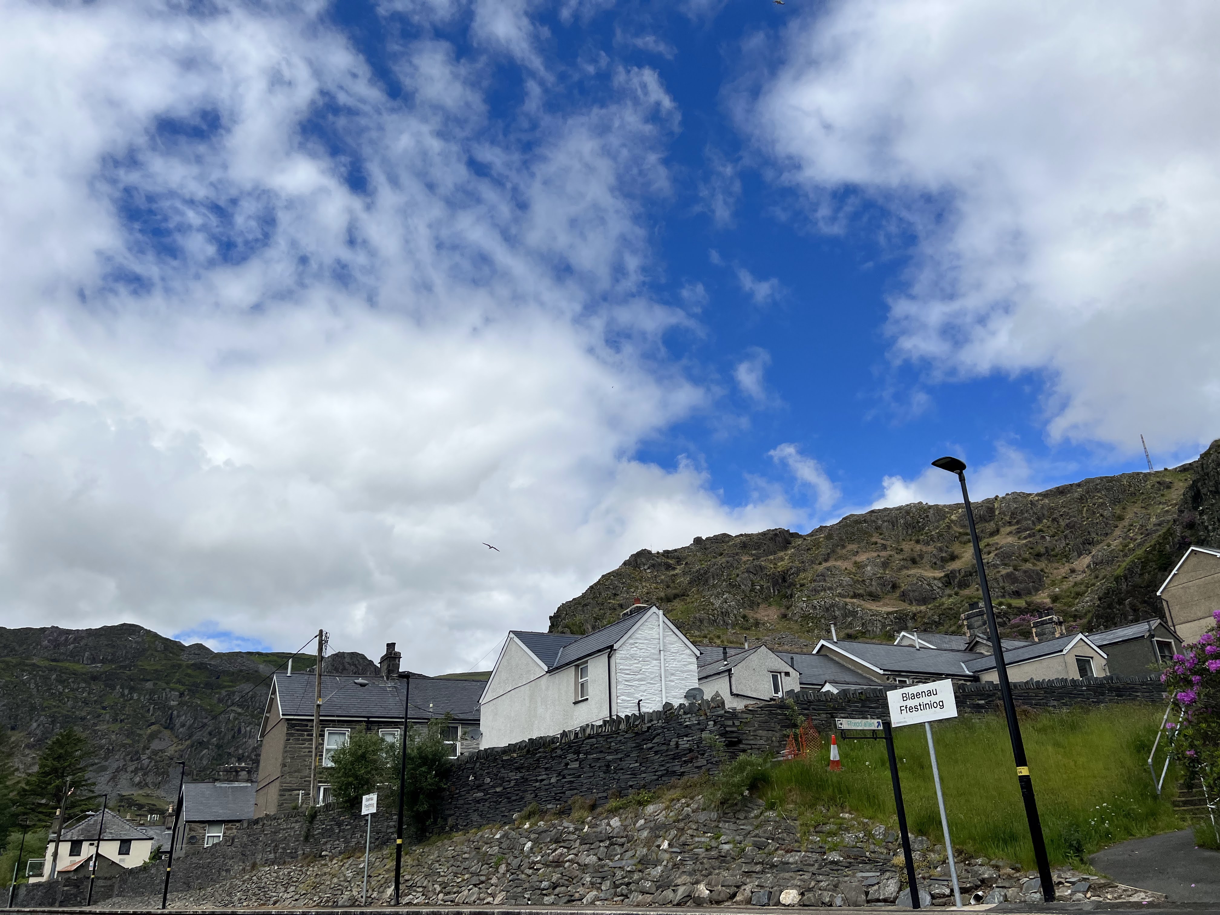Mountains of slate.Blaenau Ffestiniog, the town that slate built. And is also built of slate.Enjoyed a quick walk through this charming little town up in the hills of Snowdonia.A very acceptable lunch.V. trad shot of our steam engine, steaming along.Tan-y-Bwlch station. Everything is tiny!Trawsfynydd nuclear power station, decommissioned but majestic nonetheless. I thought it was a castle at first glance. Little village literally nestled in the valley.This little llyn. Looks like a resort. There is so much texture and beauty in Wales. It was lovely to see it from this perspective, i.e., from a train!