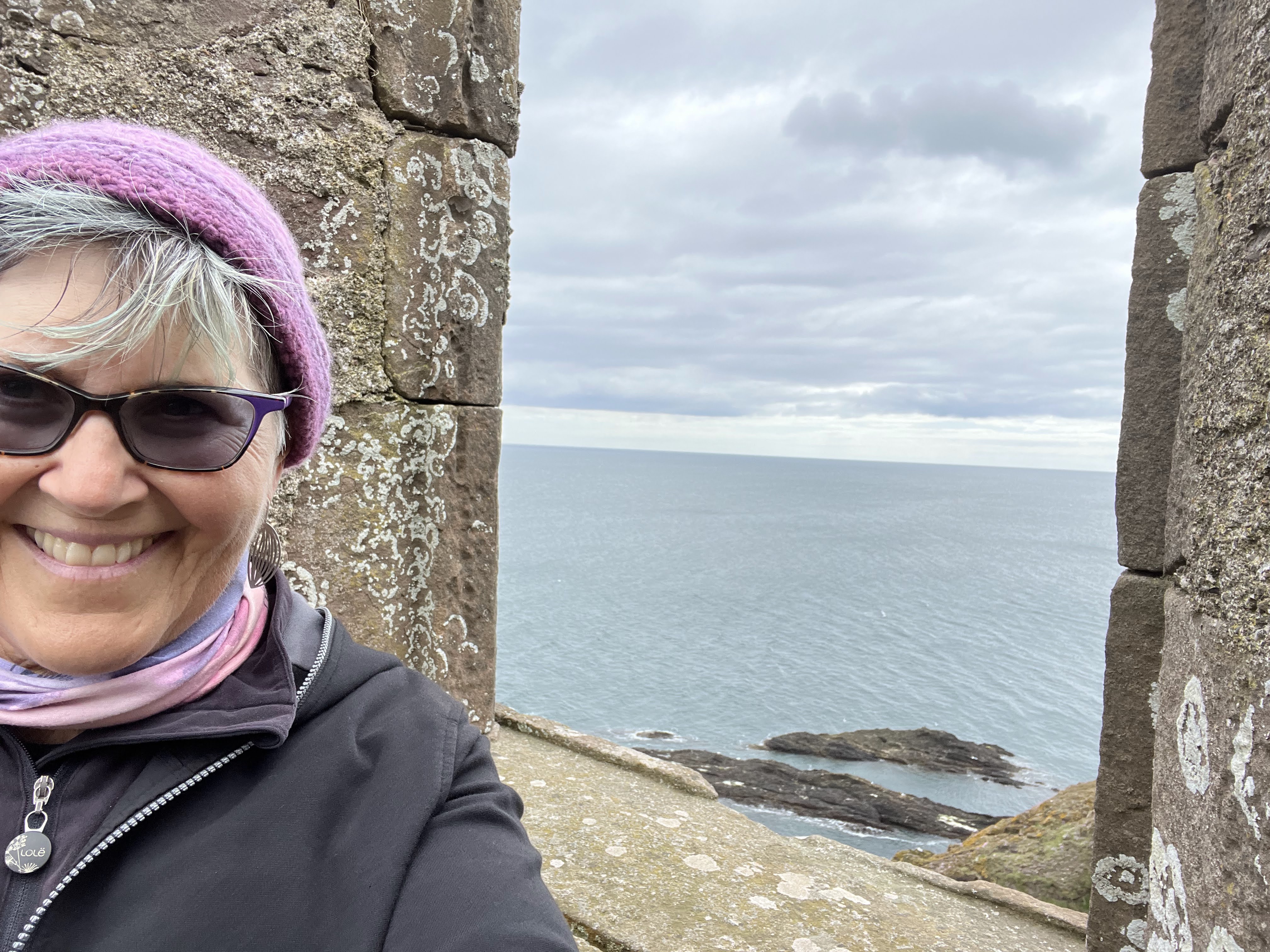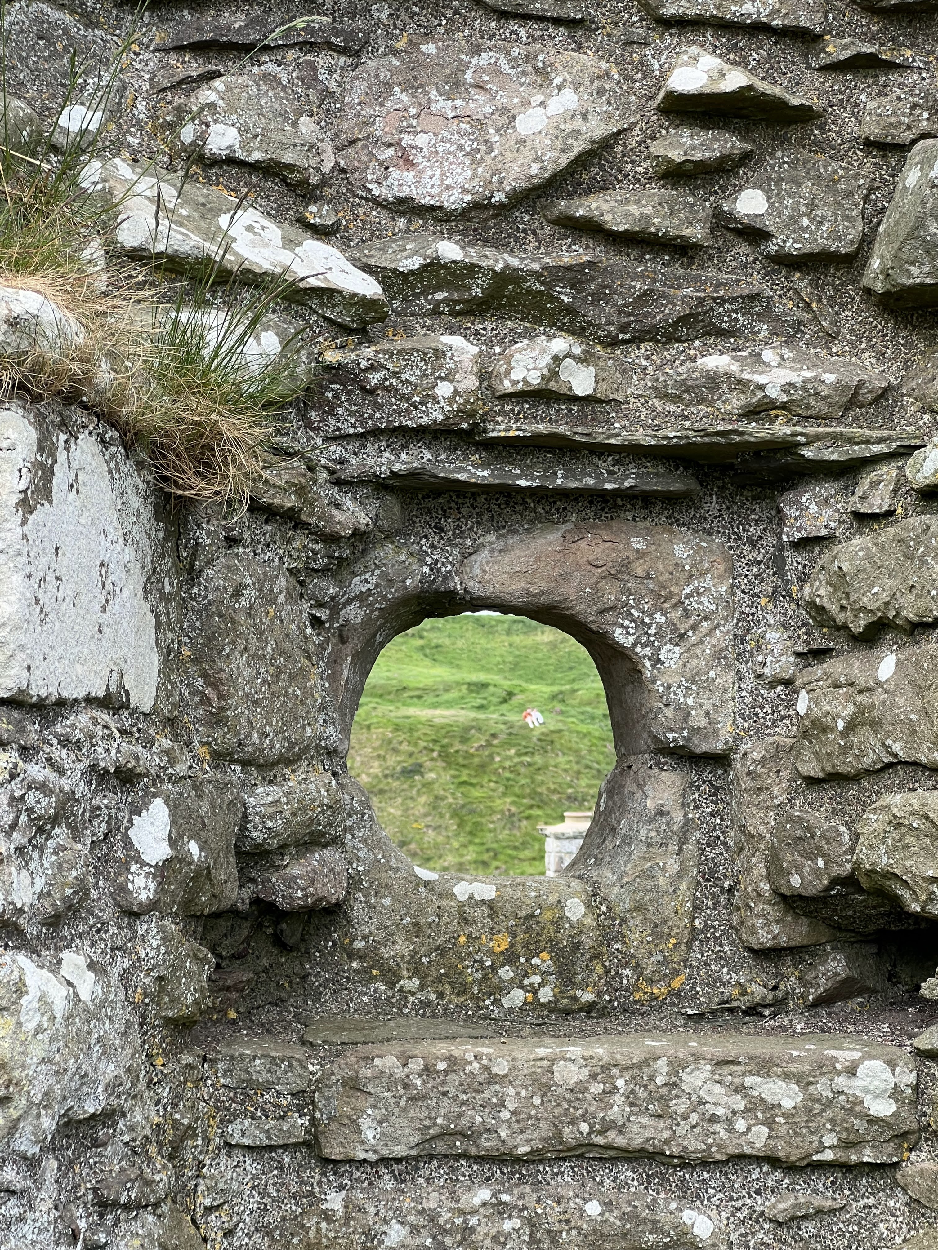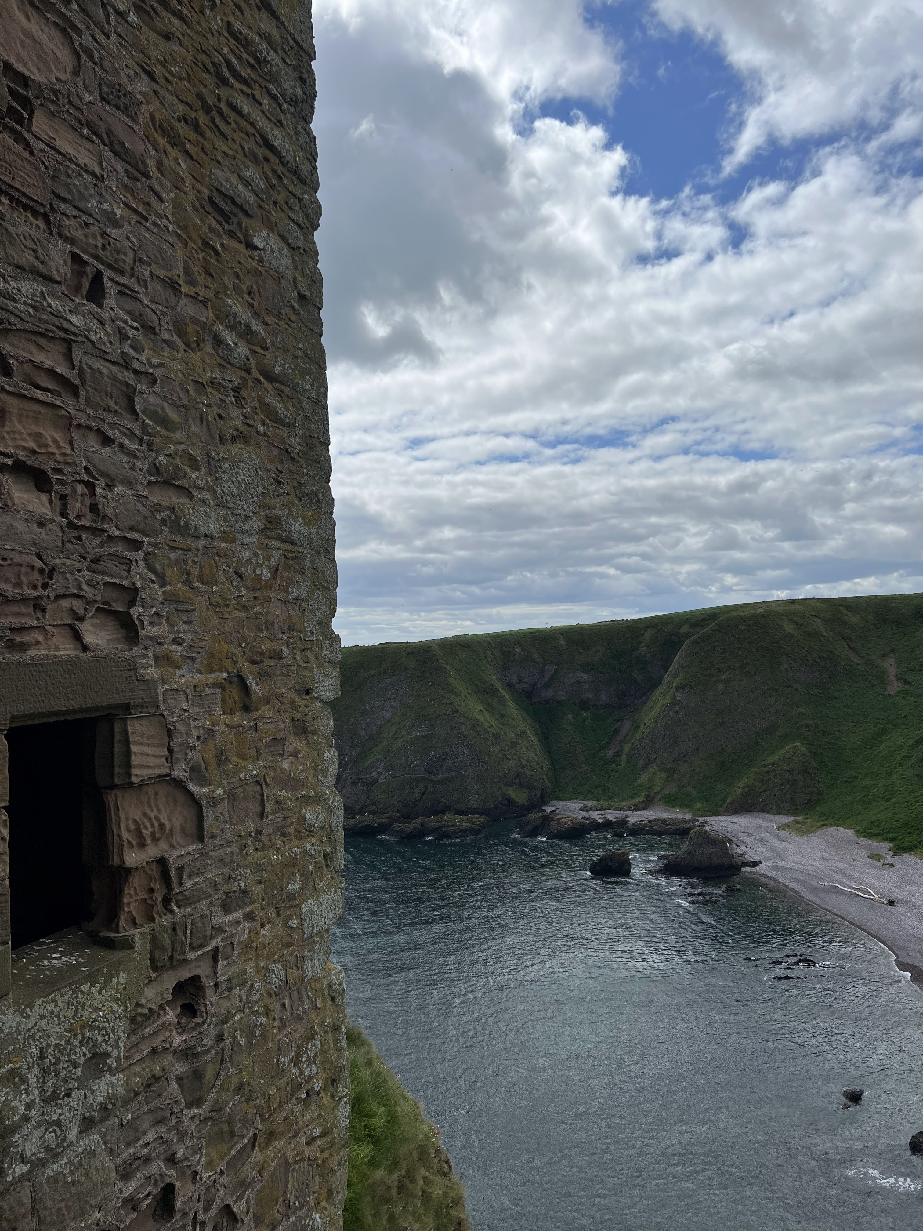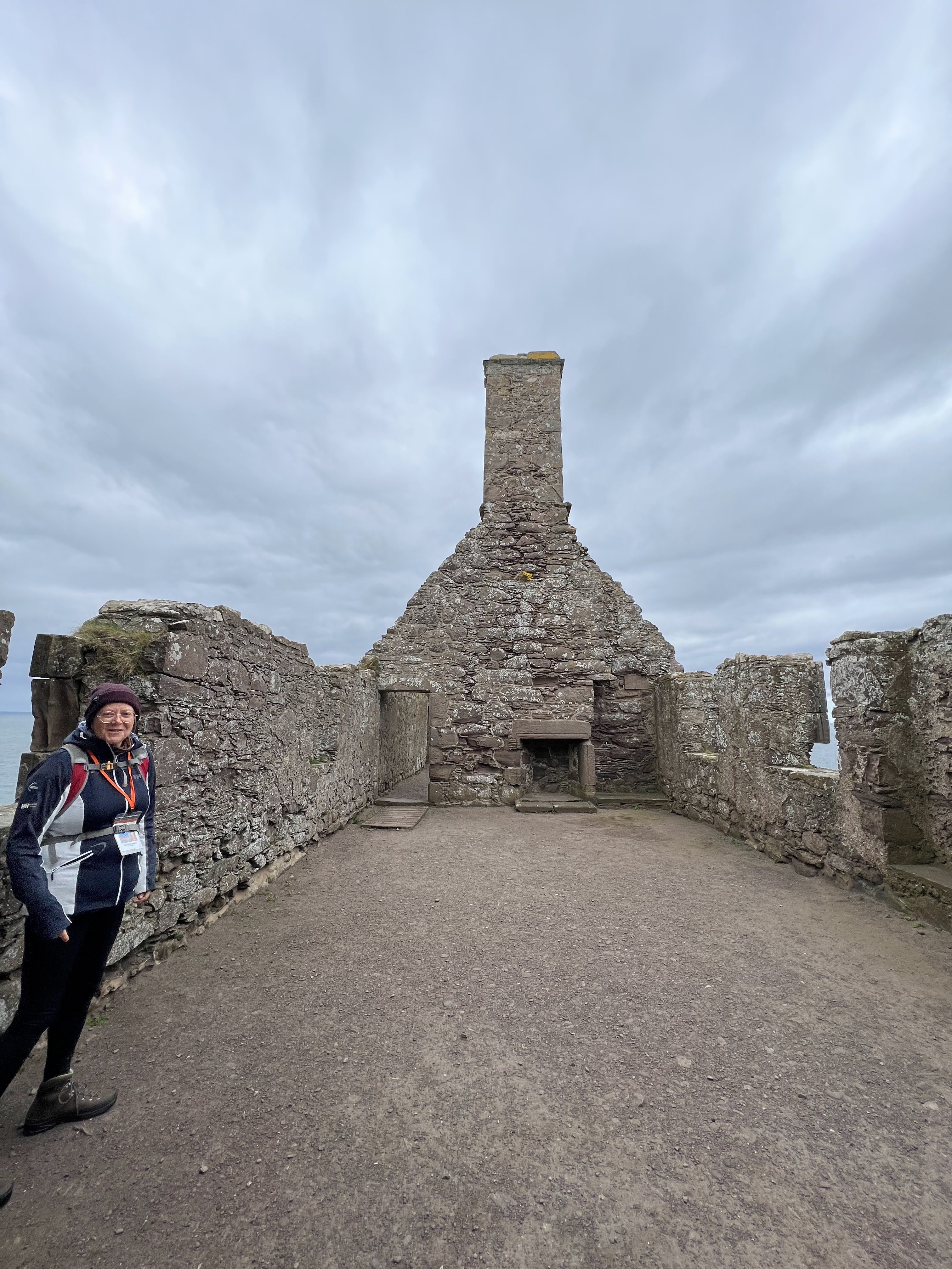 “Pest” (plague)Looking down on Stonehaven harbor. Part 2 of this day is my wander along the waterfront.That right there? That’s the Highland Boundary Fault! Read about it here. This phenomenon is of special interest to the woman who did my Dunnottar Castle tour (Faulty Tours, LOL). If I go back, I’ll explore it with her.Dunnottar Castle from the War Memorial (of which I sadly did not get photos).One of the many coves along this bit of coastline.I just love the variety of the coast here.It is magnificent even from a distance. One can only imagine how awe-inspiring it must have been in its heyday.The castle’s placement made it impossible for anyone to sneak up on it. My guide has lived in Stonehaven her entire life. She and her friends used to sneak into the castle grounds via this cave.One other reason for the impermeability of this castle: This is the only entrance and is easily defended.Quite the bottleneck here, too.Weapons portals.View from the castle walls.George Keith, the 5th Earl Marischal, brought a pet lion here.The keep walls, built in 1392, still standing. Flowers from stones.Up the chimney.Nope, can’t sneak up from there!Love the pitting of the sandstone.Beautiful cliffs, and the keep build into them.The residences, behind the keep.The war memorial in the distance.Probably a nook for a religious artifact or icon.The only gravestone surviving, that of a child.My guide! Man, she knew EVERYTHING about this castle. It was a fantastic tour.Dramatic sky, teeth of ruins.The Castle cistern. The kitchen. Those folks are standing at the entrance to the oven.