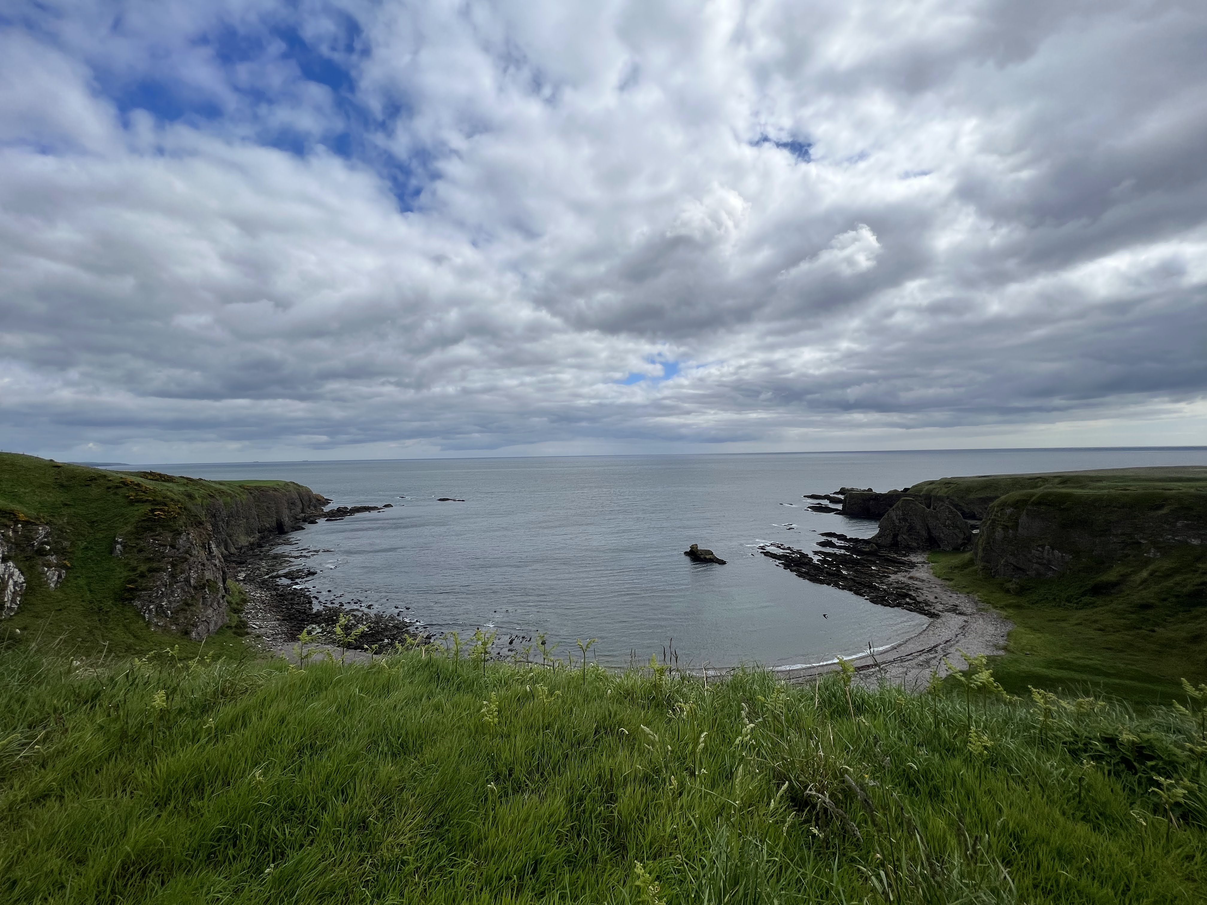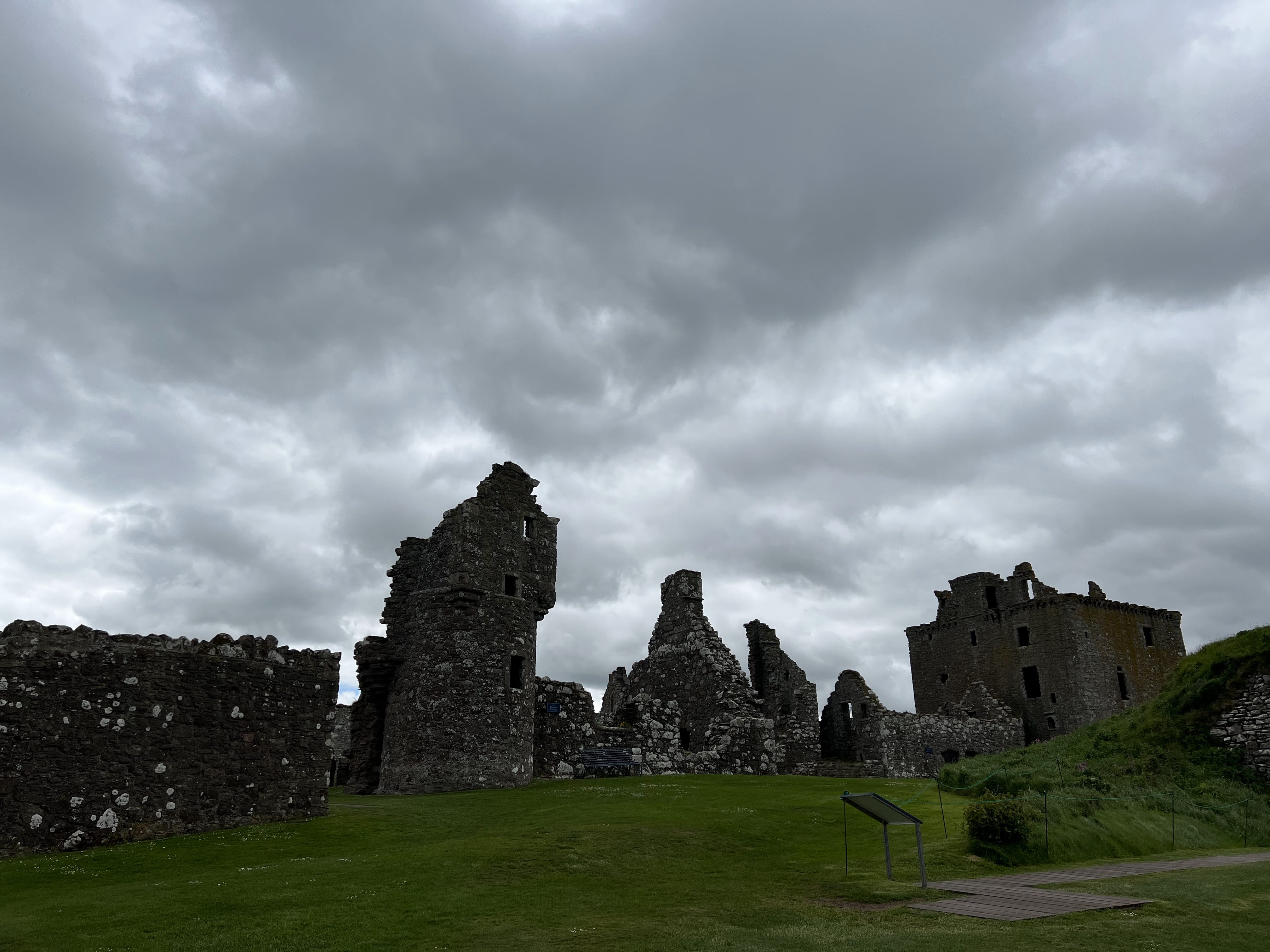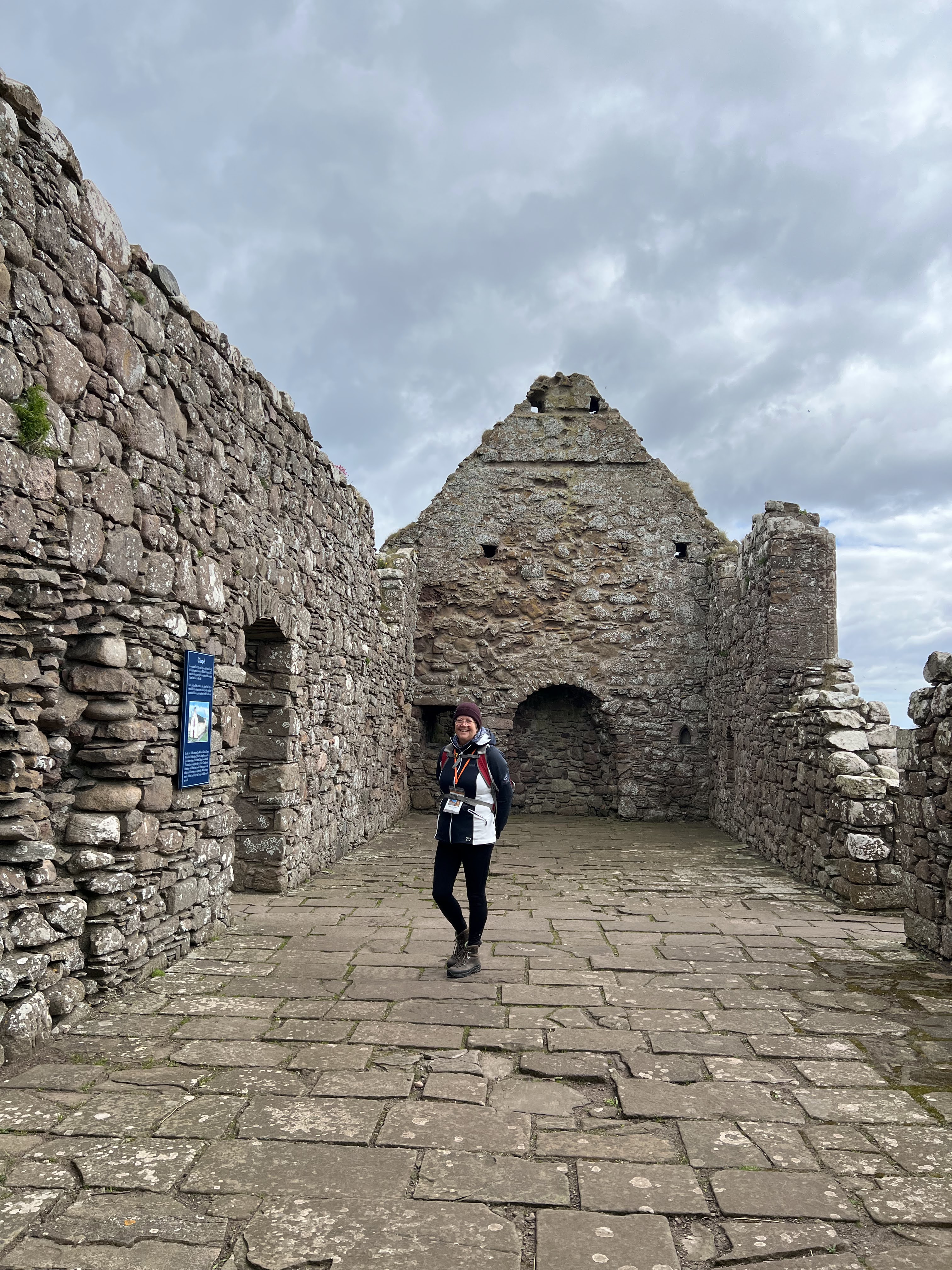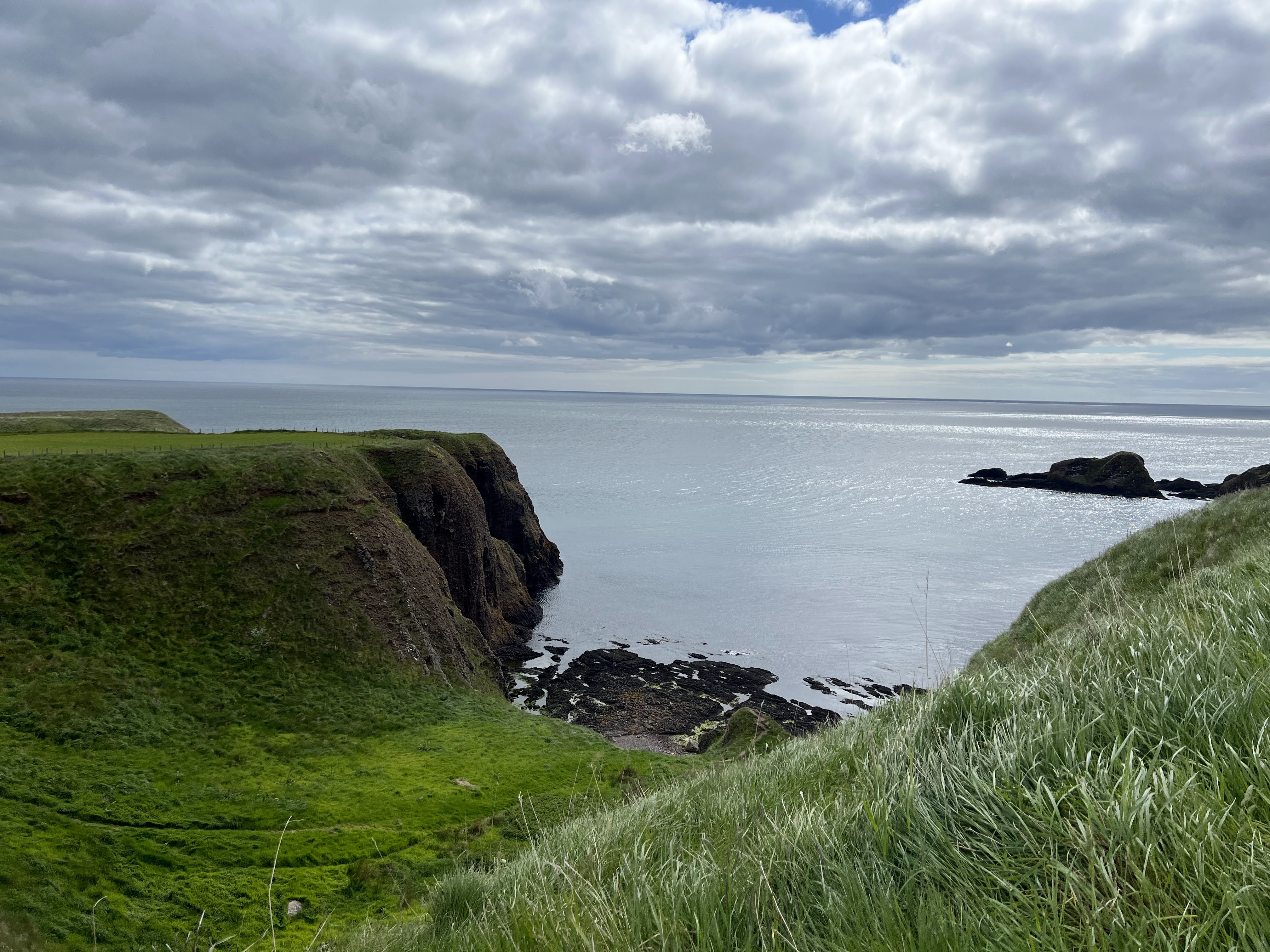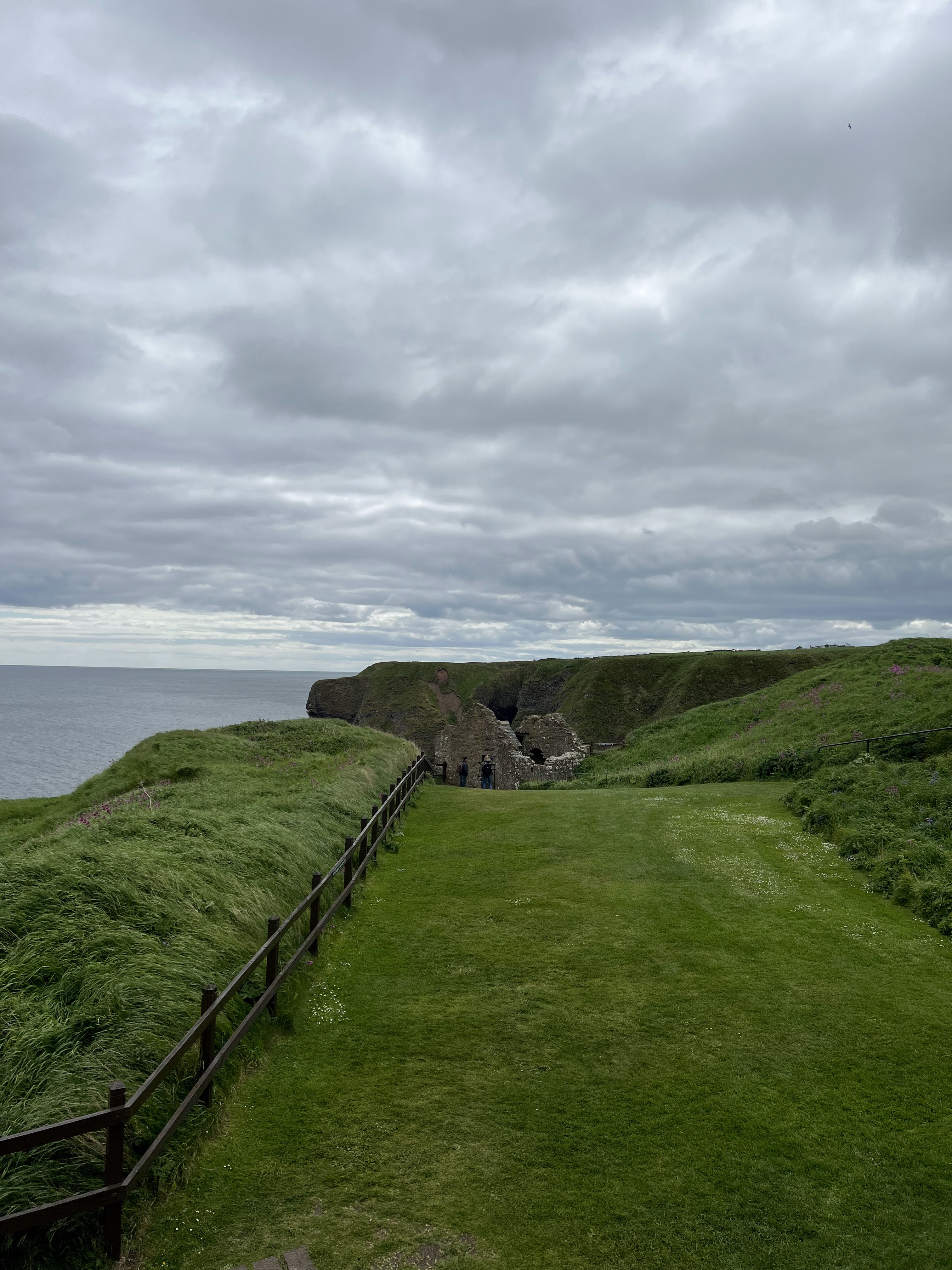 “Pest” (plague)Looking down on Stonehaven harbor. Part 2 of this day is my wander along the waterfront.That right there? That’s the Highland Boundary Fault! Read about it here. This phenomenon is of special interest to the woman who did my Dunnottar Castle tour (Faulty Tours, LOL). If I go back, I’ll explore it with her.Dunnottar Castle from the War Memorial (of which I sadly did not get photos).One of the many coves along this bit of coastline.I just love the variety of the coast here.It is magnificent even from a distance. One can only imagine how awe-inspiring it must have been in its heyday.The castle’s placement made it impossible for anyone to sneak up on it. My guide has lived in Stonehaven her entire life. She and her friends used to sneak into the castle grounds via this cave.One other reason for the impermeability of this castle: This is the only entrance and is easily defended.Quite the bottleneck here, too.Weapons portals.View from the castle walls.George Keith, the 5th Earl Marischal, brought a pet lion here.The keep walls, built in 1392, still standing. Flowers from stones.Up the chimney.Nope, can’t sneak up from there!Love the pitting of the sandstone.Beautiful cliffs, and the keep build into them.The residences, behind the keep.The war memorial in the distance.Probably a nook for a religious artifact or icon.The only gravestone surviving, that of a child.My guide! Man, she knew EVERYTHING about this castle. It was a fantastic tour.Dramatic sky, teeth of ruins.The Castle cistern. The kitchen. Those folks are standing at the entrance to the oven.