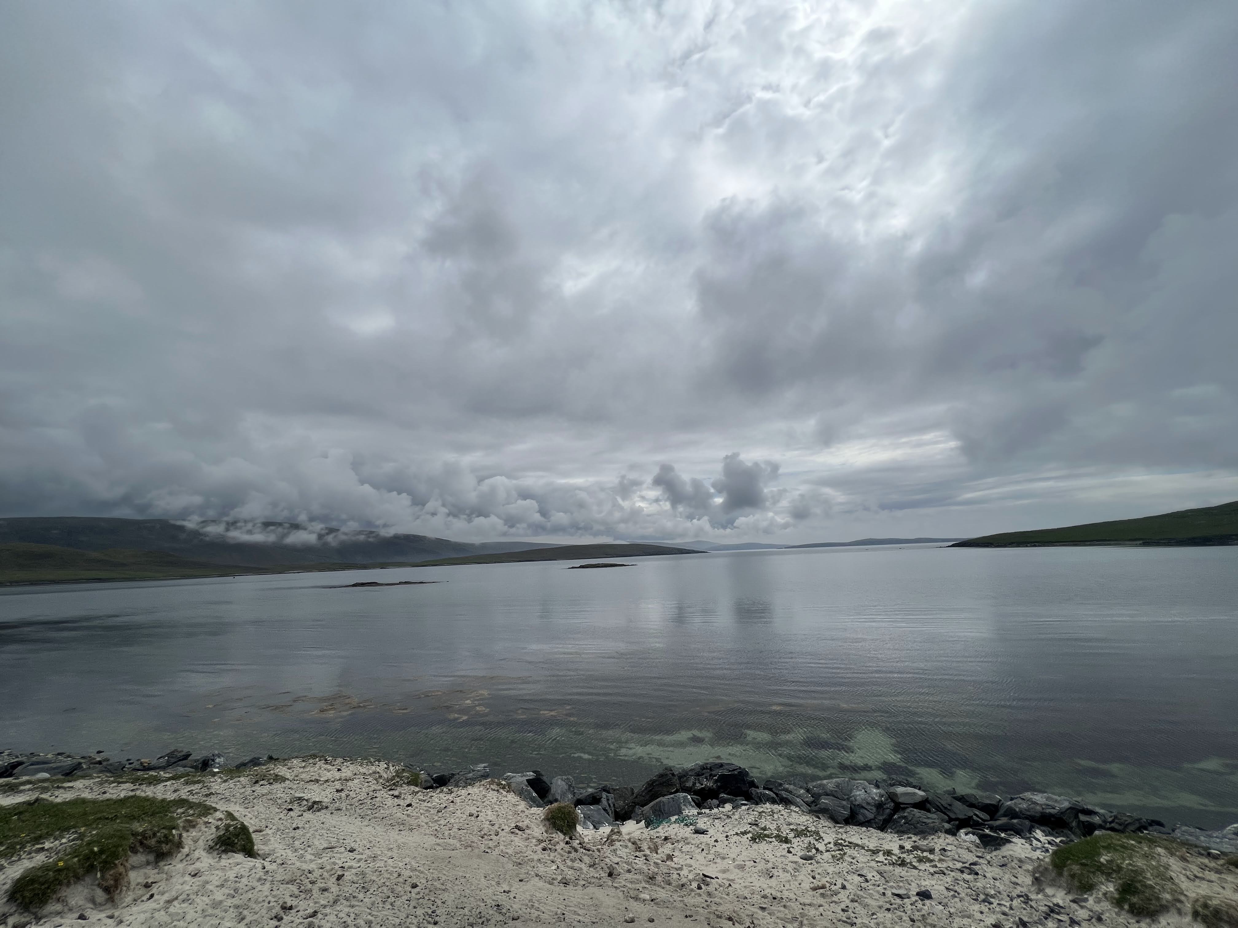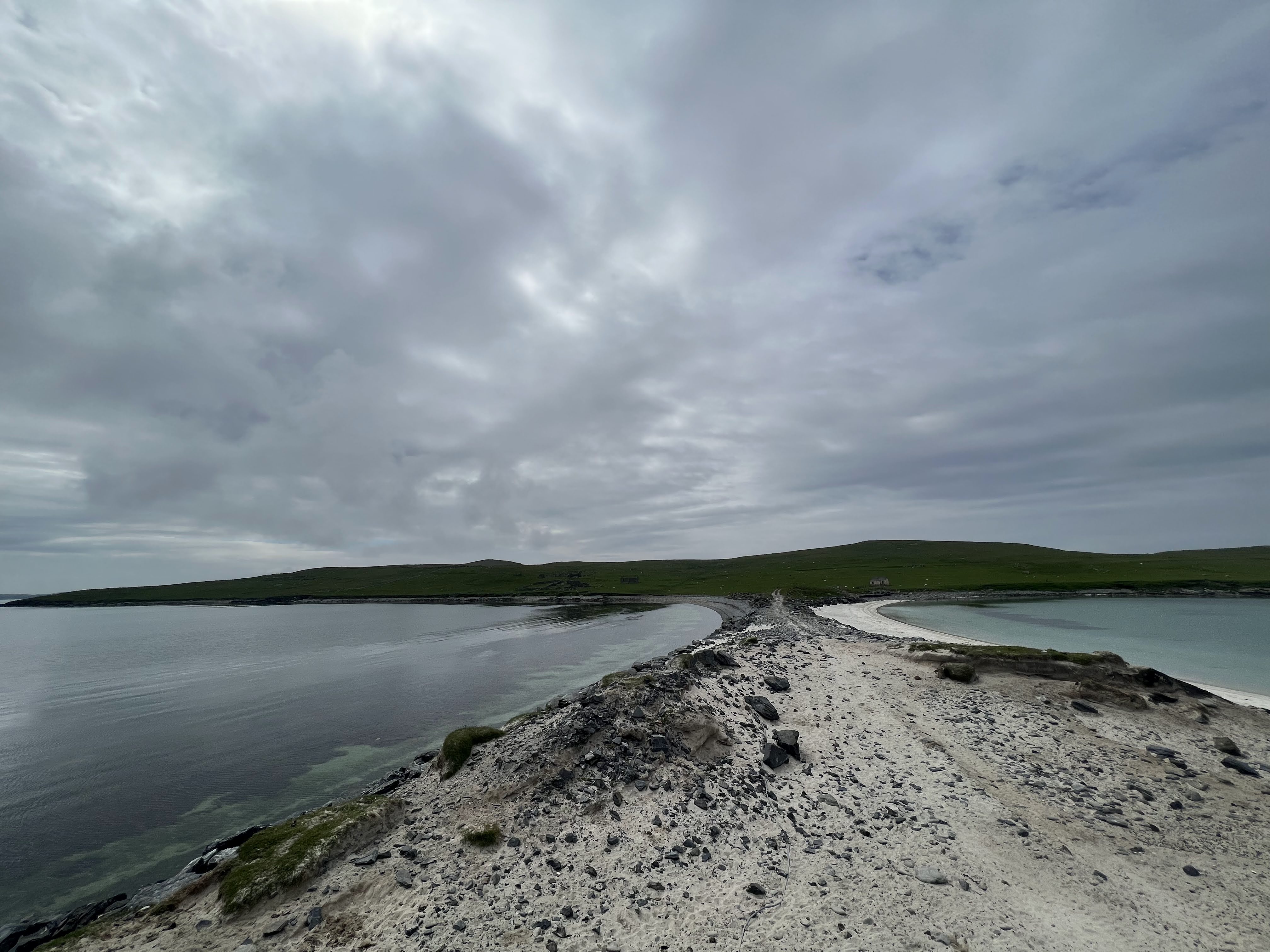 Since I was going to be in a small plane and on a small island, I felt it was responsible to test myself before departing the following morning.The road to Minn Beach and its beautiful white sand and impressive tombolo. Now you know what that is!Beautiful calm and clear North Atlantic.That sky is a drama queen.The tombolo. It looked like there was a nice walk along the south side of this little bay, but I was content to just hang out, thank you.The clouds were stacking up beautifully, my cue to head home for dinner and a good sleep before moving on to The Next Big Thing.