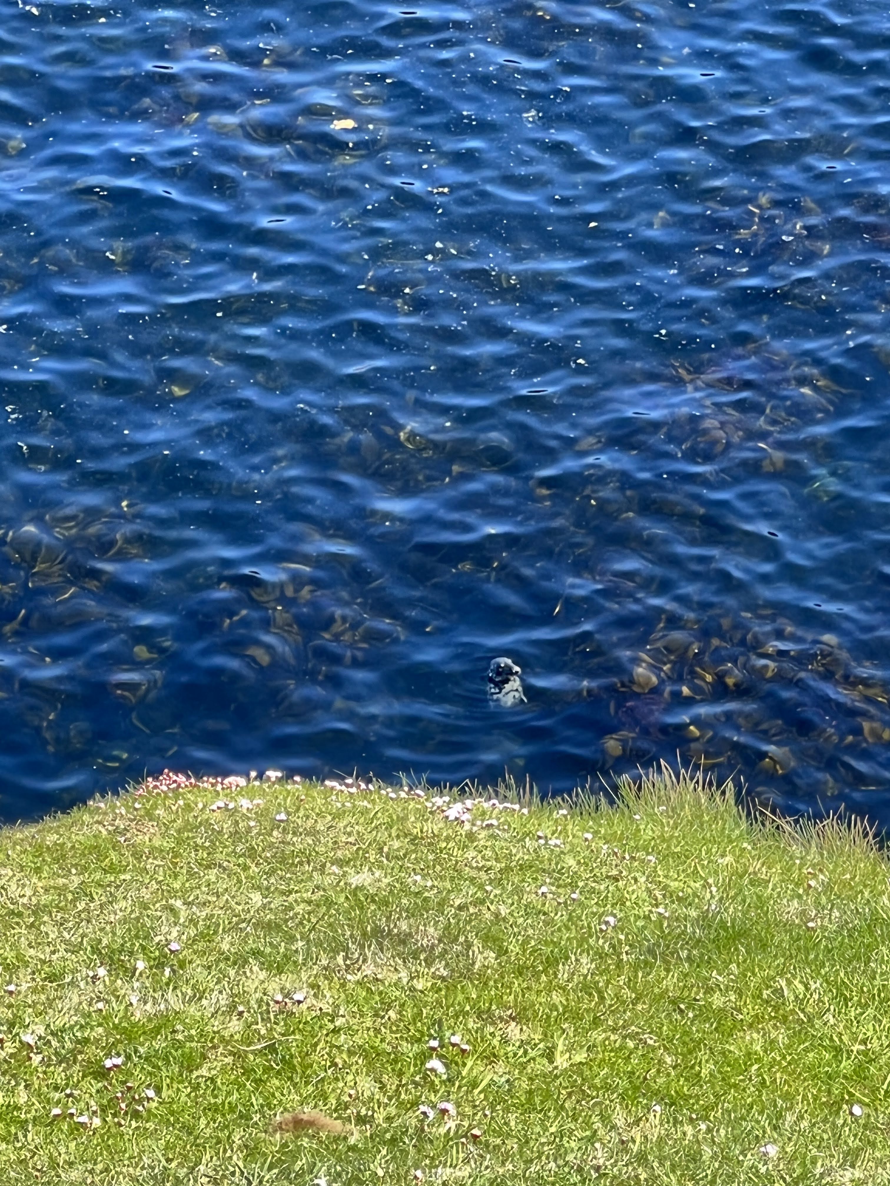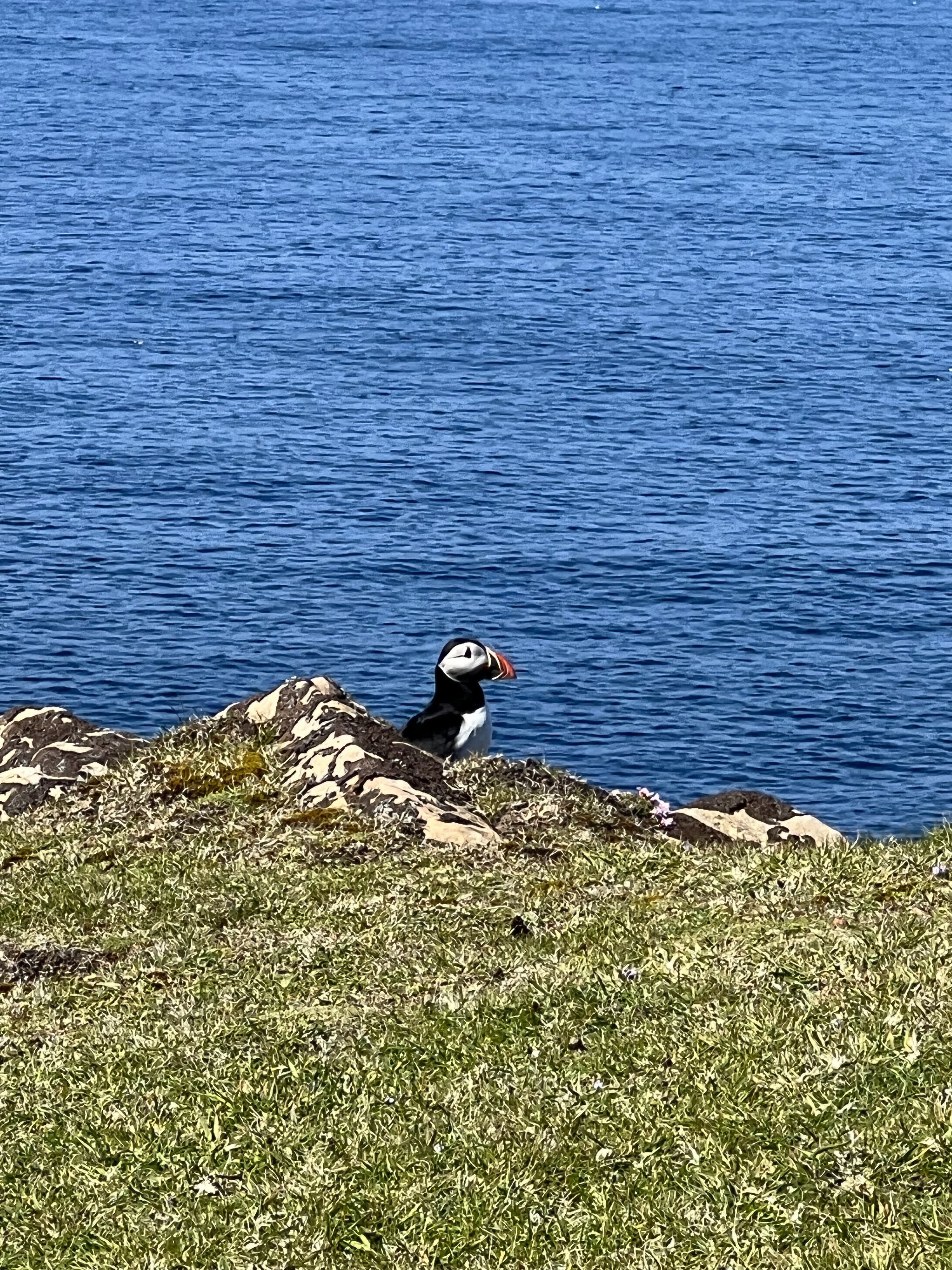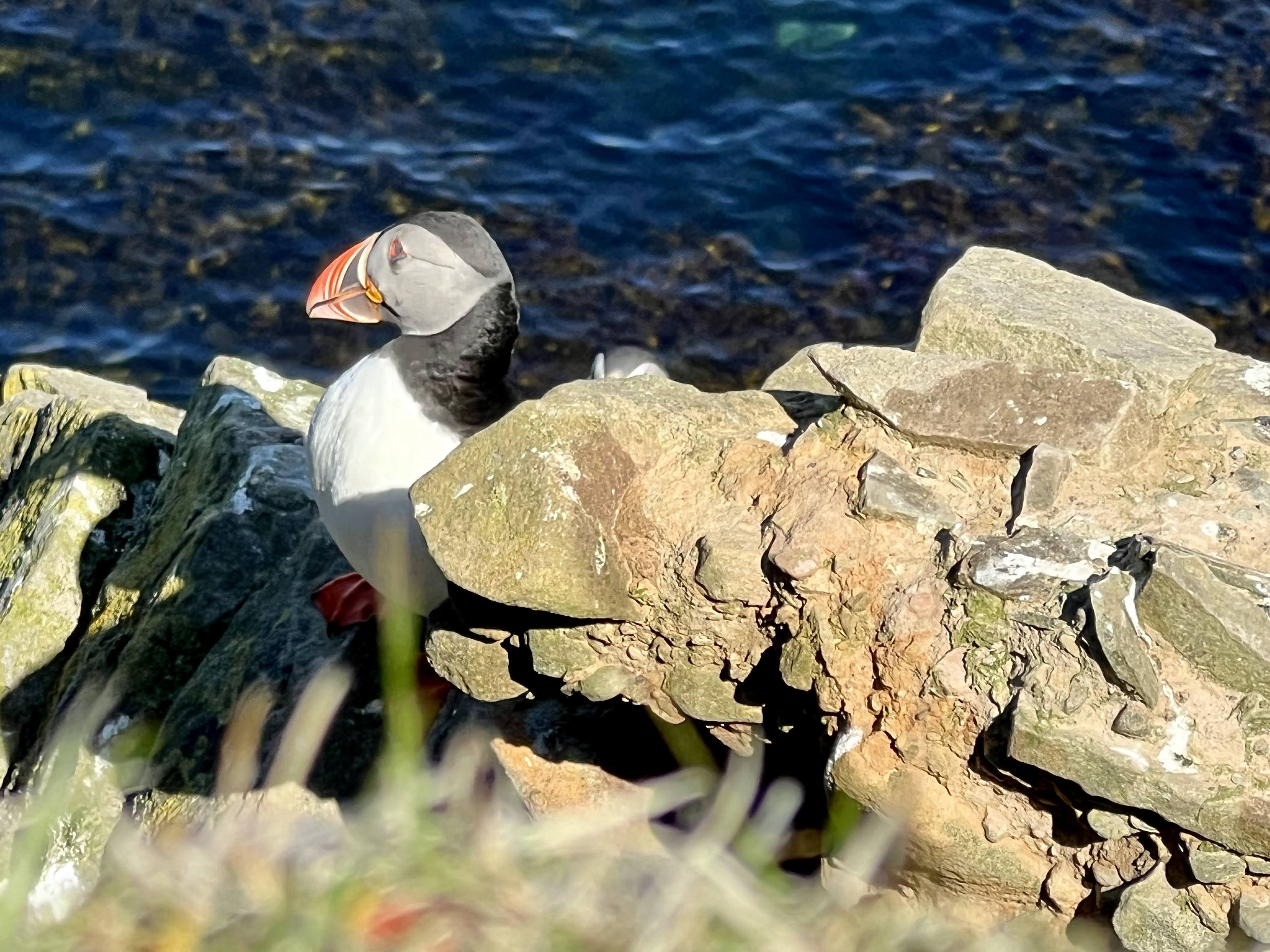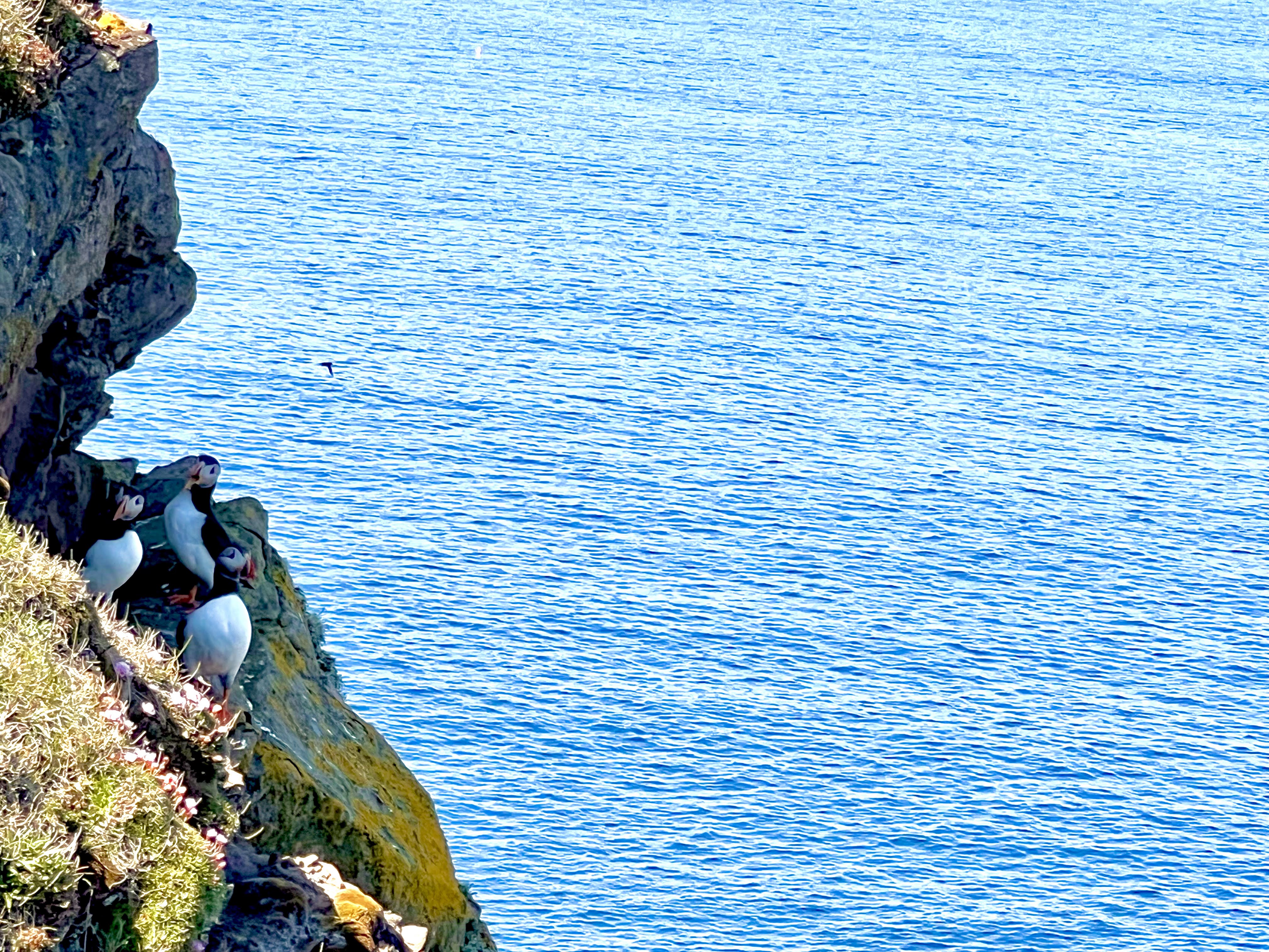 As I got closer to the edge, the world of the cliffs was revealed to me. A great colony of nesting puffins. I might say, I was SO GRATEFUL that there was little to no wind, enabling me to get right up to the edge. I think for the rest of this entry, I’ll mostly let these little guys speak for themselves.