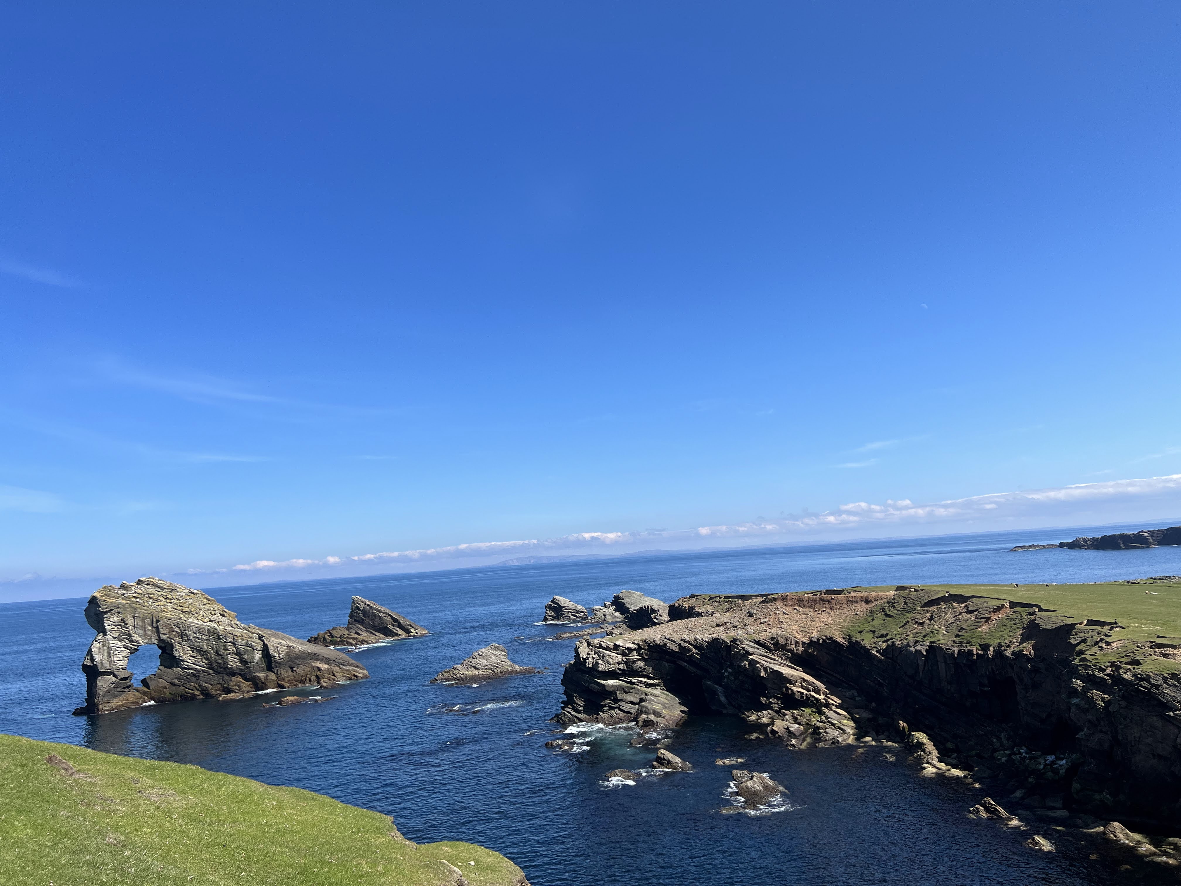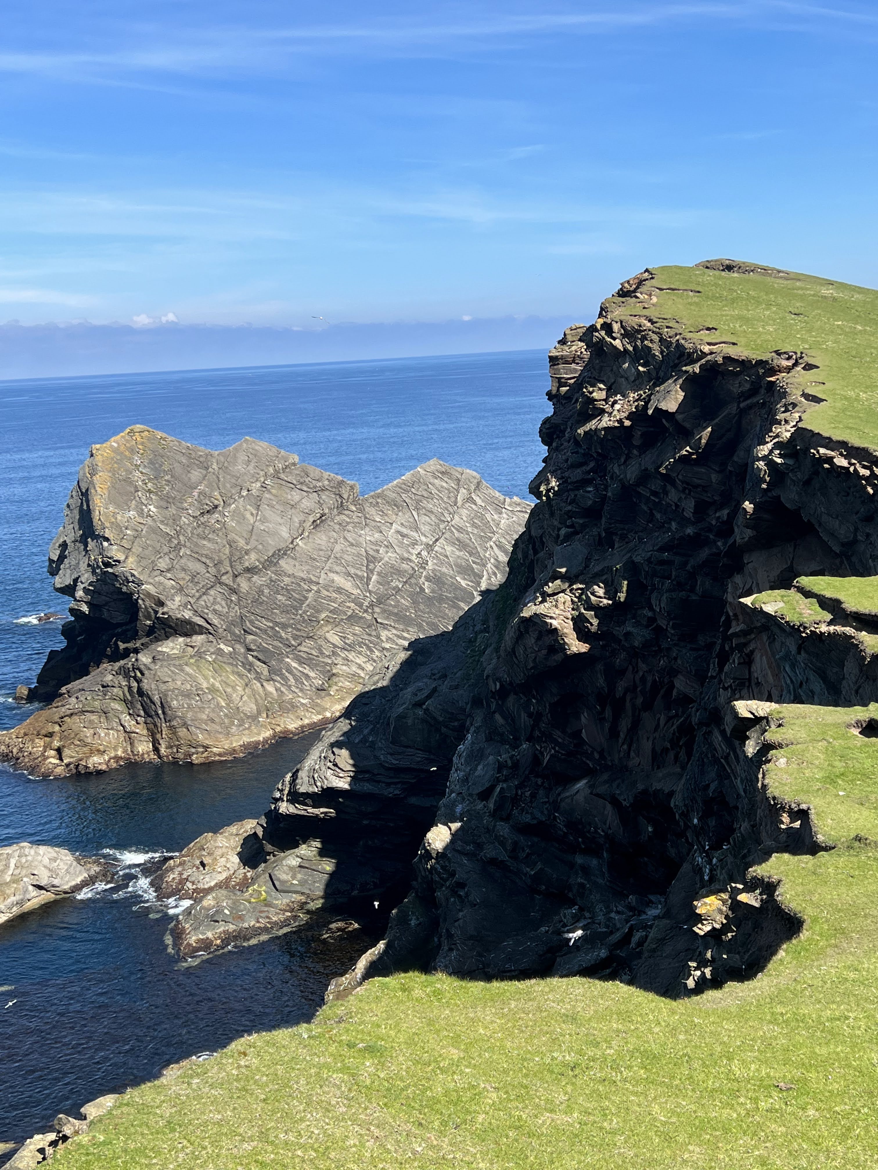 When I was making my plans for Shetland back in fall of 2021, I had a big question in my mind: Fair Isle or Foula? These two small islands were attractive in similar ways: remote, lots of birds. Fair Isle has the whole knitting thing, Foula has the really high sea cliffs. Another question was how long to spend on the islands, which would mean skipping or cutting short time in the adjacent area of the Shetland Mainland. (If Fair Isle, the Southern Mainland; if Foula, Western Mainland). Neither island had very many lodging options, so I needed to decide relatively soon.
