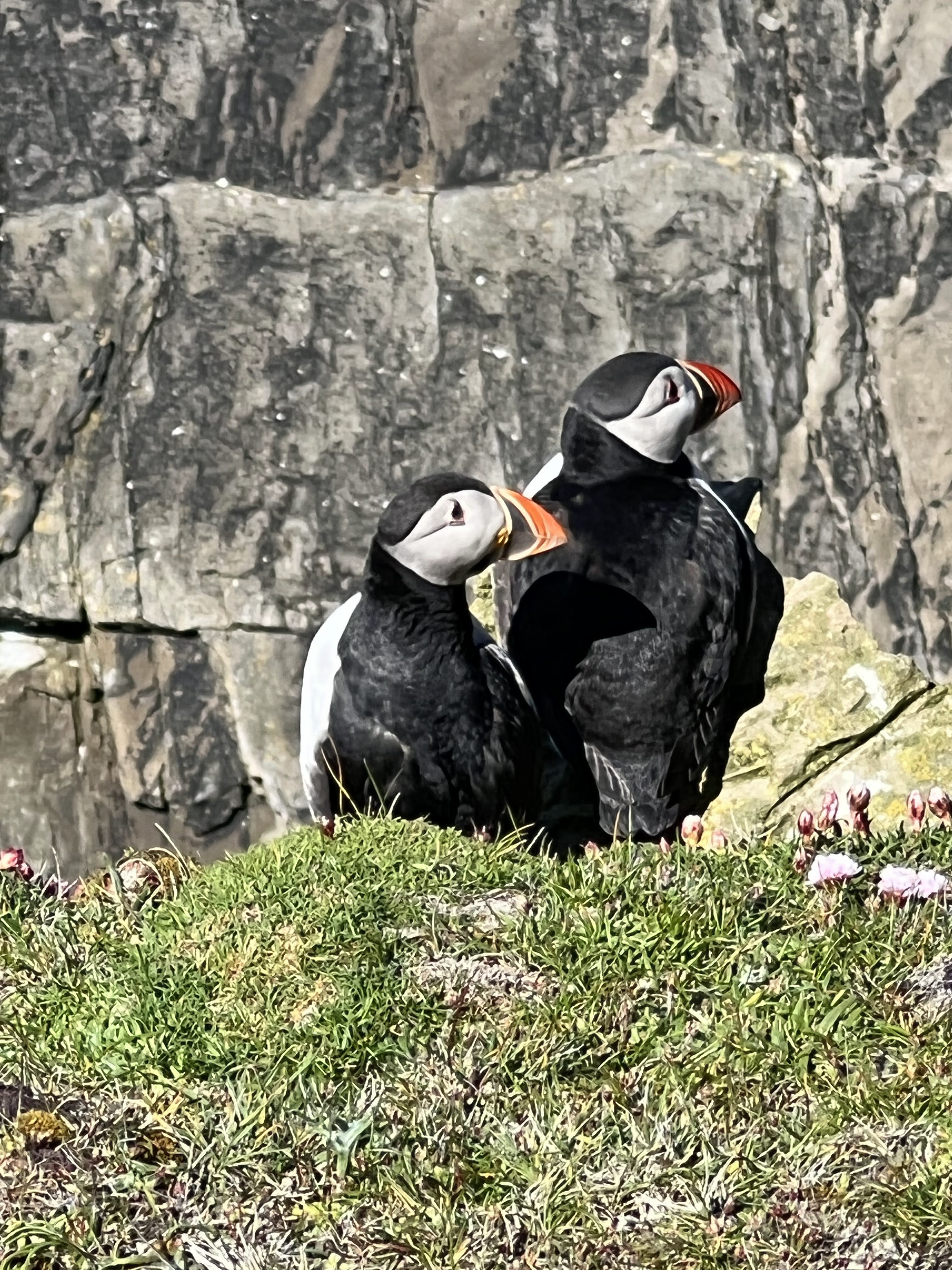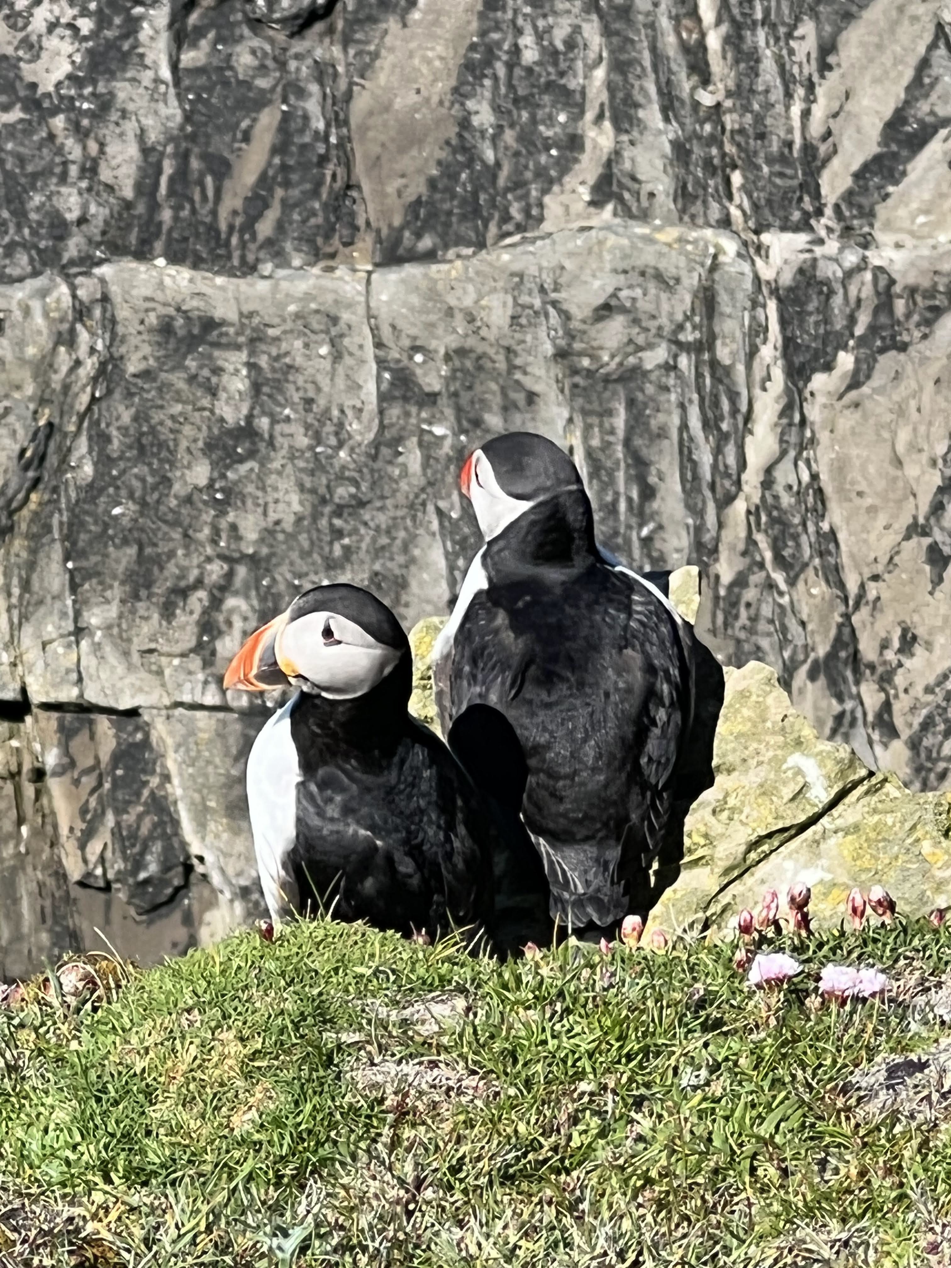 Be sure and enjoy the marvelous geology, the sea pinks, and other nesting birds (mostly fulmars)! And embiggen these photos so you can see all the super cute details.