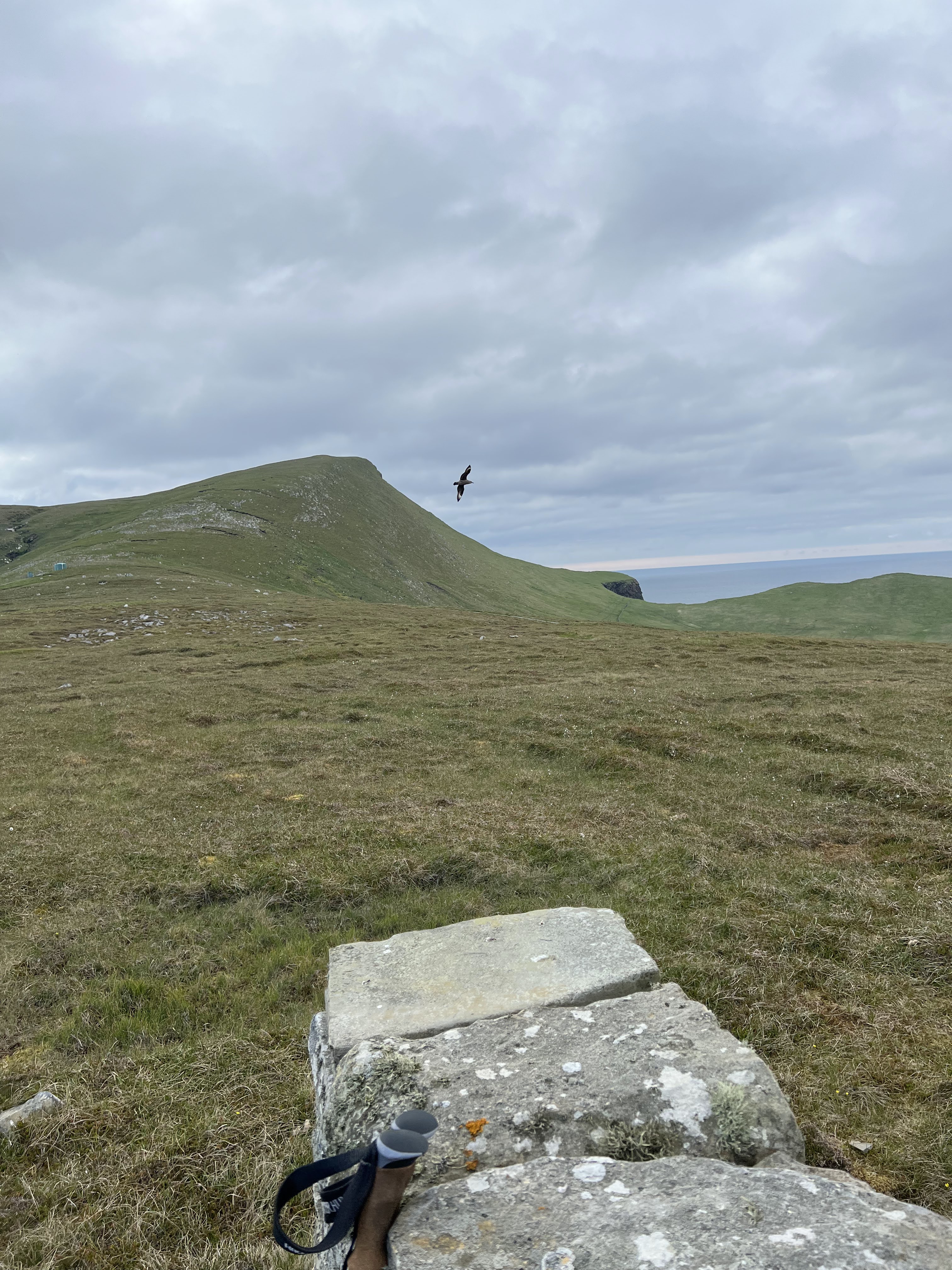 In 2018, I went to St. Kilda, off the isle of Harris in the Outer Hebrides; it is a known bonxie hangout, and it was just about this same time of year. Cristina, my Airbnb host, advised me to hold one of my walking poles above my head, to give them higher (non-flesh) target. This was *very* helpful advice.