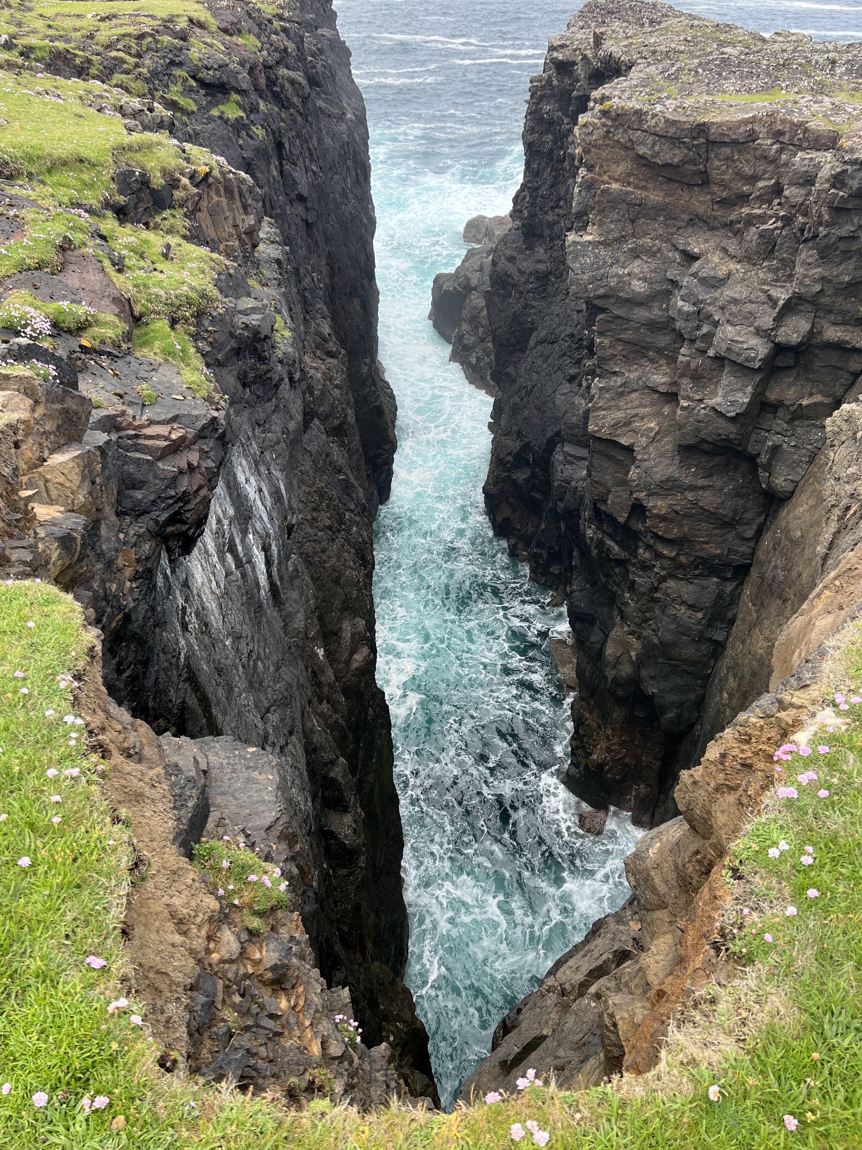 But seriously. That ocean. It’s the North Atlantic on this side of Shetland. This feature is called — The Villains of Ure. Is that not the best?