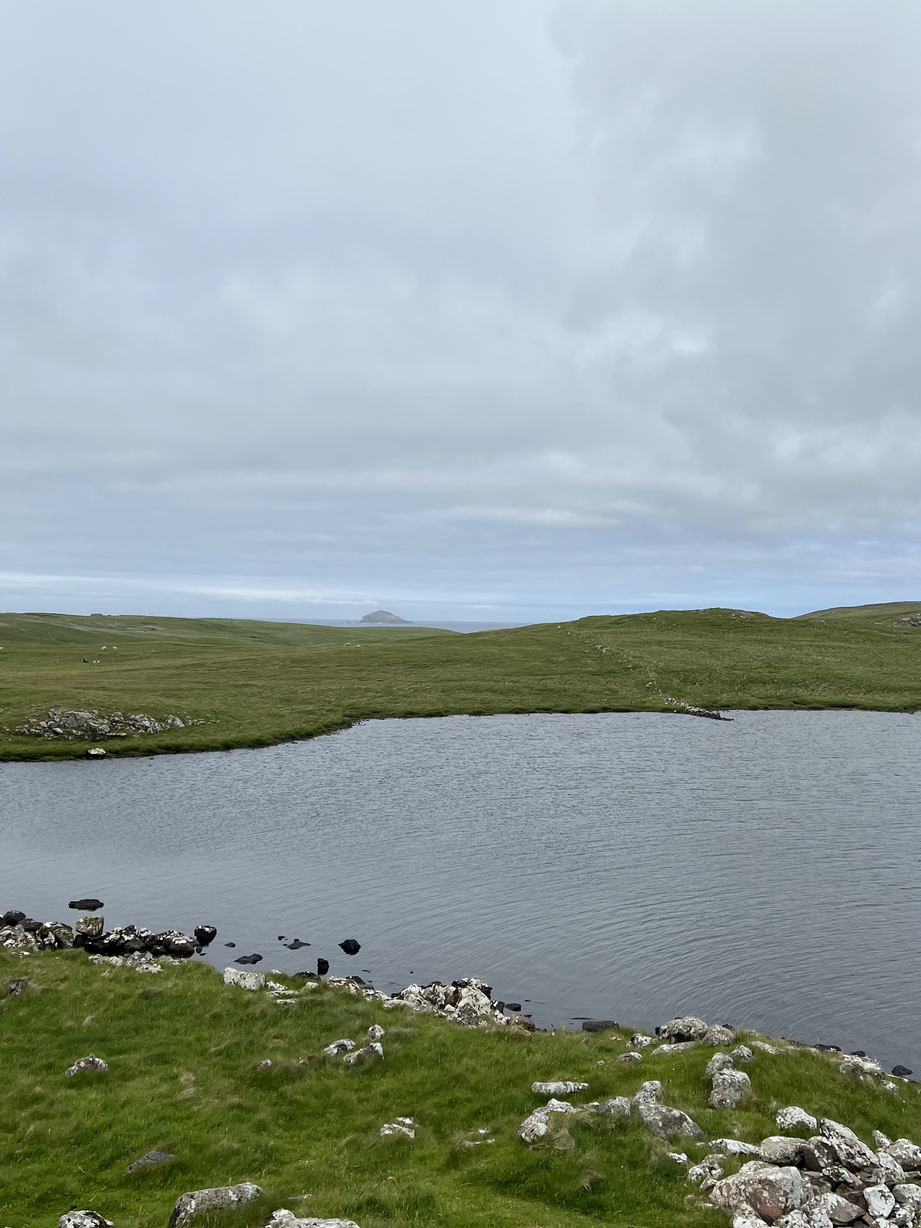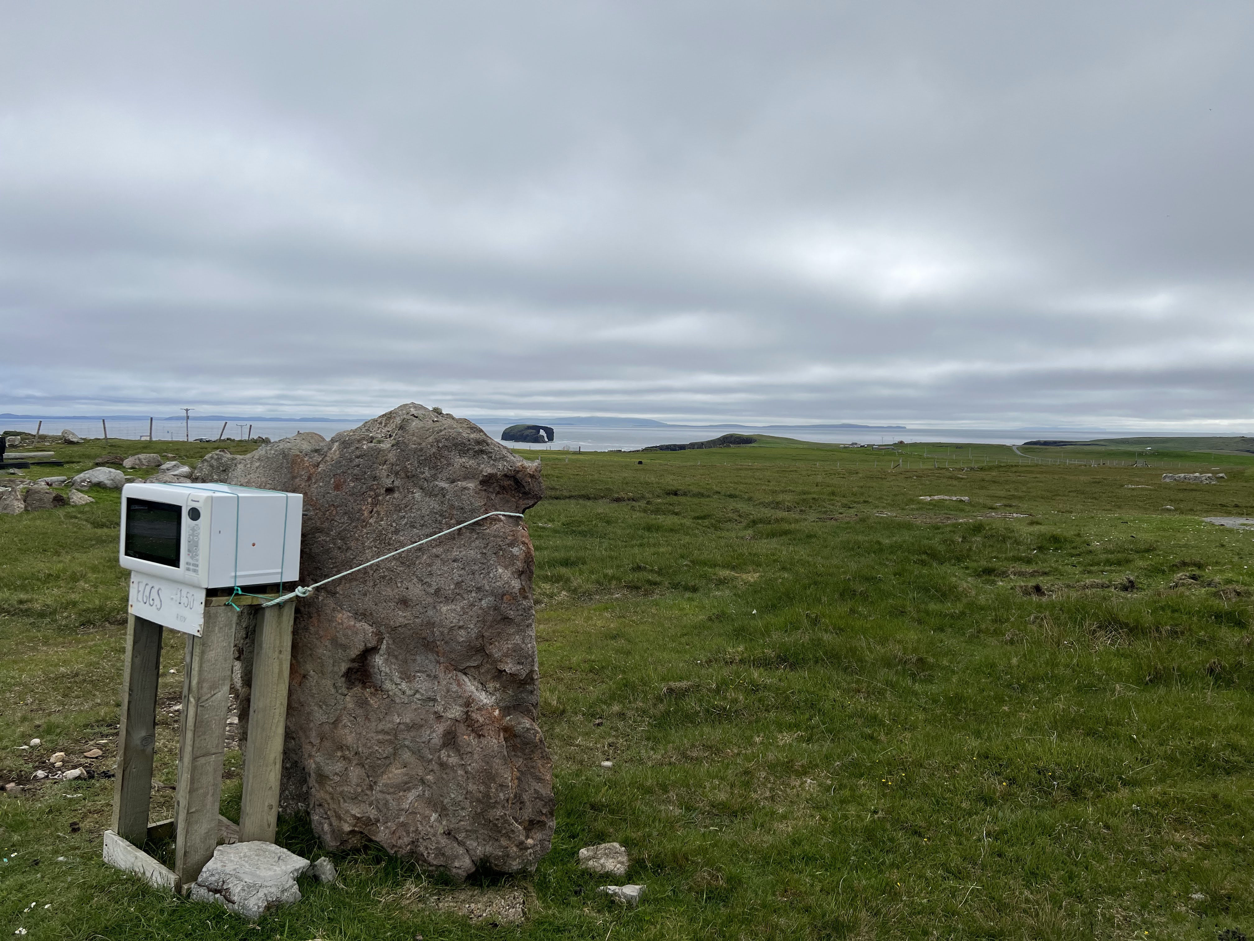 I love Shetlanders. This honesty box is the best, roped to a standing stone! Dore Holm in the background.