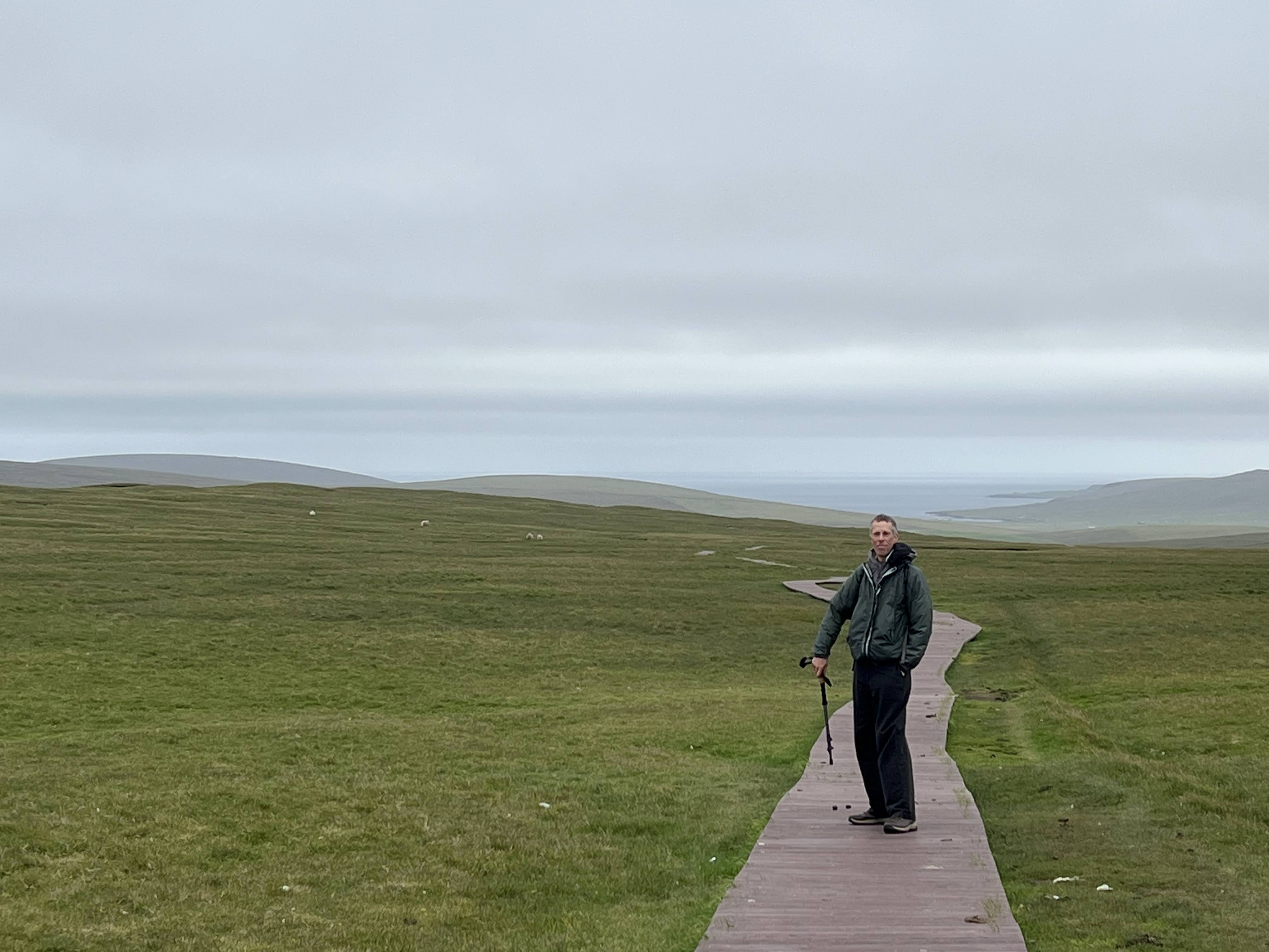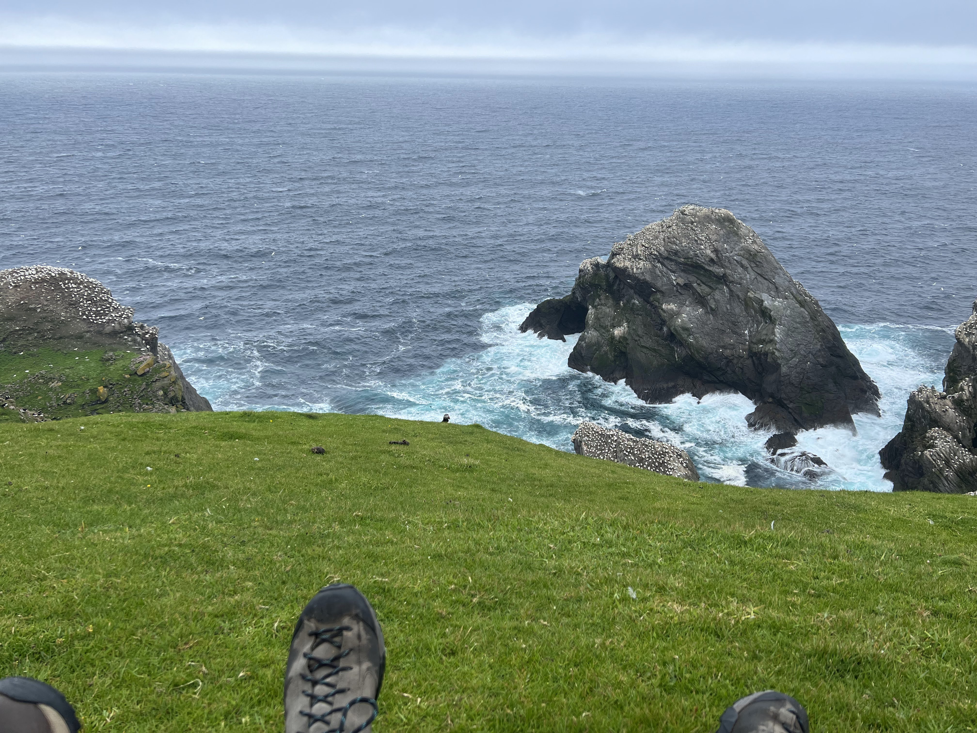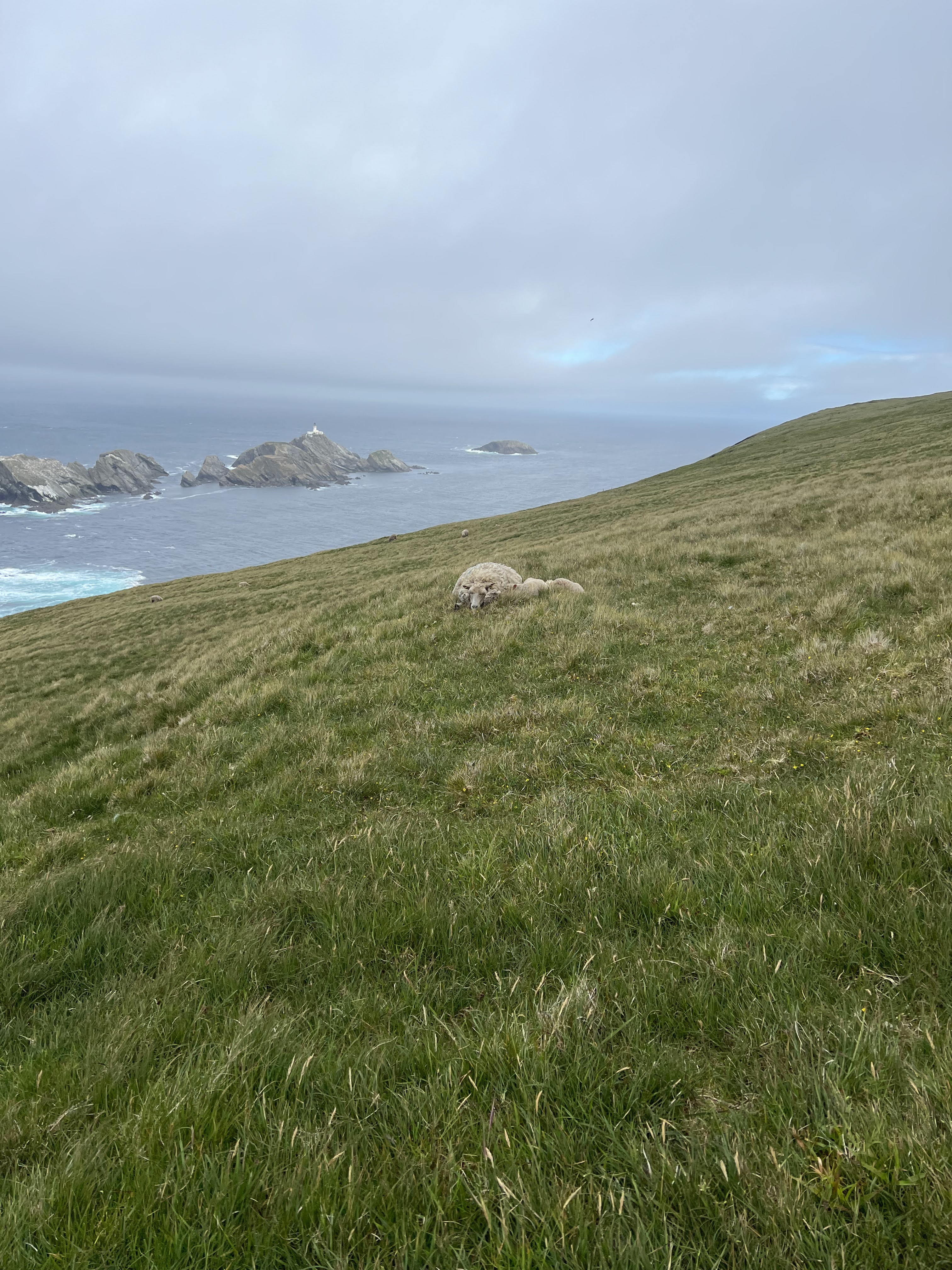It’s always a little alarming to see the sheep and lambs so close to the cliff’s edge. But dis little one was being pretty cute!The water. The cliffs. All of it, just stunning.With his bonxie stick!Yep. Uh huh. This happened, too!
