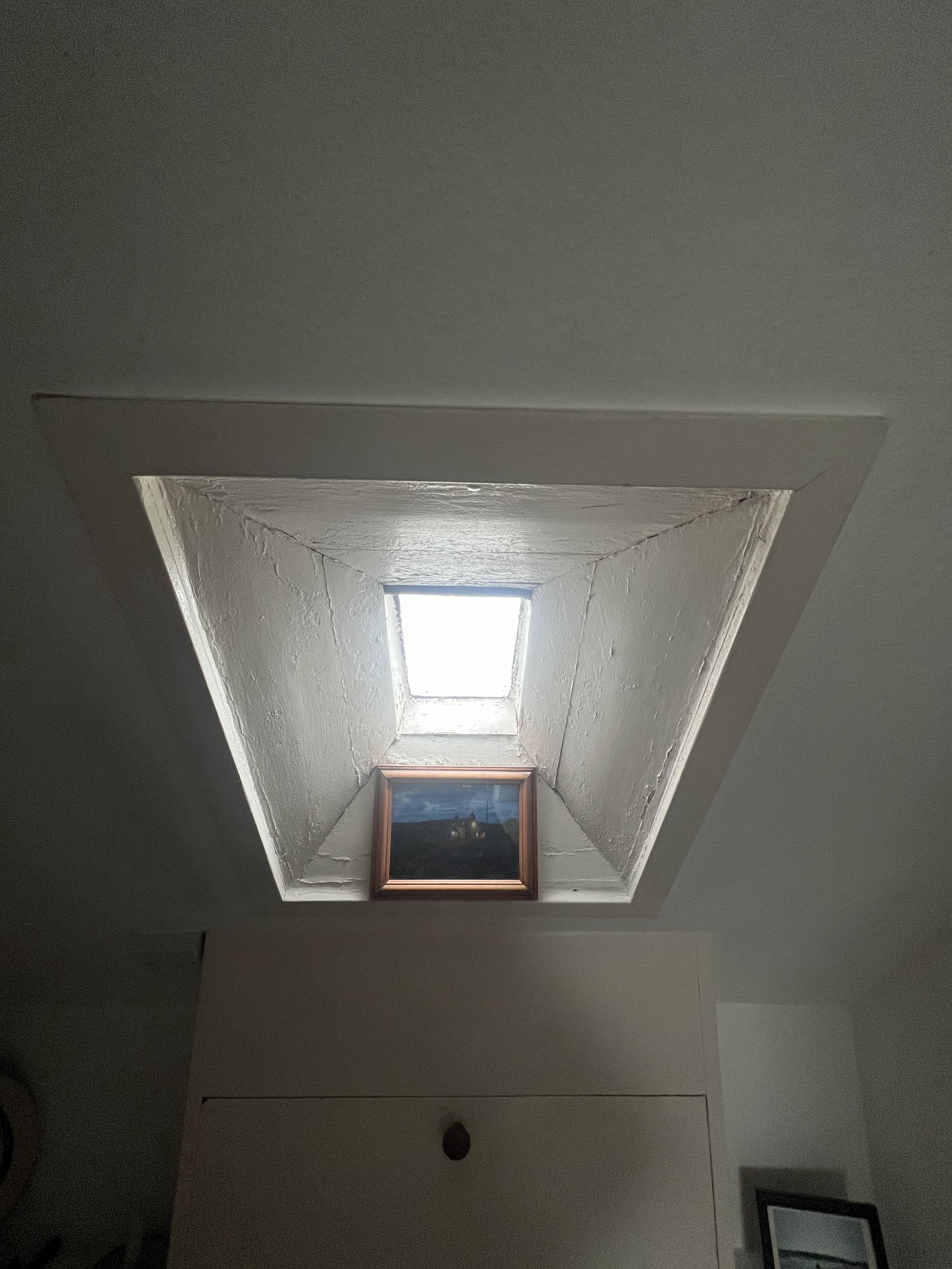 Starting off, though, with some more photos of our croft house in Unst. I visited one other renovated croft house on the island, and it had almost exactly the same layout. This window at the top of the stairs gives you an idea of how thick the walls are. About two feet.