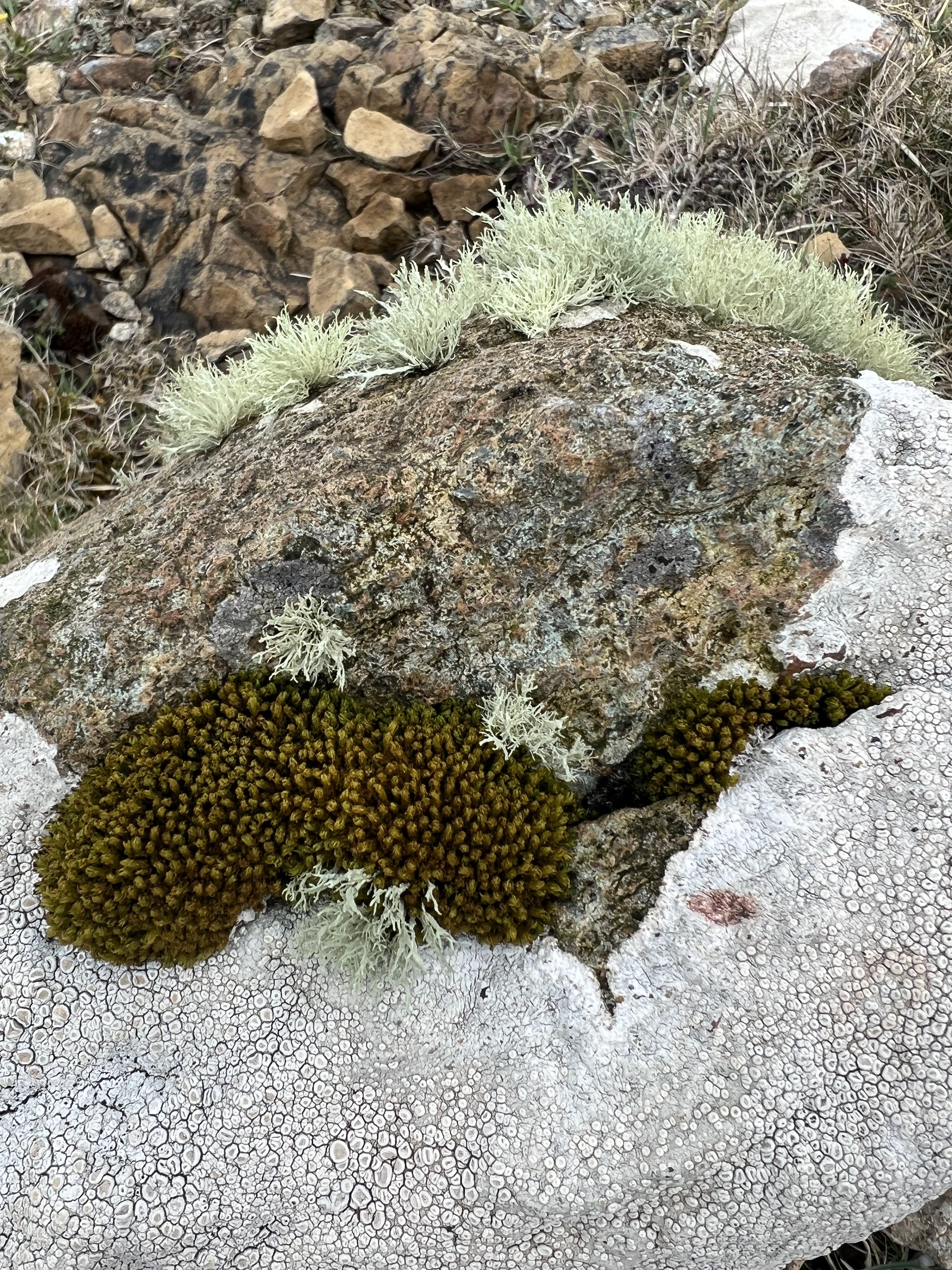 Our first stop of the day was the Keen of Hamar, just a few miles from our house. It is a very peculiar area, a sweep of serpentine rock the likes of which is not found in many places on earth. It looks blasted, but it is not: there are many varieties of wildflowers and grasses that grow there, and they are pretty hardy! And tiny and beautiful. The following photos are concentrating on the flora, but also the amazing geology of the serpentine rocks. They look nothing like anything else I’ve ever seen. And I just kept shooting them! Embiggen to see the color and details.