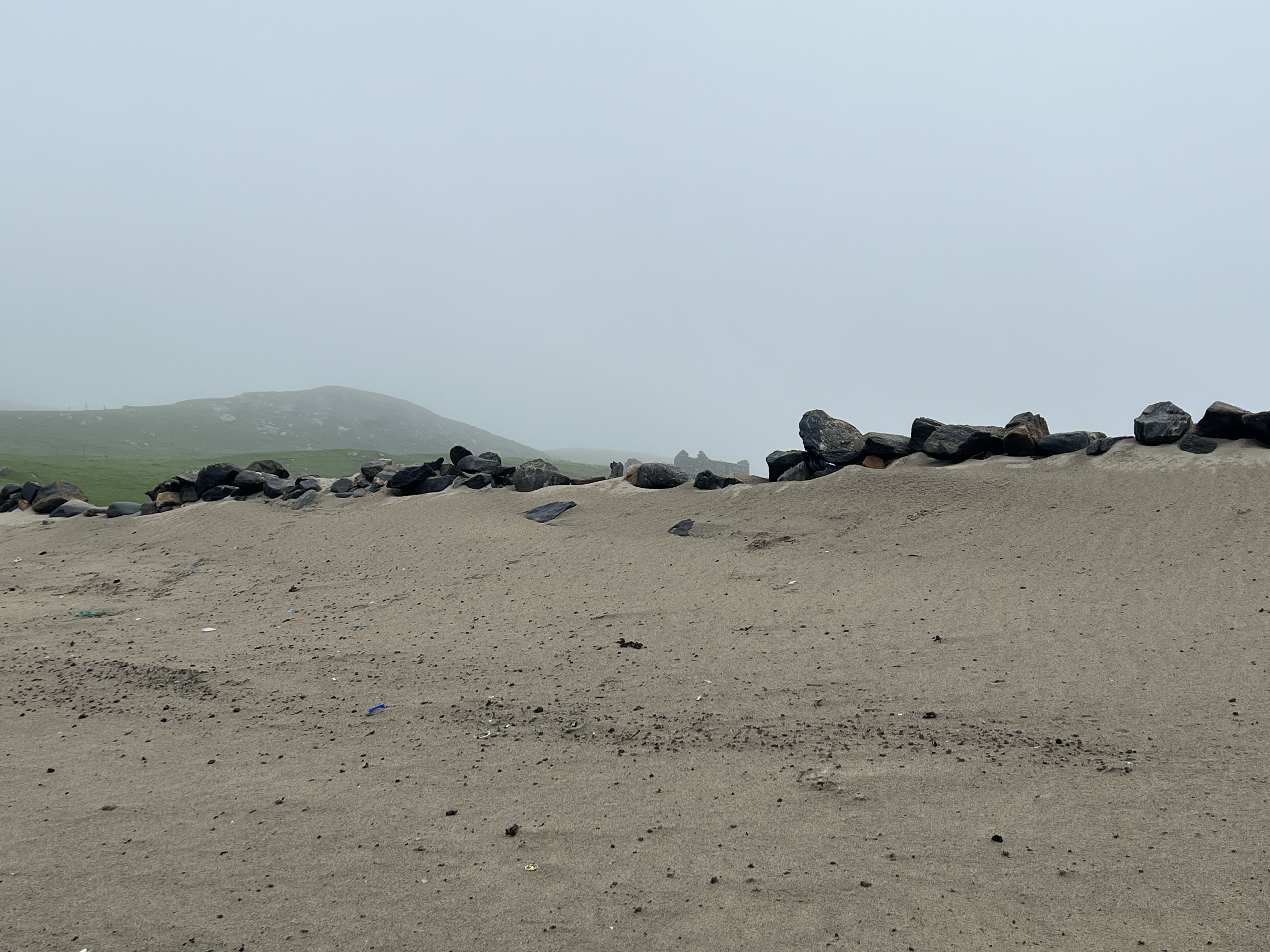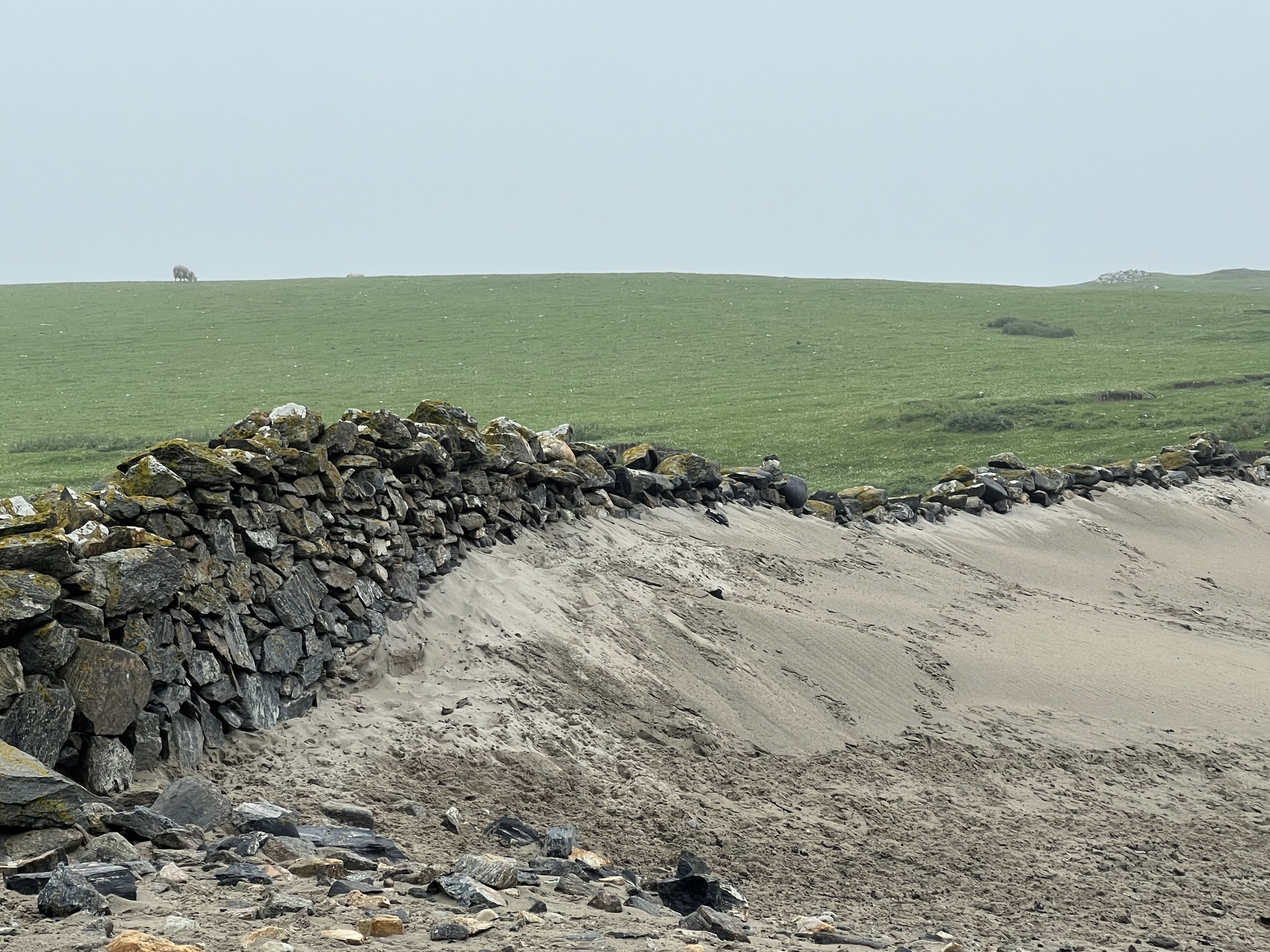 I suppose the wall may have originally been a boundary of a field that got encroached upon by the sea. Like this whole area, it felt old, and it was unclear what its purpose was. There was a great deal of Viking activity here (brochs and longhouses nearby), but it’s doubtful the wall was *that* old.