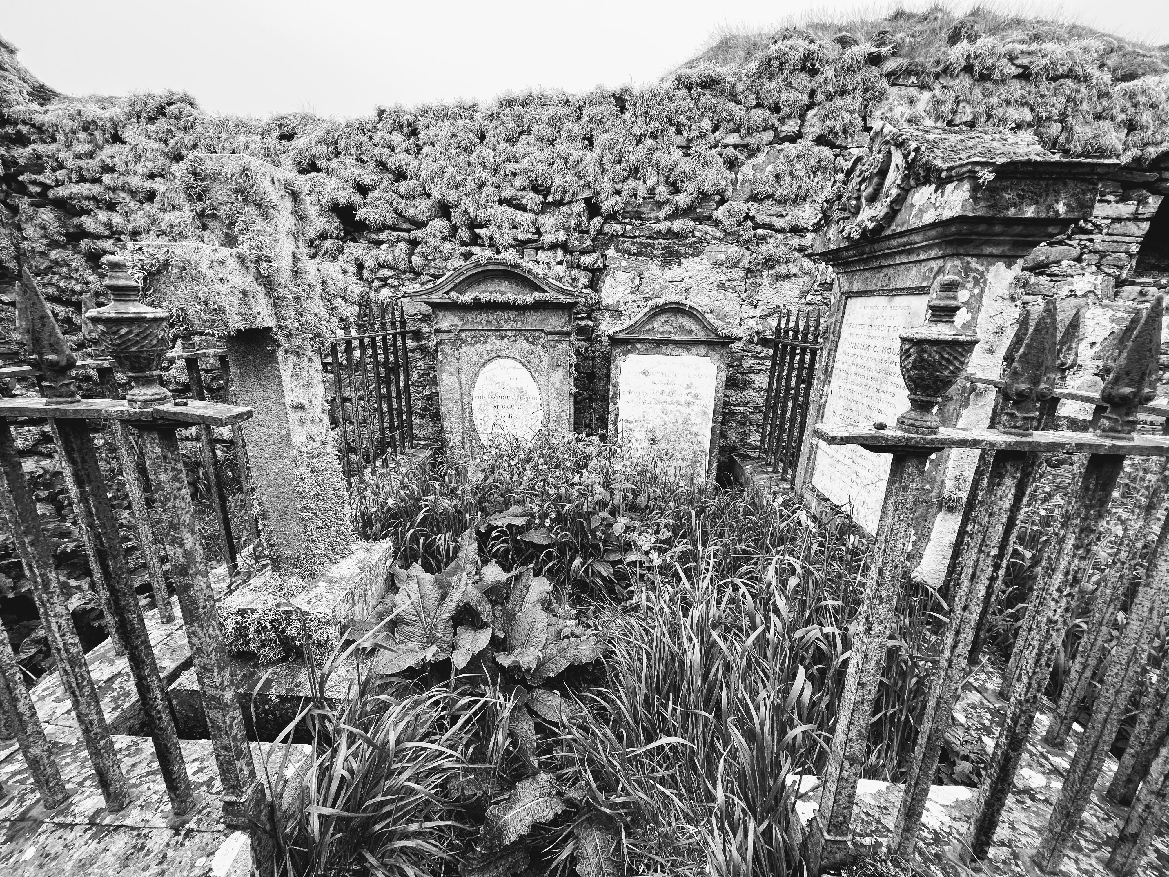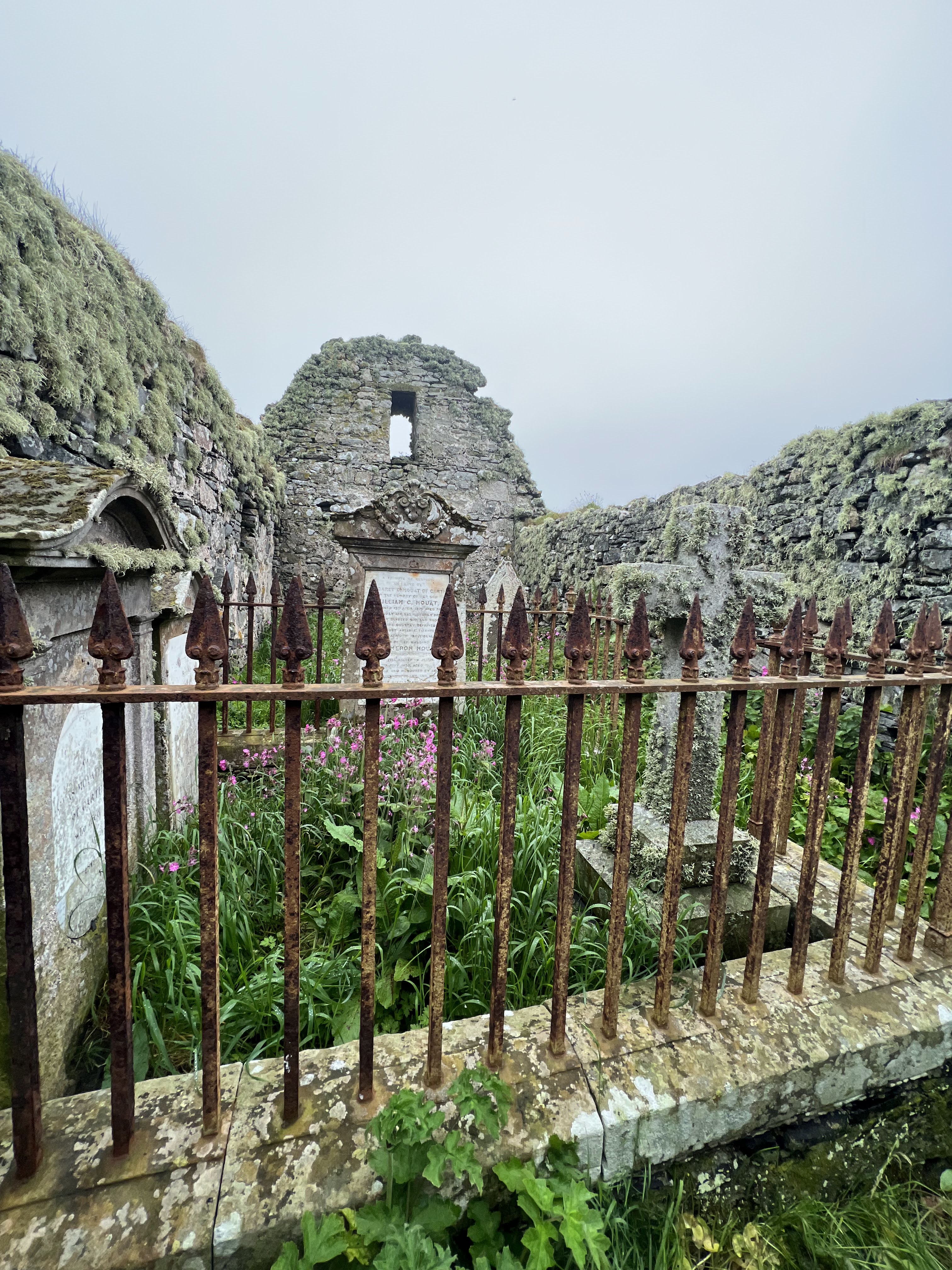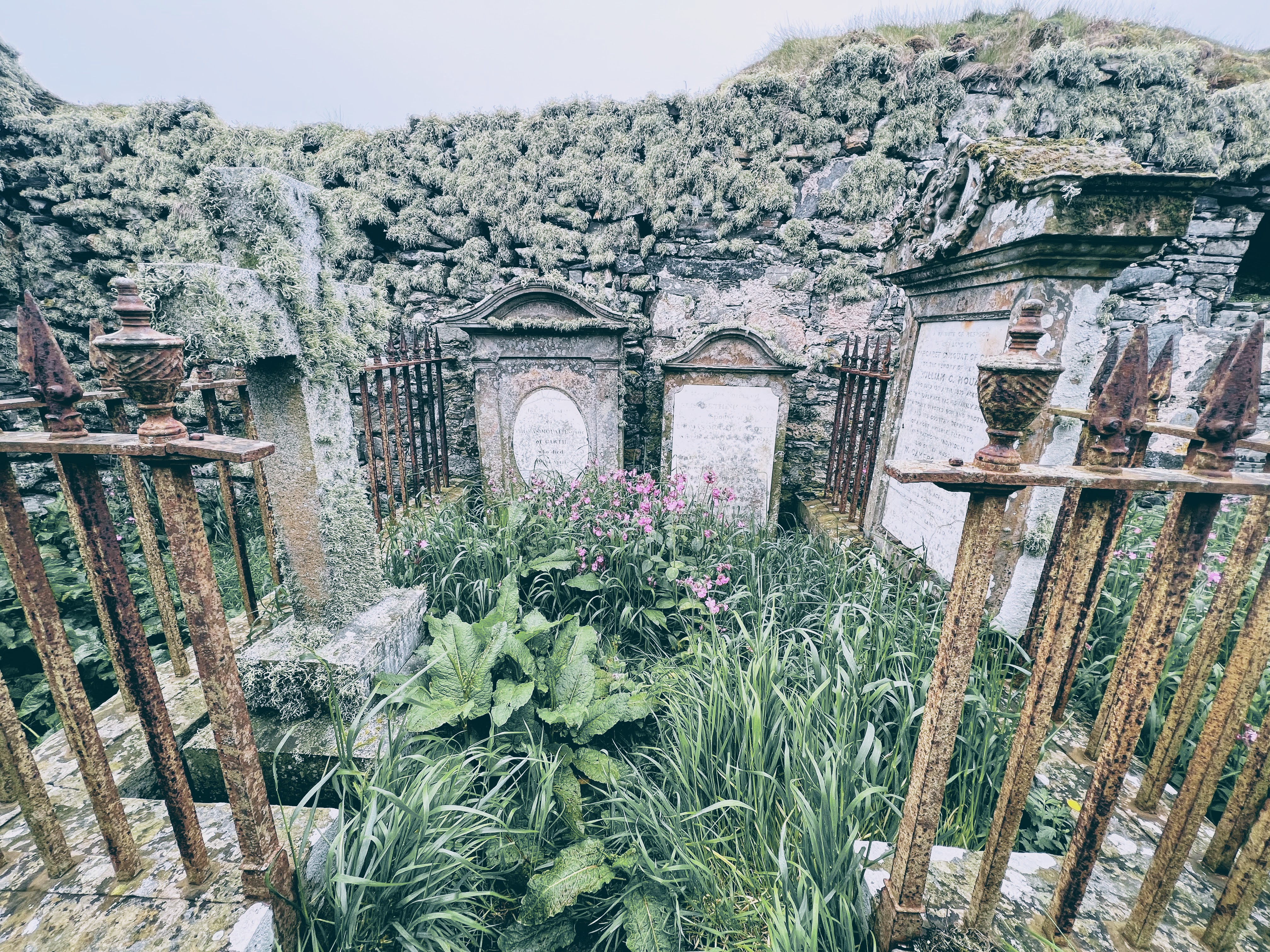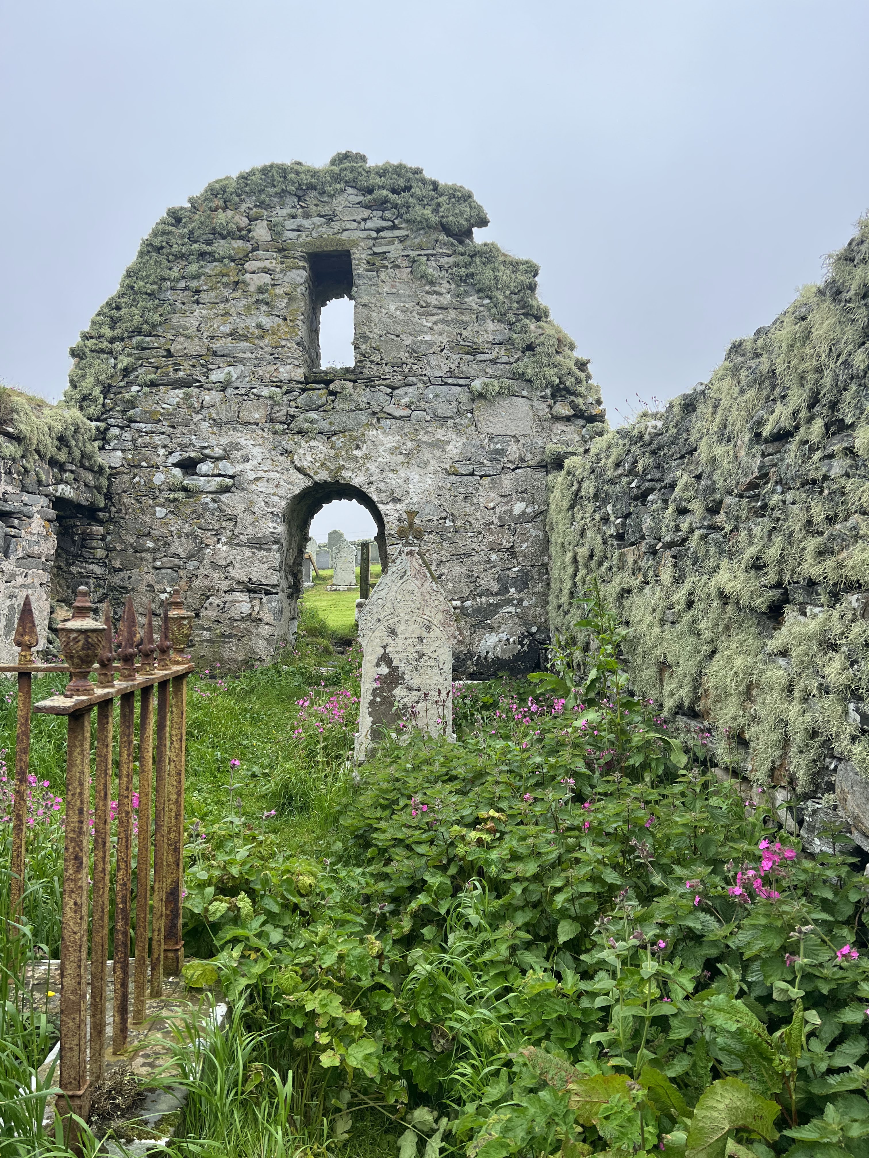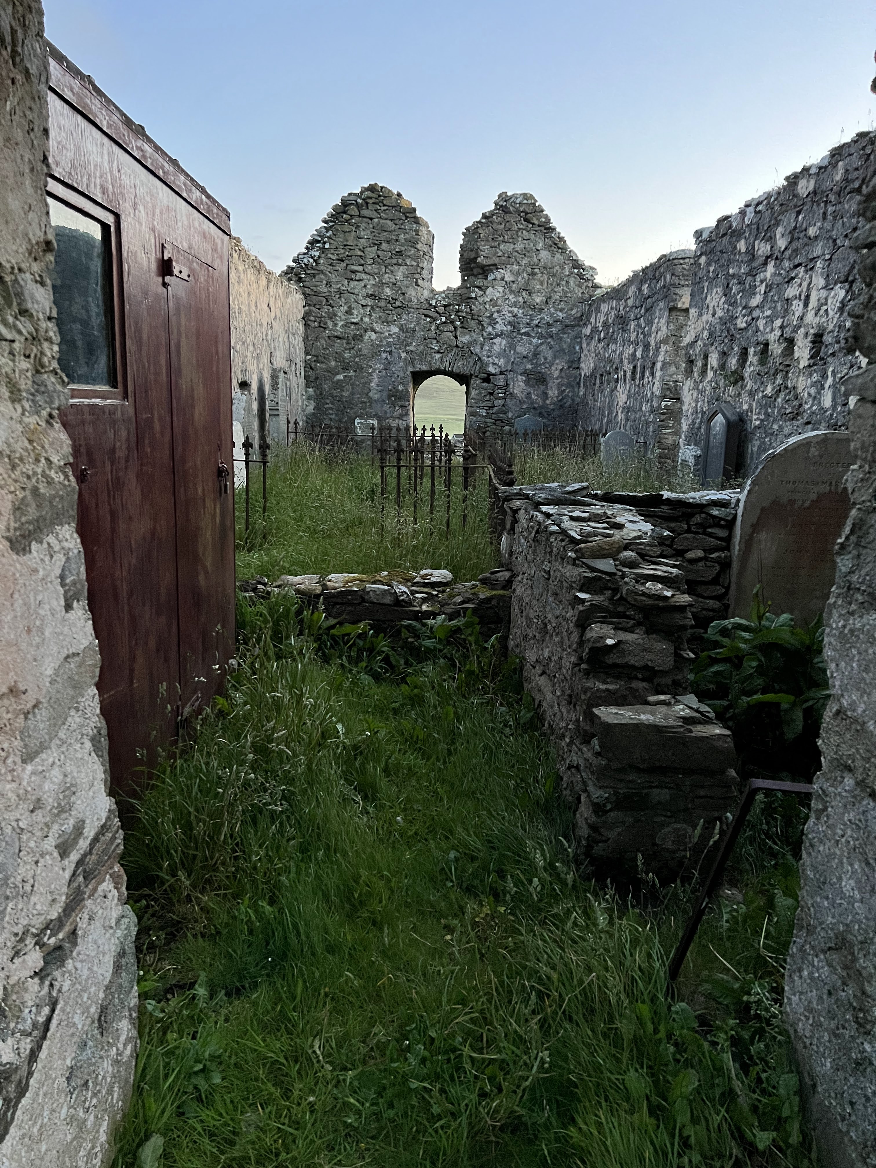 Following are a bunch of photos inside the kirk proper, some of the most lovely ruins I’ve ever seen, made more lovely by the soft overcast lighting and the wild flowers. The kirk dates from the 12th century, but is on a much older foundation, and was likely built for the nearby Viking settlement. Here’s some more info.