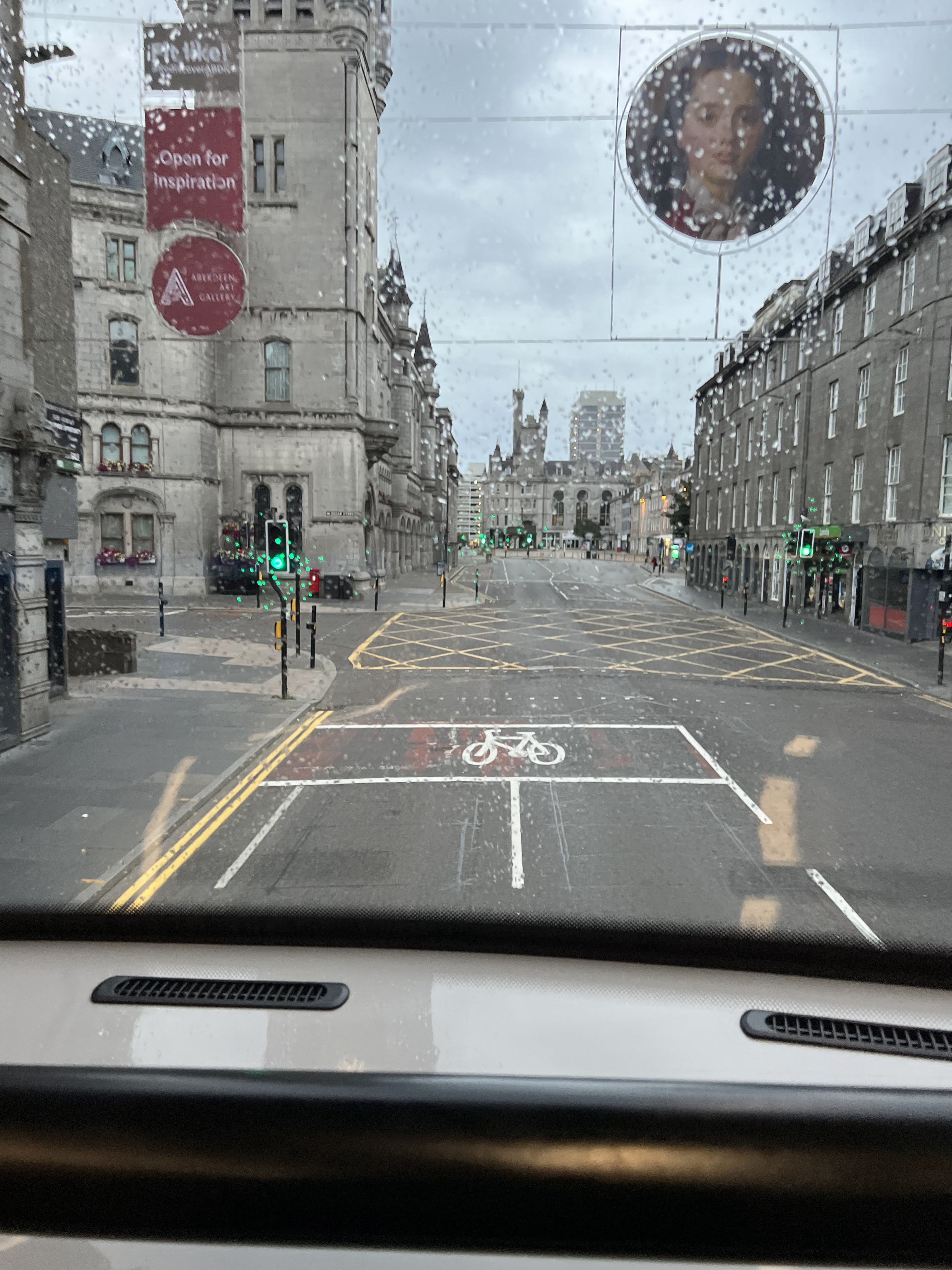 We had a VERY early start to our day, up before 4 AM (yes, it was already firmly light outside) to catch a 6:45 AM flight to Norwich. We had the front of the upper deck to ourselves, and it was jolly lovely to sightsee a little of Aberdeen on the way out of town to the airport.