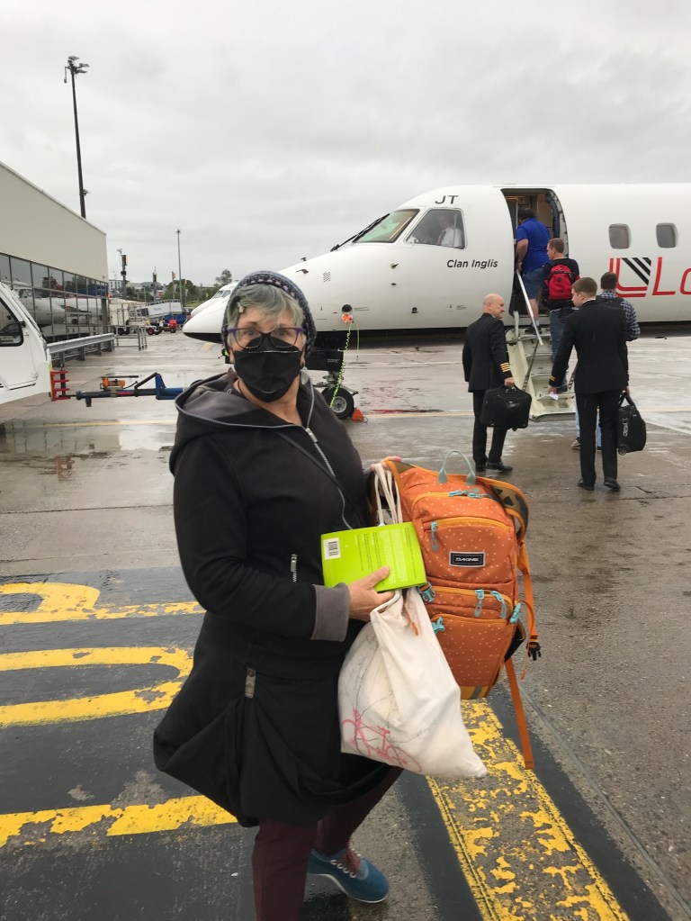 Rain in, rain out.Crossing the tarmac to our LoganAir flight.
