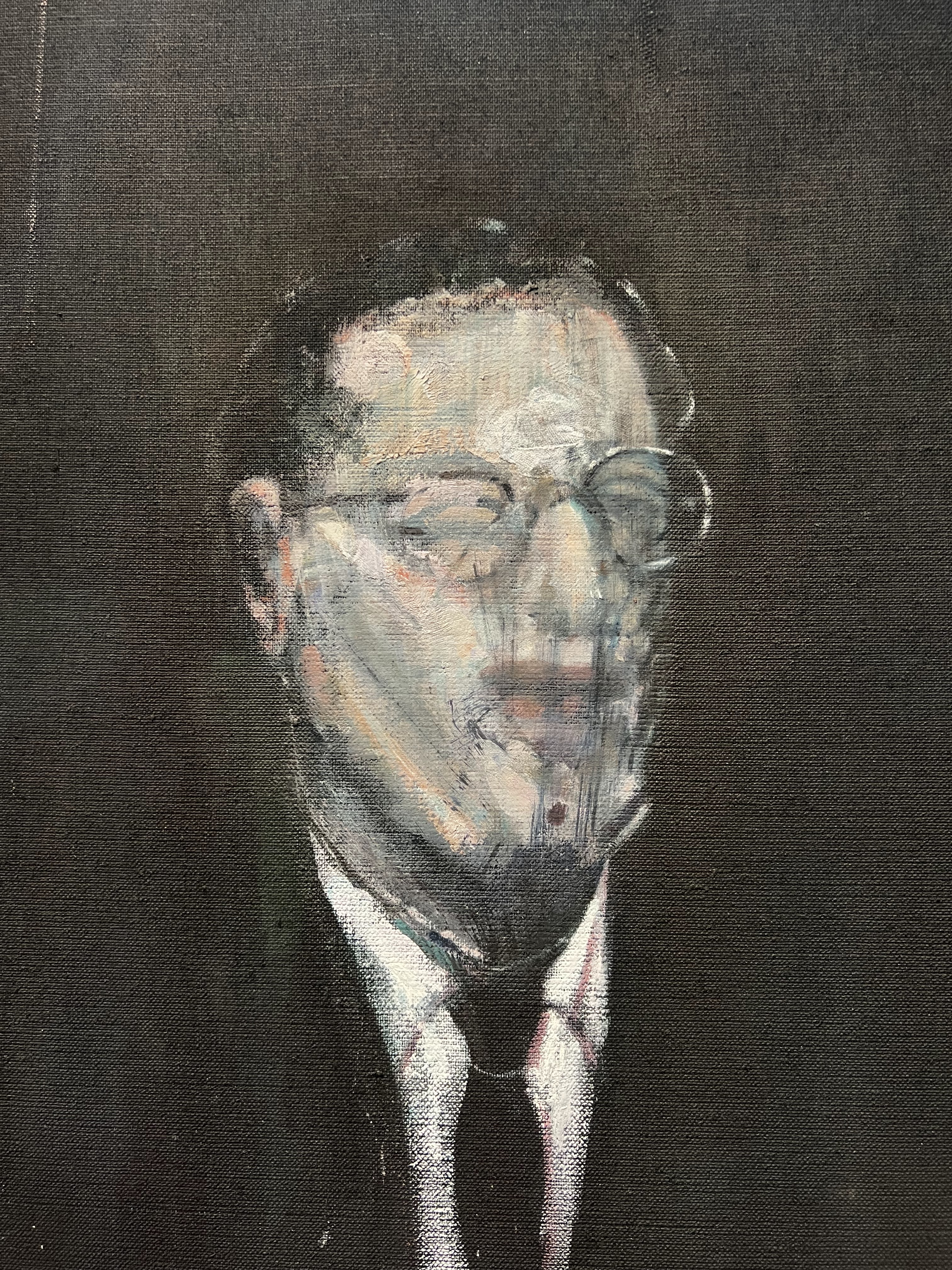 Christine and Josianne picked us up at the airport, and we headed to the Sainsbury Center, a really exceptional collection of all manner of art through the ages, from nifty little fertility goddesses, to contemporary painting and sculpture, and beyond. I enjoyed the collection of Francis Bacon portraits, which follow. I believe that Midjourney fashions most of its AI creations on Bacon’s style.