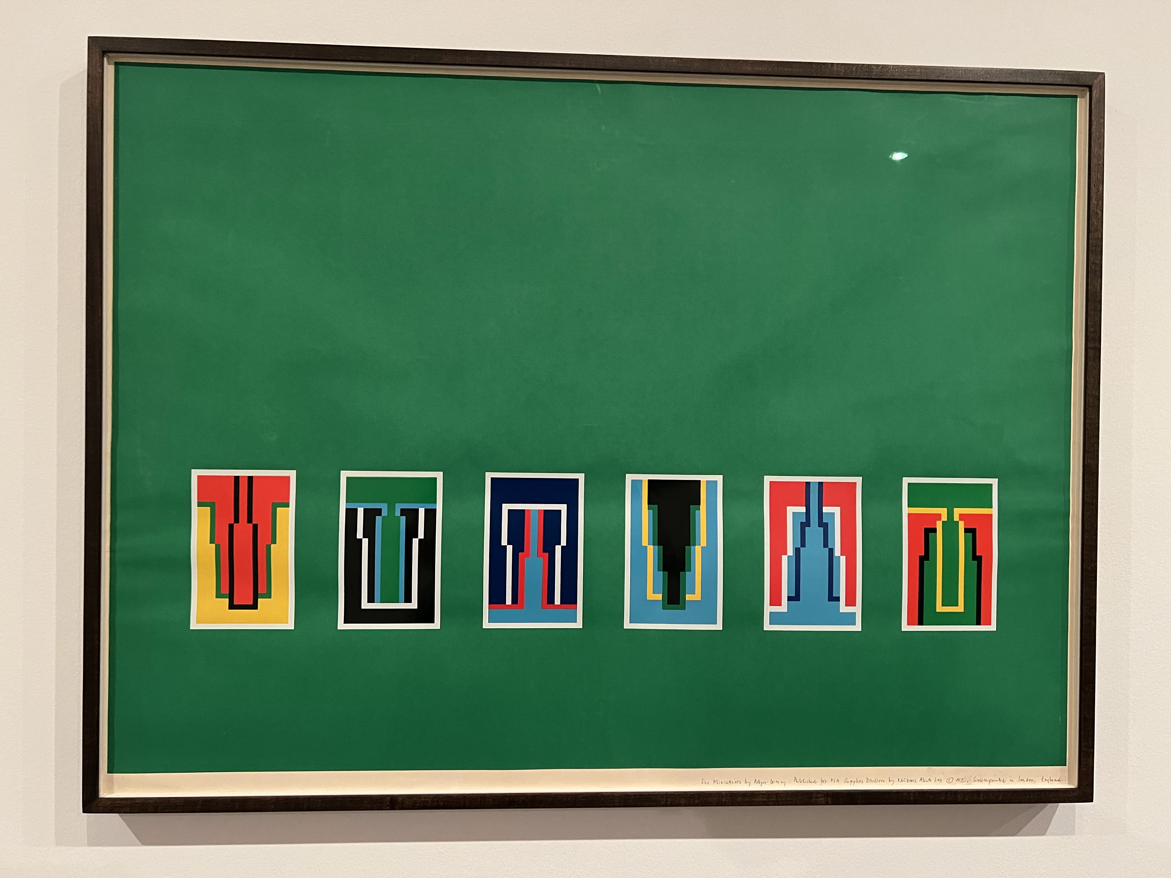 The following are geometric abstracts, from the exhibit “Rhythm and Geometry.” Sorry, no artists’ info.