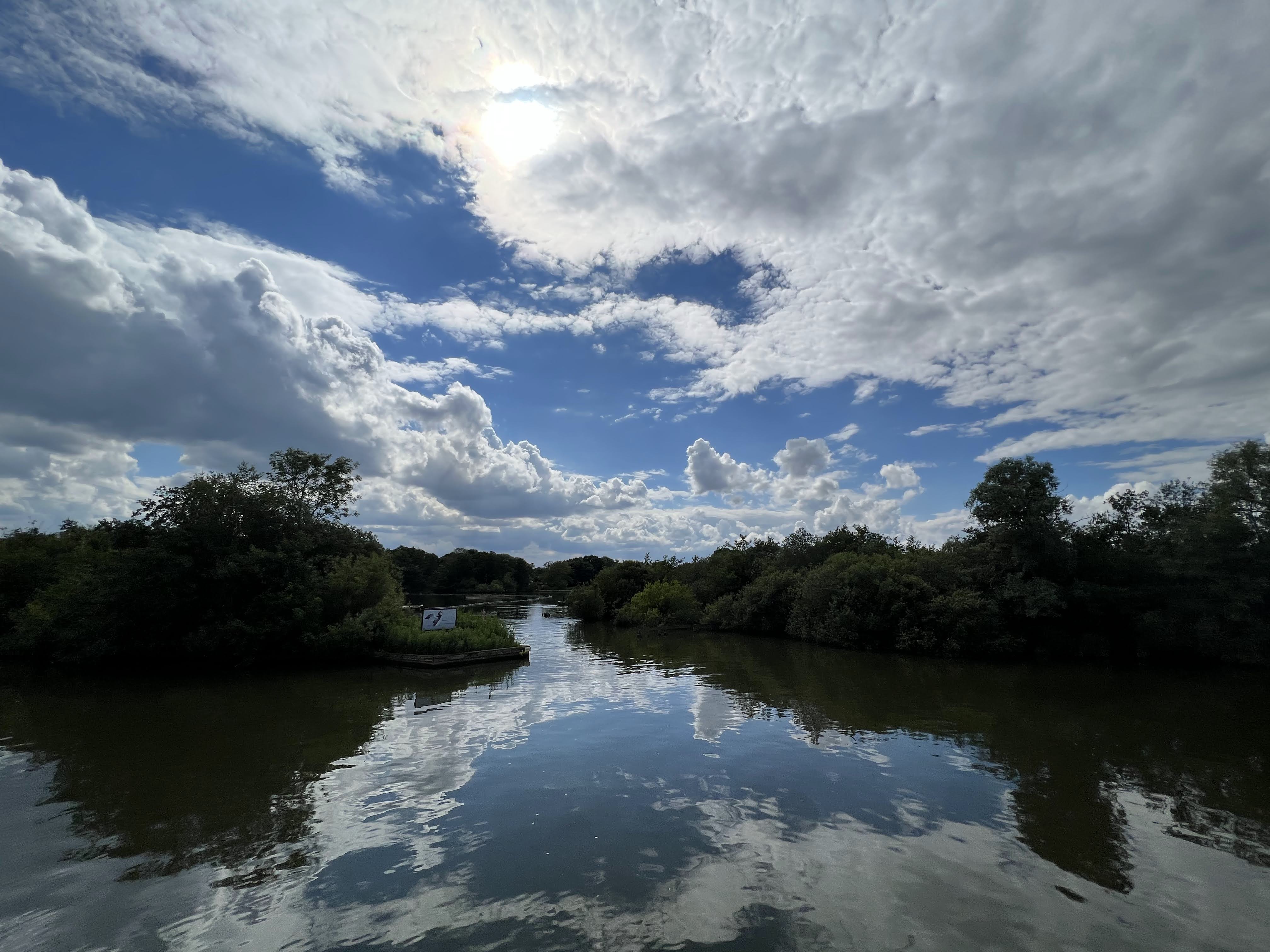 After this absolutely immersive art experience, we headed to the Norfolk Broads for a boat ride into the byways of a complex river and lake system. Just take a look at that sky. I couldn’t get over it and I’d been seeing beautiful skies throughout Wales and Shetland.