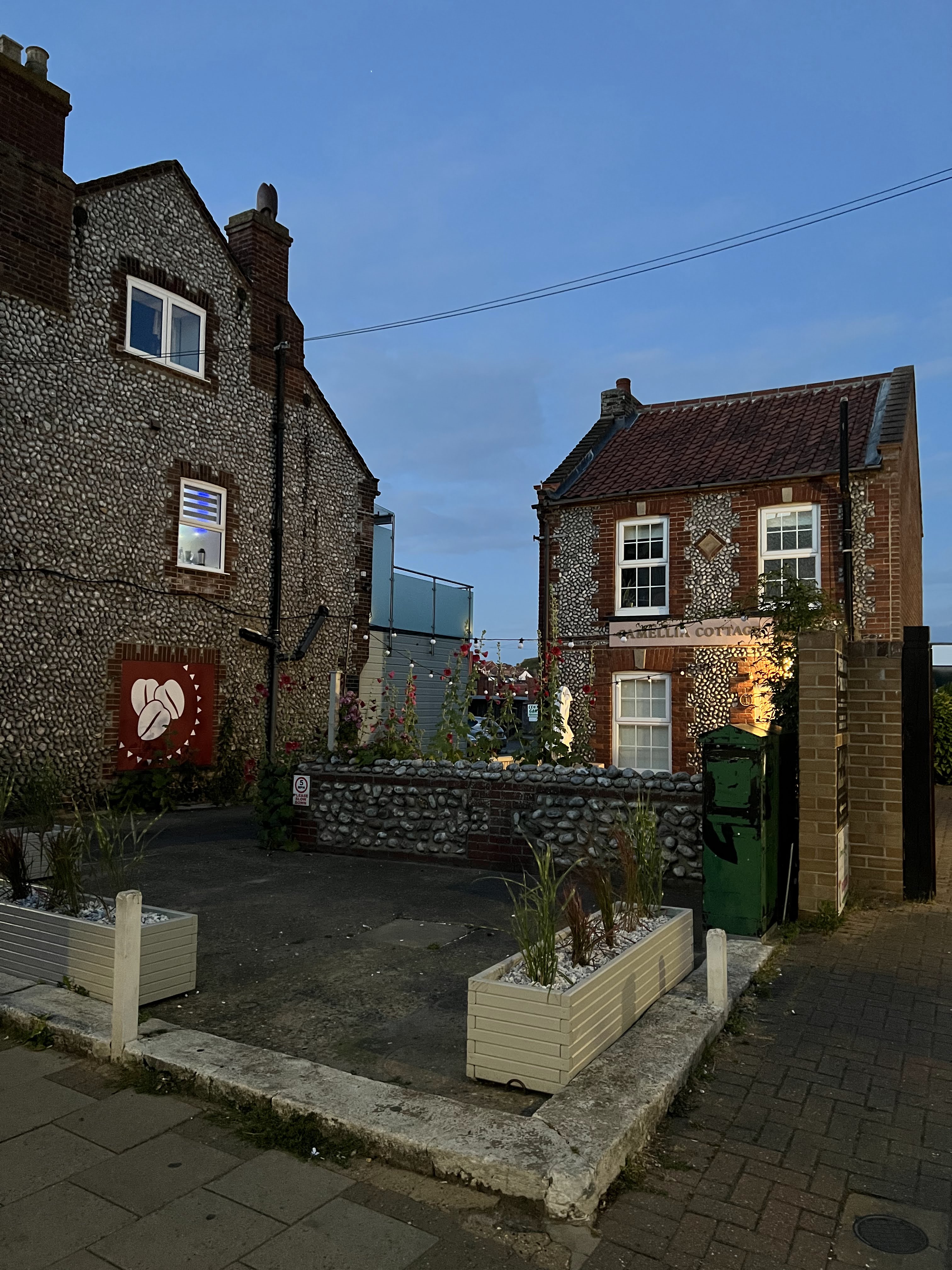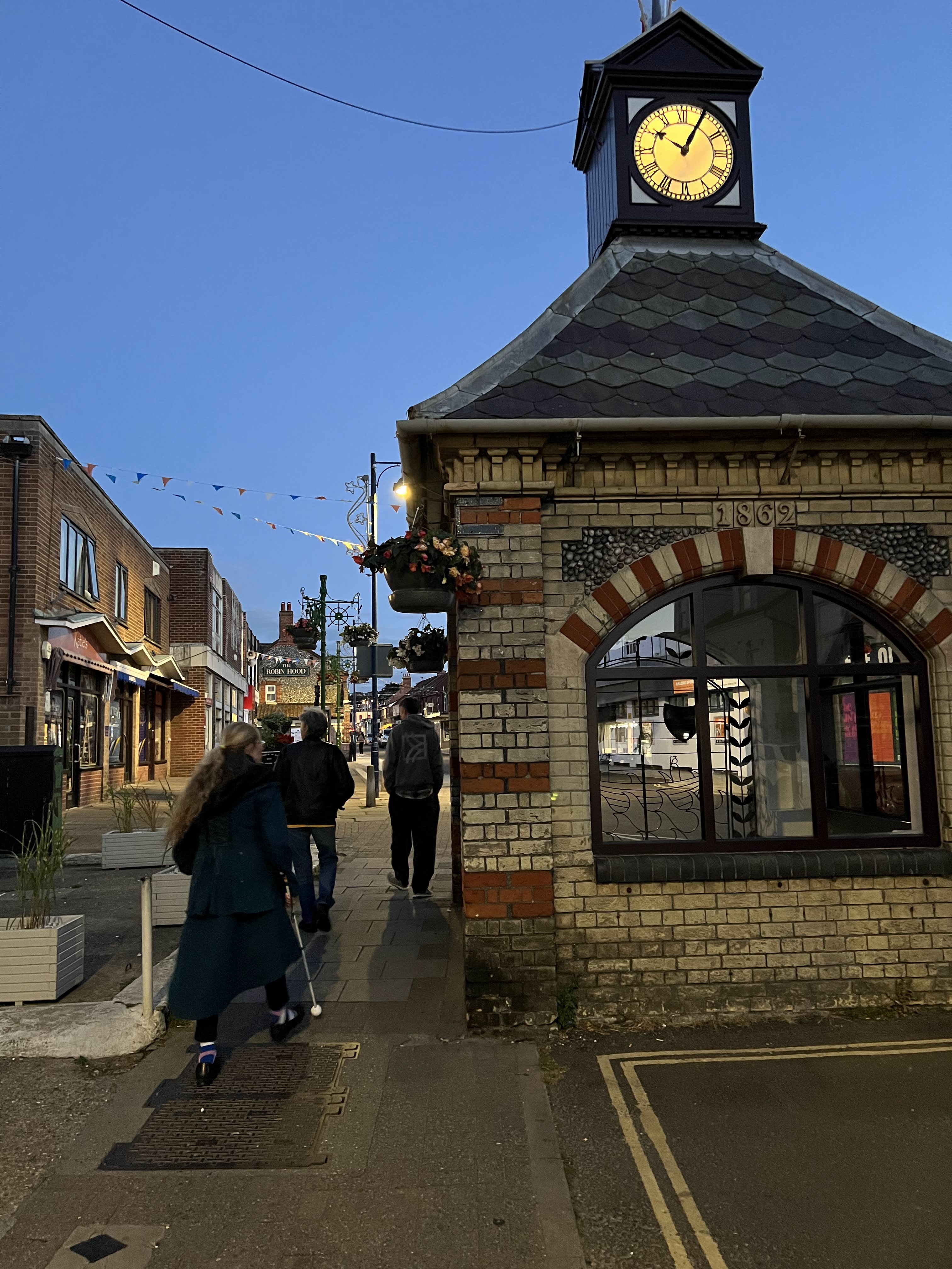 Rainbow gate!! The stone on her house is flint, the material used for so much in Norfolk. Christine’s house is an example of knapped flint, so the stones are flat rather than round. You can really see the complexity of the interior of the rocks. Chaotic playfulness up the street from Christine’s.Lovely. On our way to the boardwalk and sunset.Turbines on the horizon.The little changing houses all along the boardwalk.Einstein on the Beach. He stayed in Cromer, just up the coast.Josianne, Christine. Me n my honey. Strolling back through this super quaint and precious town. I fell in love, hard.Empires of Light.Toy shop featuring Thunderbirds!!!