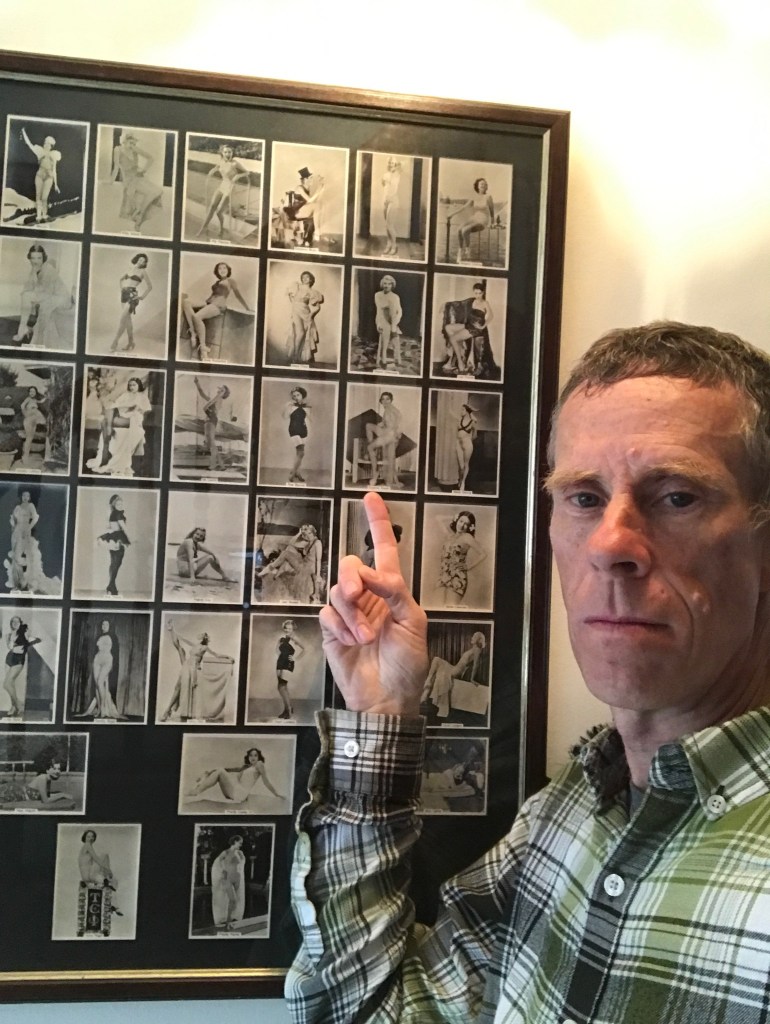 Walking into Christine’s entry hall, David noticed this lovely assemblage of old cigarette cards in a frame. And LO! Who should he spot but his great-aunt Suzanne Kaaren! We were gobsmacked. Christine had gotten this treasure in the early 1990’s at an antiques mart in Sheringham. Coincidence, serendipity, what you will — pretty extraordinary.