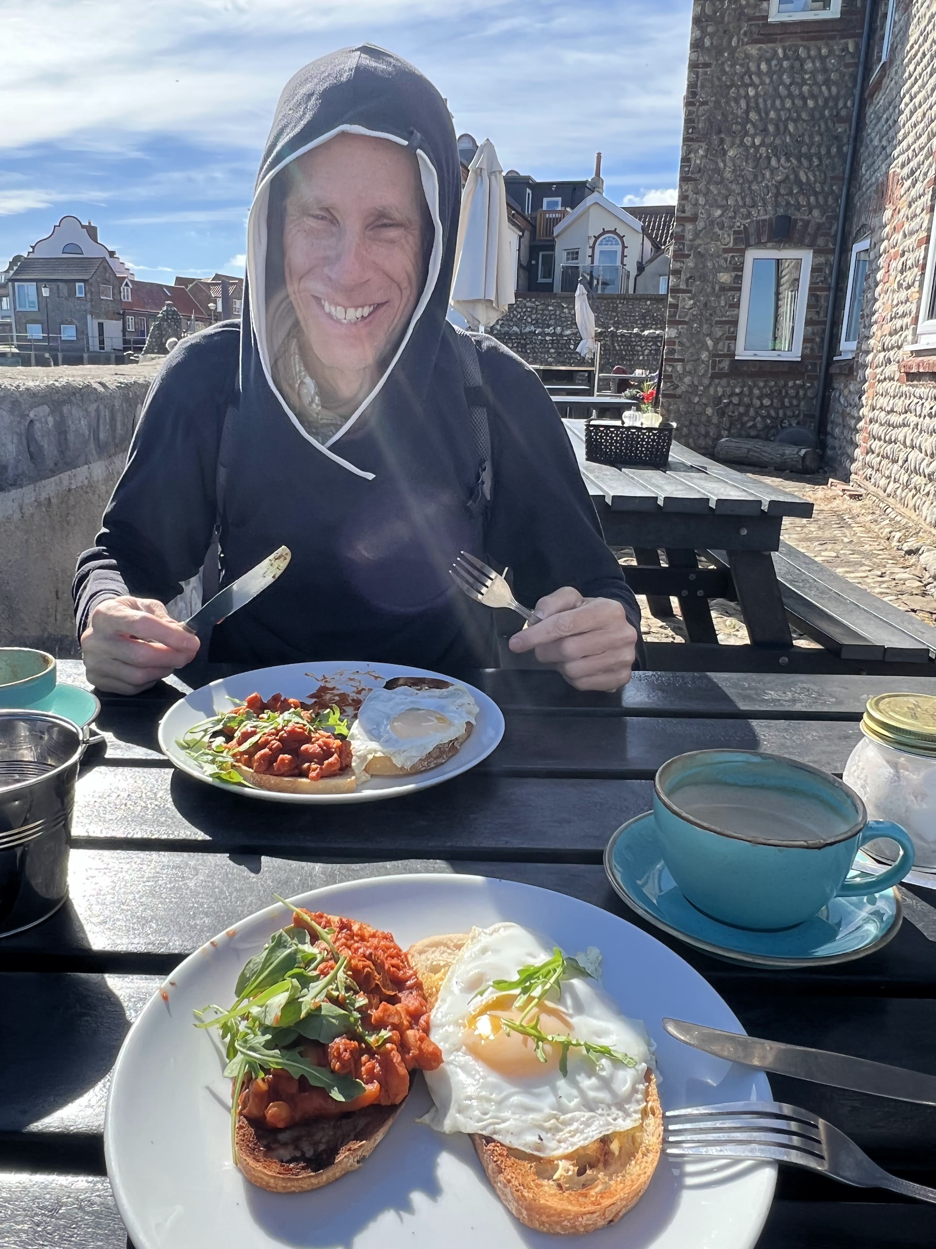 A beautiful morning in Sheringham! We got up early for a walk along the boardwalk, and breakfast at Whelk Coppers.