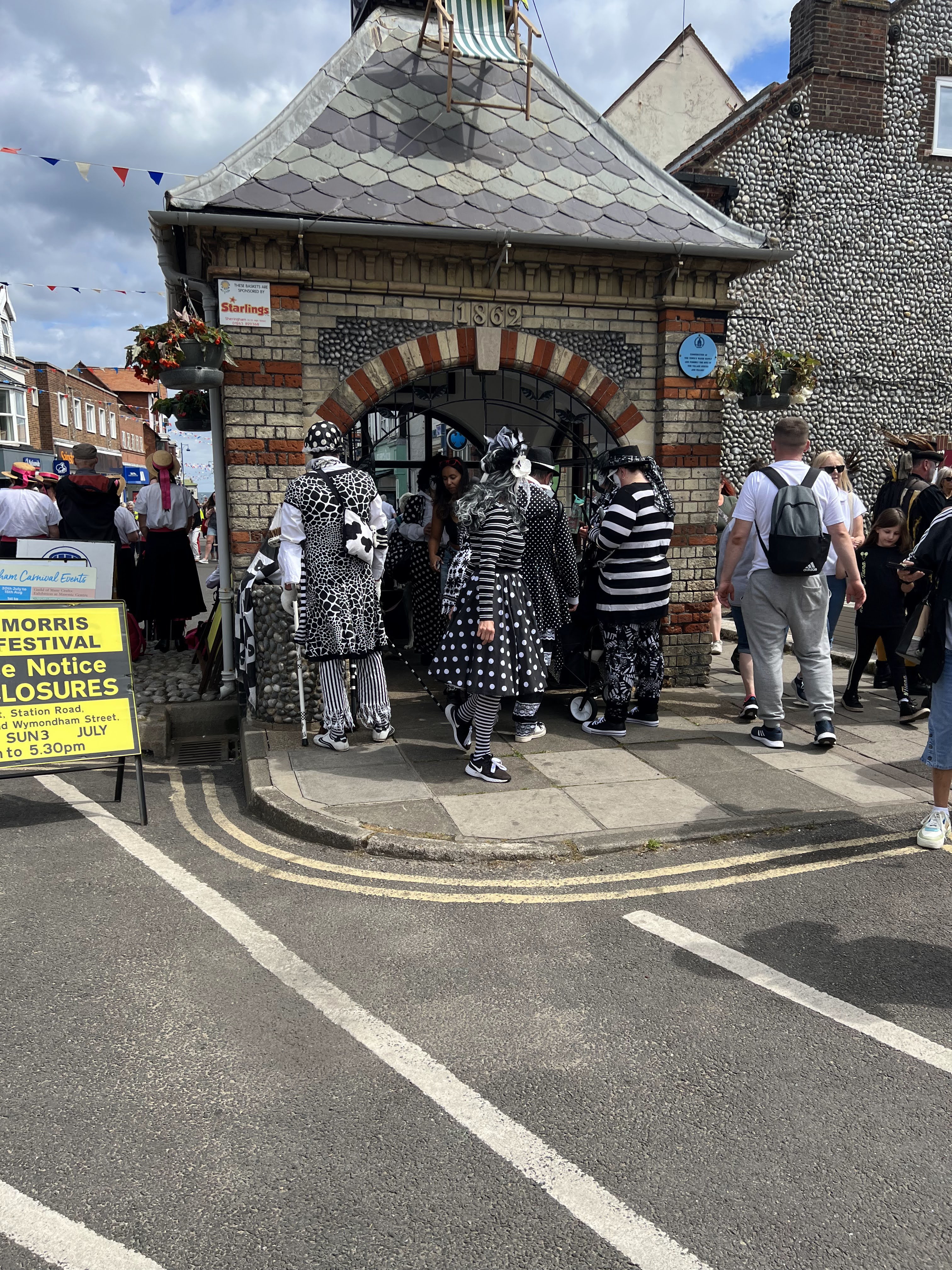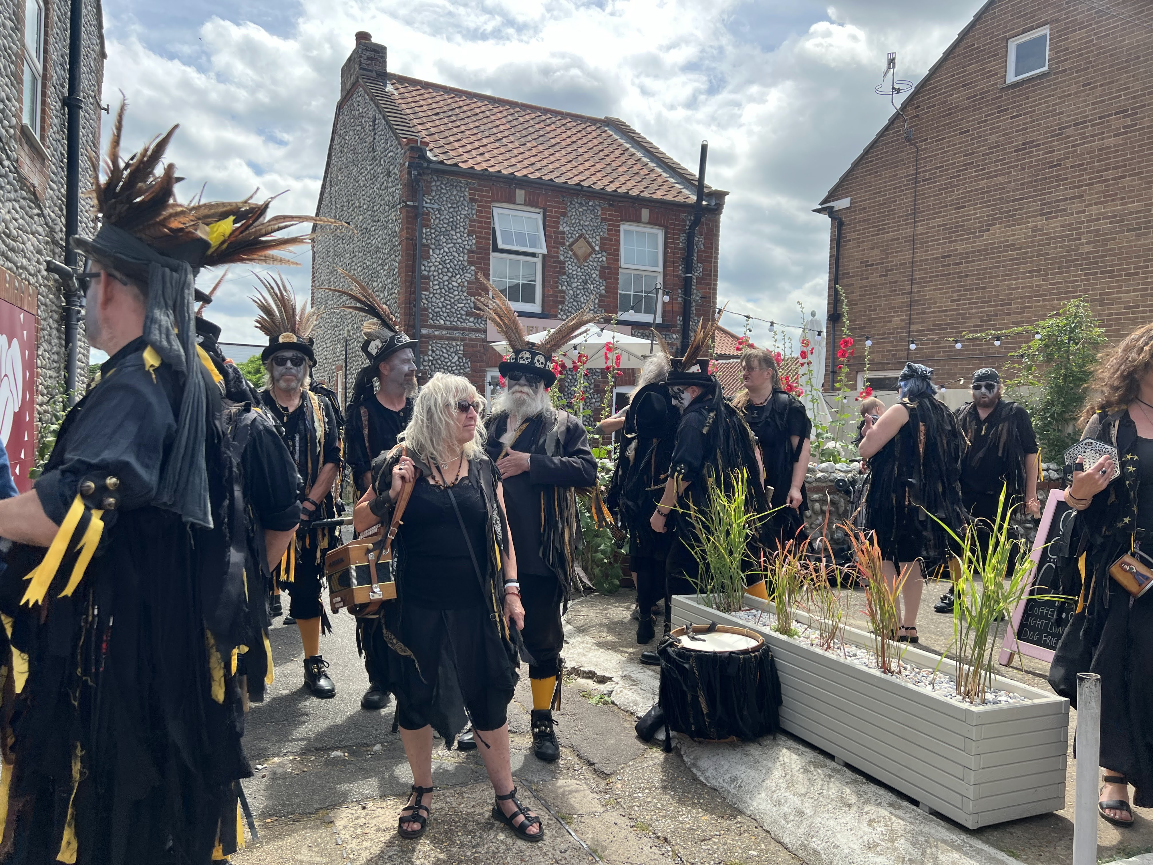 Fabulous Sheringham Day! The Morris Dancing festival was such a revelation — I’d seen lots of Morris in my day, but never the sheer creativity of the costumery as at this festival! I really had no idea, most of the troupes I’ve seen are pretty traditional. The music and basic dancing is the same, though, they sure don’t mess with that!