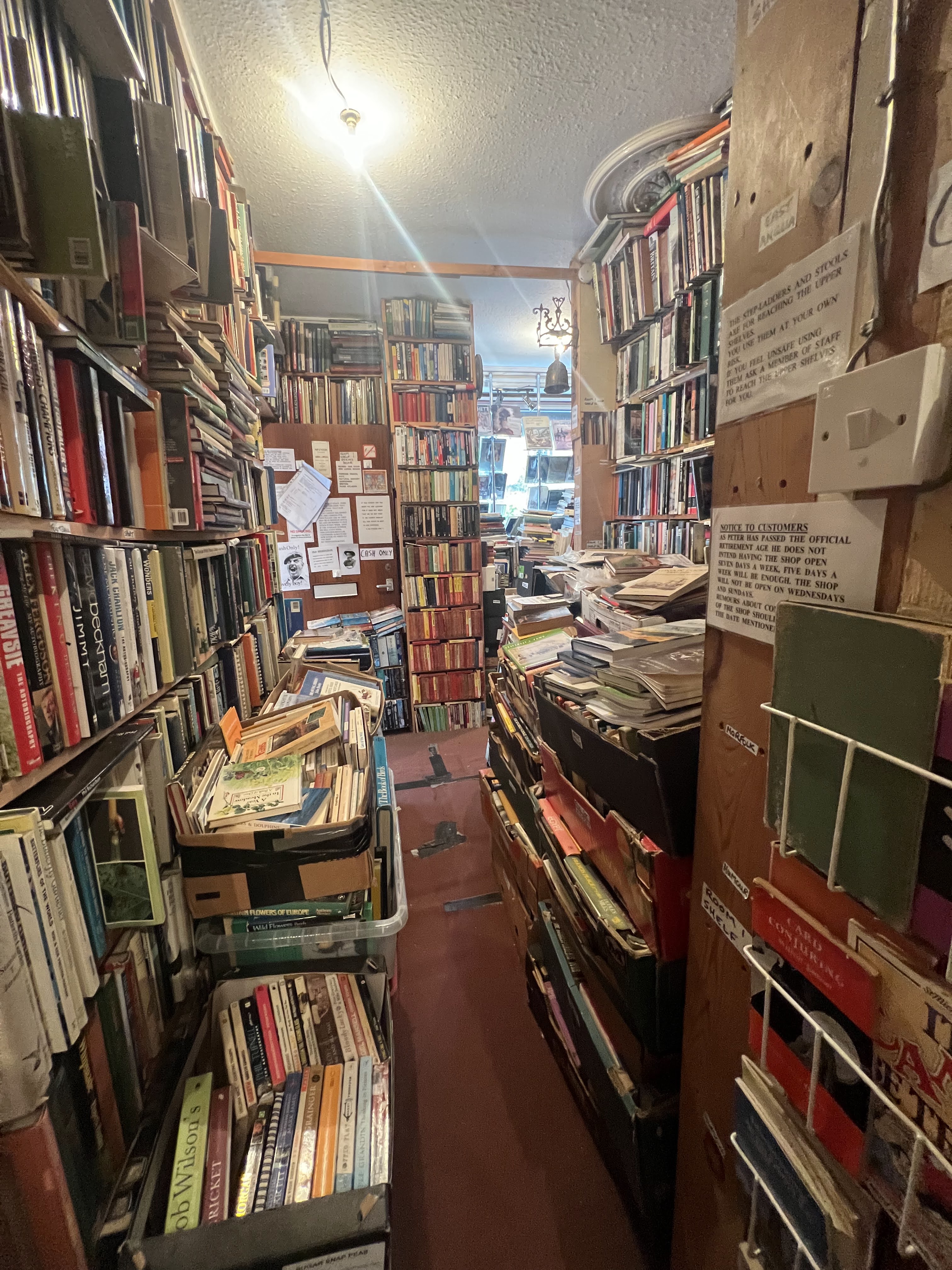 The real treat of the day was a visit to Peter’s Book Shop! Christine was pretty sure that a goodly share of the book in the store came from her house over the years. (I’m sorry I didn’t get a proper photo of Christine’s bookshelves that she built herself, and which are stuffed with books, as are bookshelves throughout the house. A prodigious reader and collector is Christine!) But this shop was a treasure trove, and I was lucky to traveling because I would have scored a major haul here.