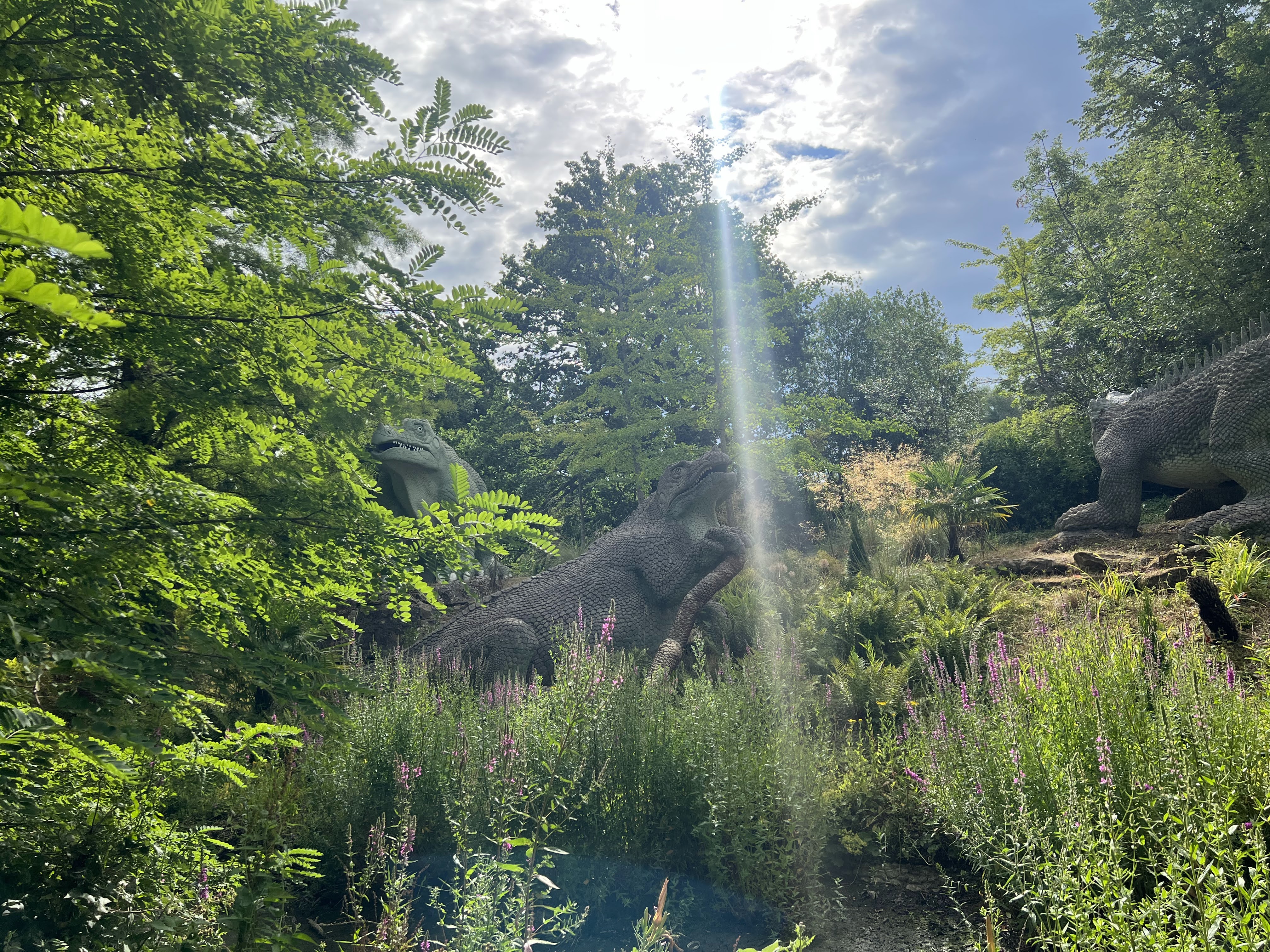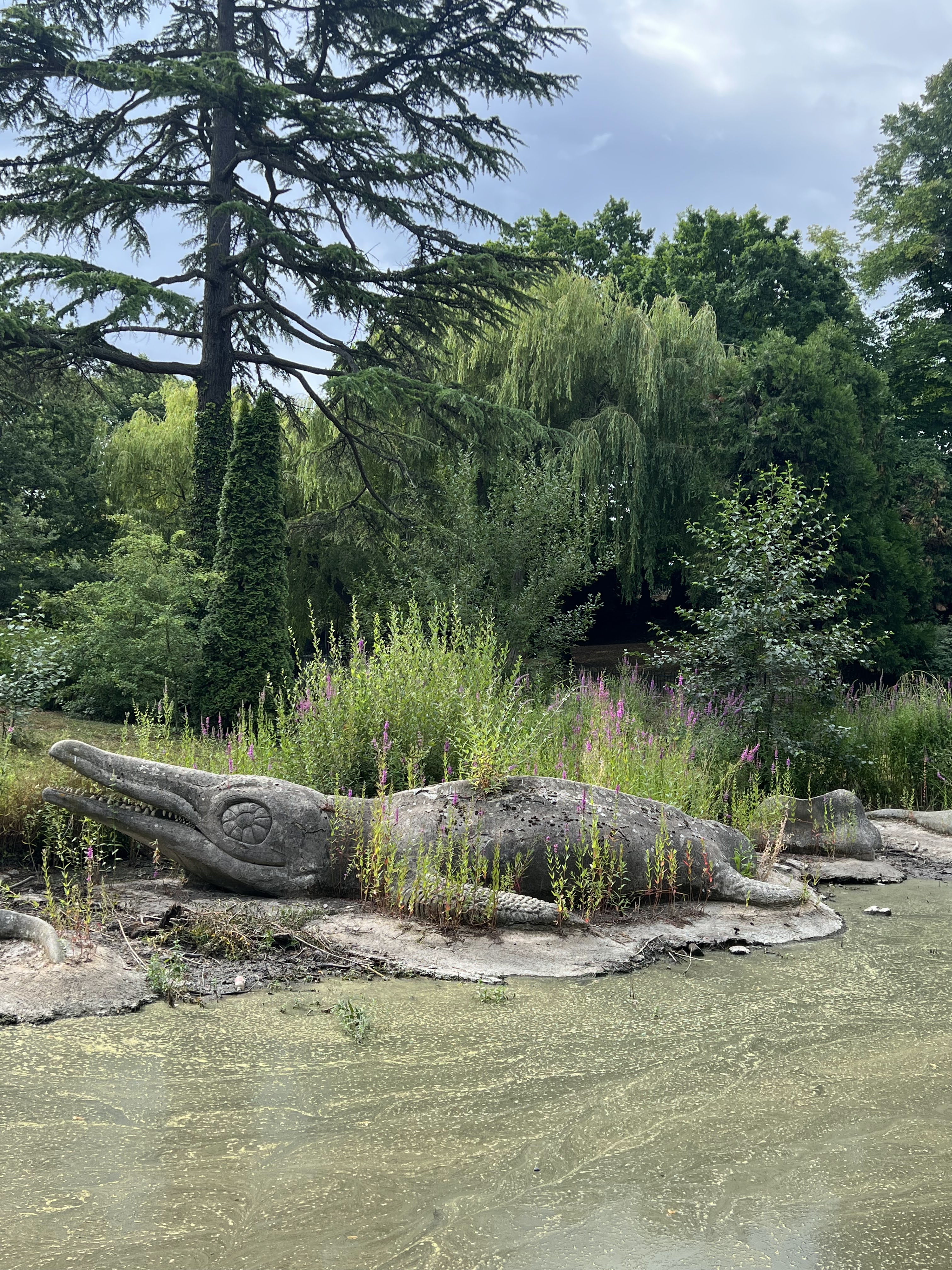 This day started with taking the Overground to its terminus at Crystal Palace, and wandering over to the park. All in all, I felt the park had seen better days, and indeed: its history as a “Victorian pleasure ground” is long past. After a rocky start and much walking along city sidewalks, we finally got into the park and utterly enjoyed it! The dinosaurs were a hoot, most of them created in the late 19th century, and considered very accurate with the scientific information they had at the time.