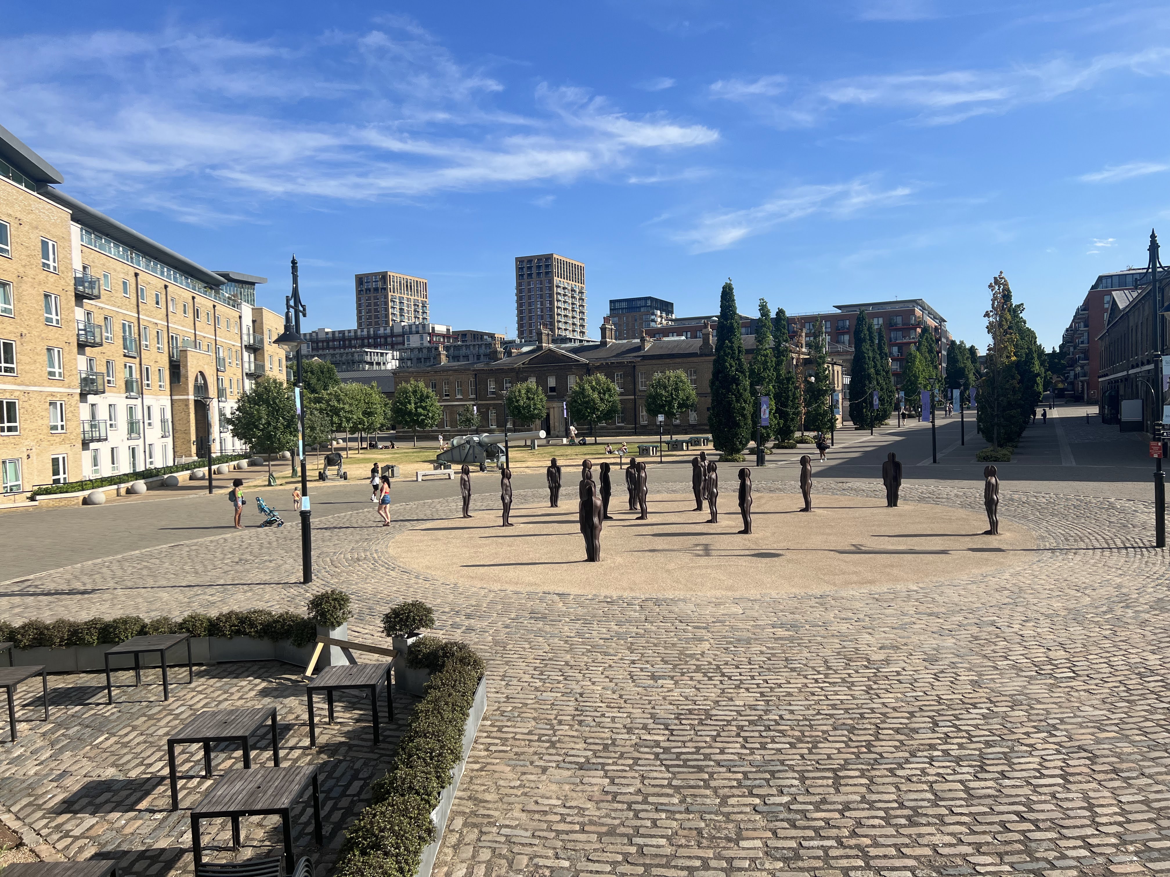 We de-ferried at the Woolwich Arsenal stop, and the first thing we saw is this sculptural installation, “Assembly” by Peter Burke.