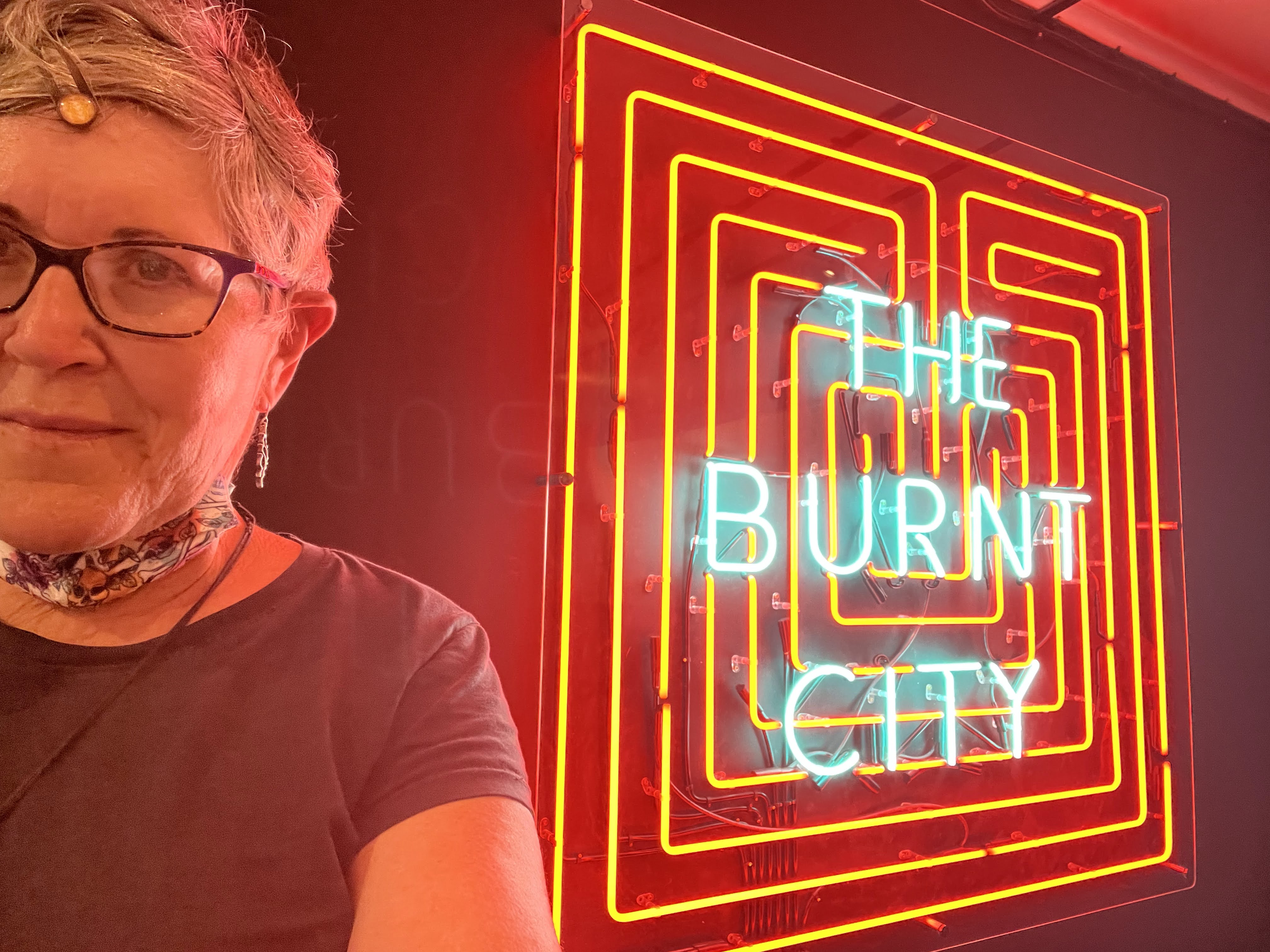 My dear friend Christine brought to our attention an immersive performance, The Burnt City, taking place in an industrial neighborhood during our stay. It turns out we had experienced a site-specific performance by Punchdrunk in New York City, Sleep No More, at “The McKittrick Hotel” in Chelsea several years ago. The tickets were a little spendy, so I sort of forgot about it, but my delightful partner (knowing how much I really did want to go) got tickets for us on our penultimate night in London. He also surprised me with our means of transport to the venue’s neighborhood: A water taxi!!
